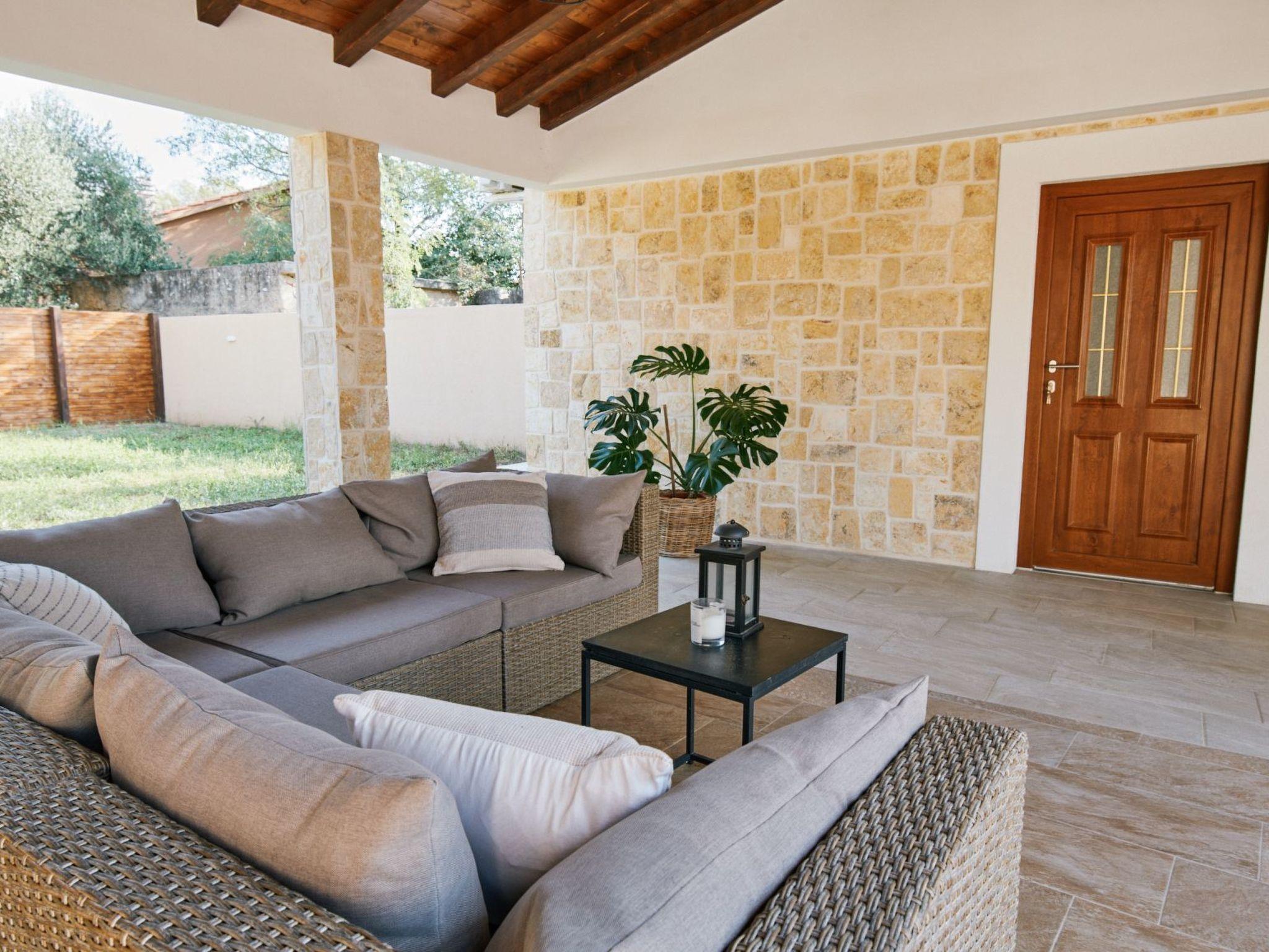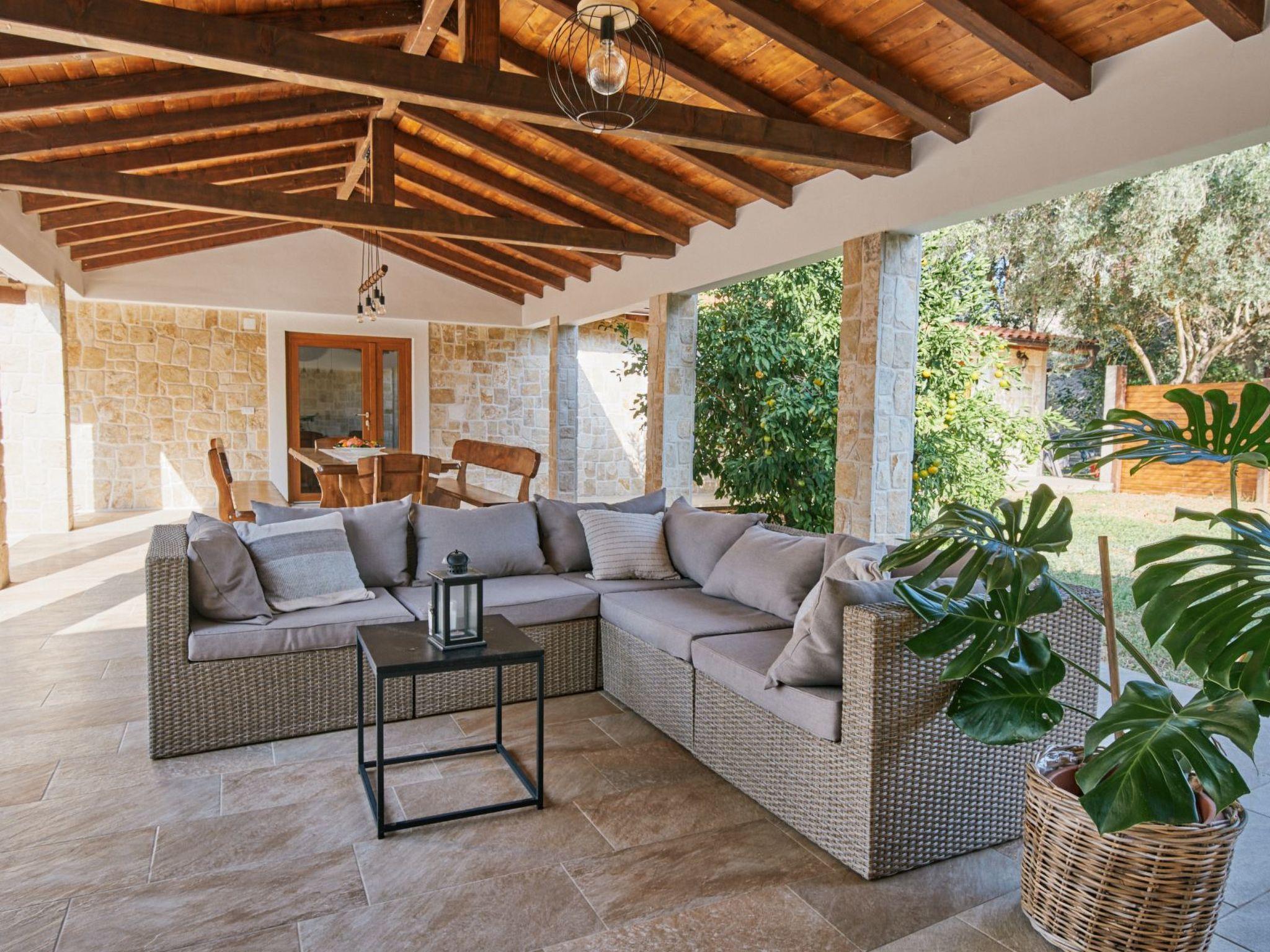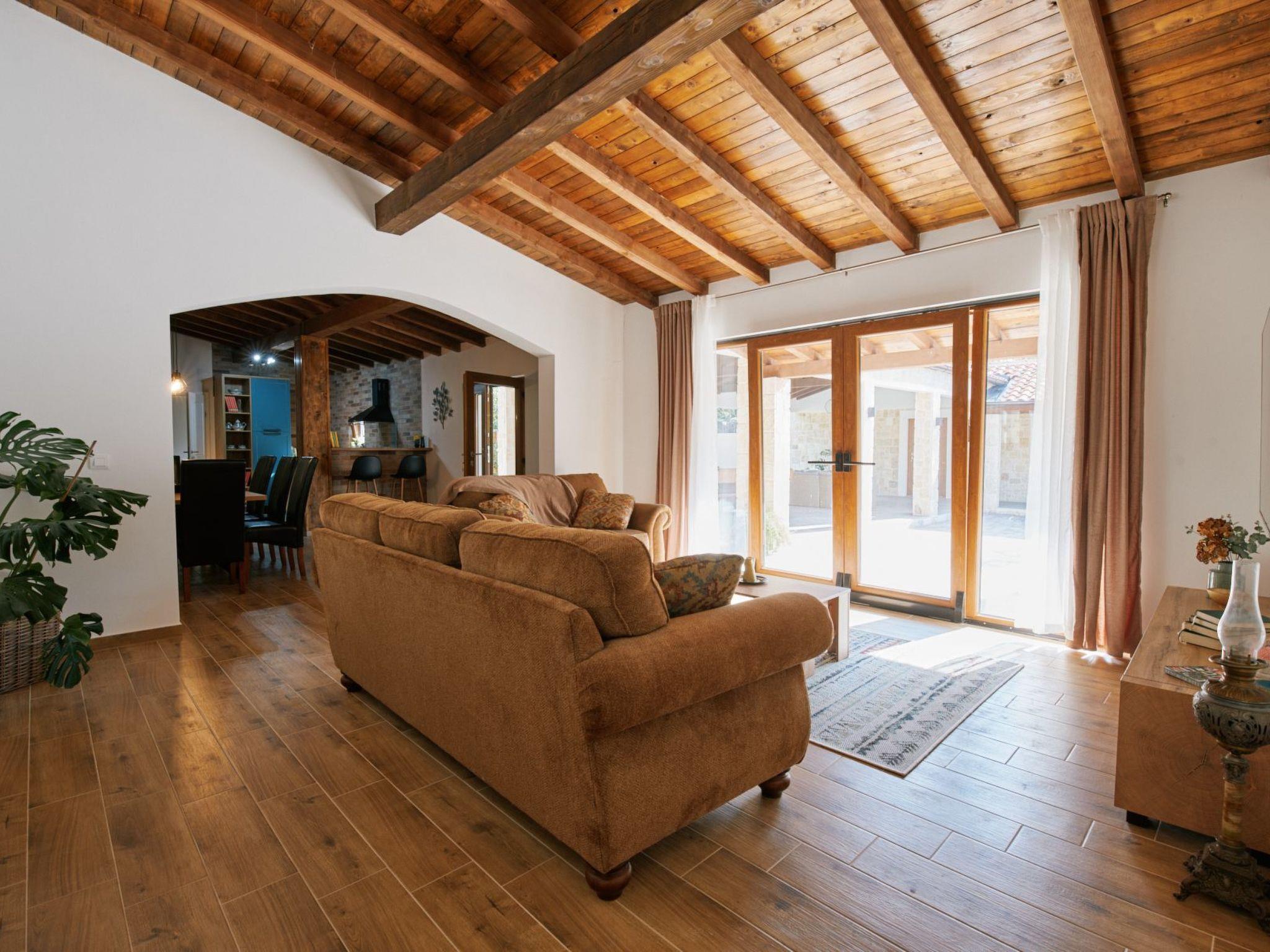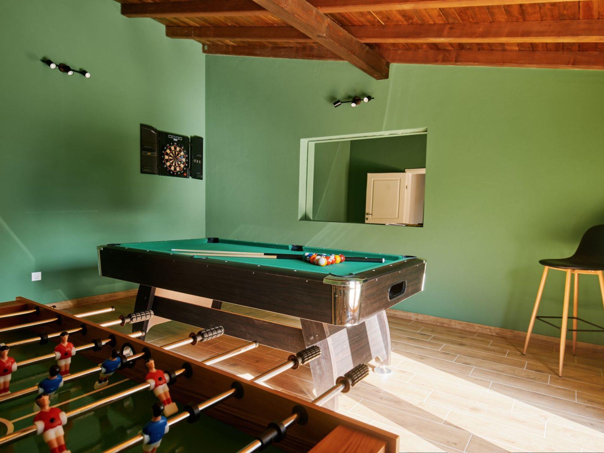 New Villa is located in the middle of a spacious stone courtyard. This rustically decorated villa with 300m2 of living space offers complete privacy and comfort in an extremely peaceful and natural environment. The house has four bedrooms and can accommodate 8+2 people. Each bedroom has satellite TV, air conditioning, Wi-Fi. The living room and the kitchen are very light due to the large windows that open onto the terrace with outdoor furniture. The terrace offers a view of the fully fenced garden of 1700 m2, which contains a heated outdoor pool with salt water, a jacuzzi, an outdoor bar, a gazebo with a seating area and a grill. The entire unit is located on the ground floor.