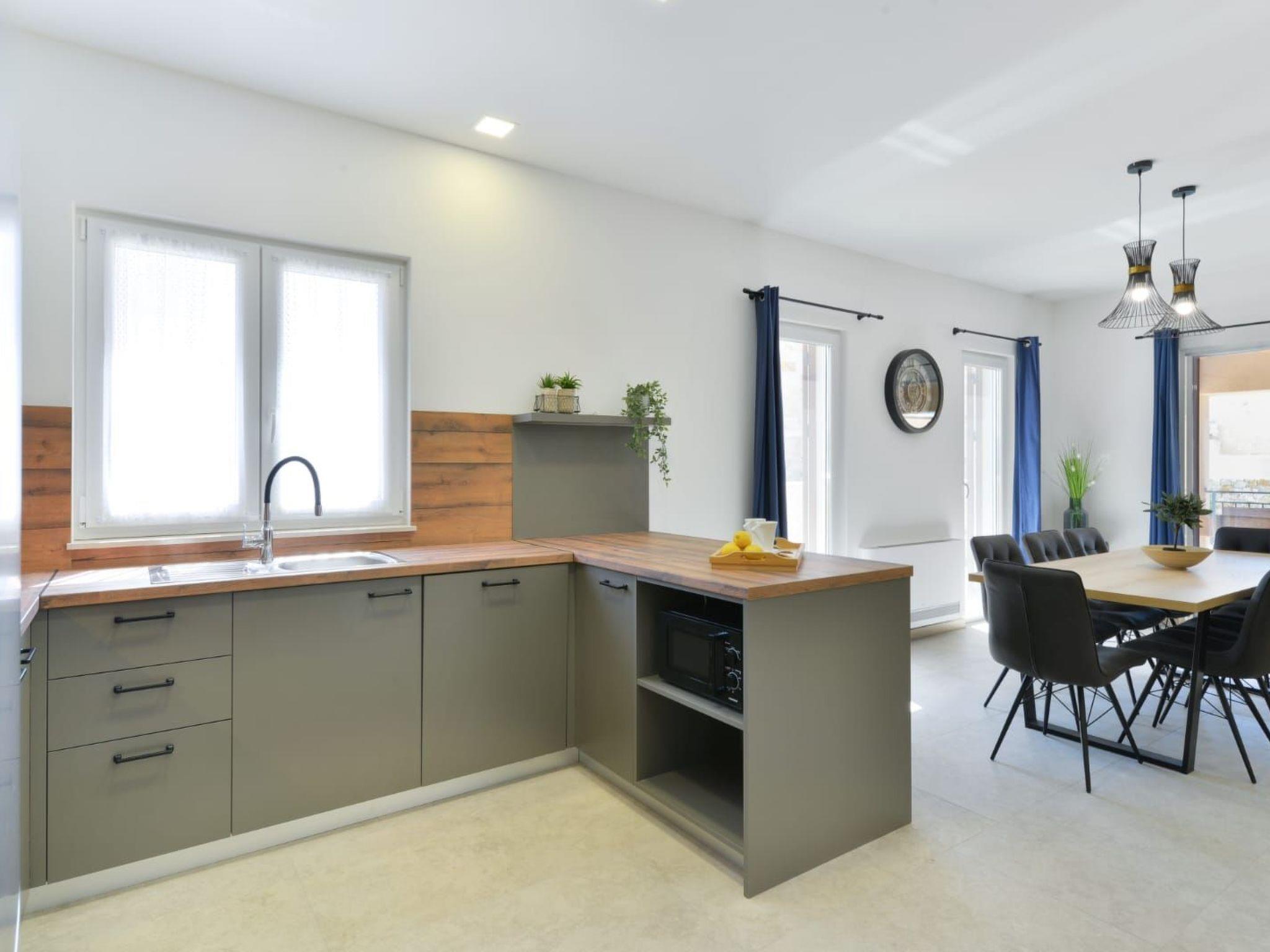 Villa is a modernly equipped house that provides an extraordinary experience for families and friends. With three bedrooms and three modern bathrooms, it can accommodate up to eight people. On the ground floor, there is a fully equipped kitchen and a spacious living room with a sofa for stretching. Guests will be delighted by the private sauna on the ground floor and the covered terrace from which they can jump into the outdoor pool with a waterfall. They have at their disposal comfortable deckchairs together with a large umbrella, and there is a large table on the terrace. For the perfect end of the day, guests can hang out with a barbecue on the garden fireplace. During the colder months, guests can enjoy jacuzzi and underfloor heating. On the first floor, there are bedrooms, two bathrooms, and a large balcony where guests can enjoy their morning coffee with a view of the blue sky. Parents with small children can enjoy their stay in the villa undisturbed - inside the safe in the fenced yard there is a children's playground and a cot and a high chair are available for them feeding, as well as a small table for children on the terrace. The yard is covered with grass and pets are welcome Welcome. Guests are provided with free parking in front of the house, as well as a good Wi-Fi network.