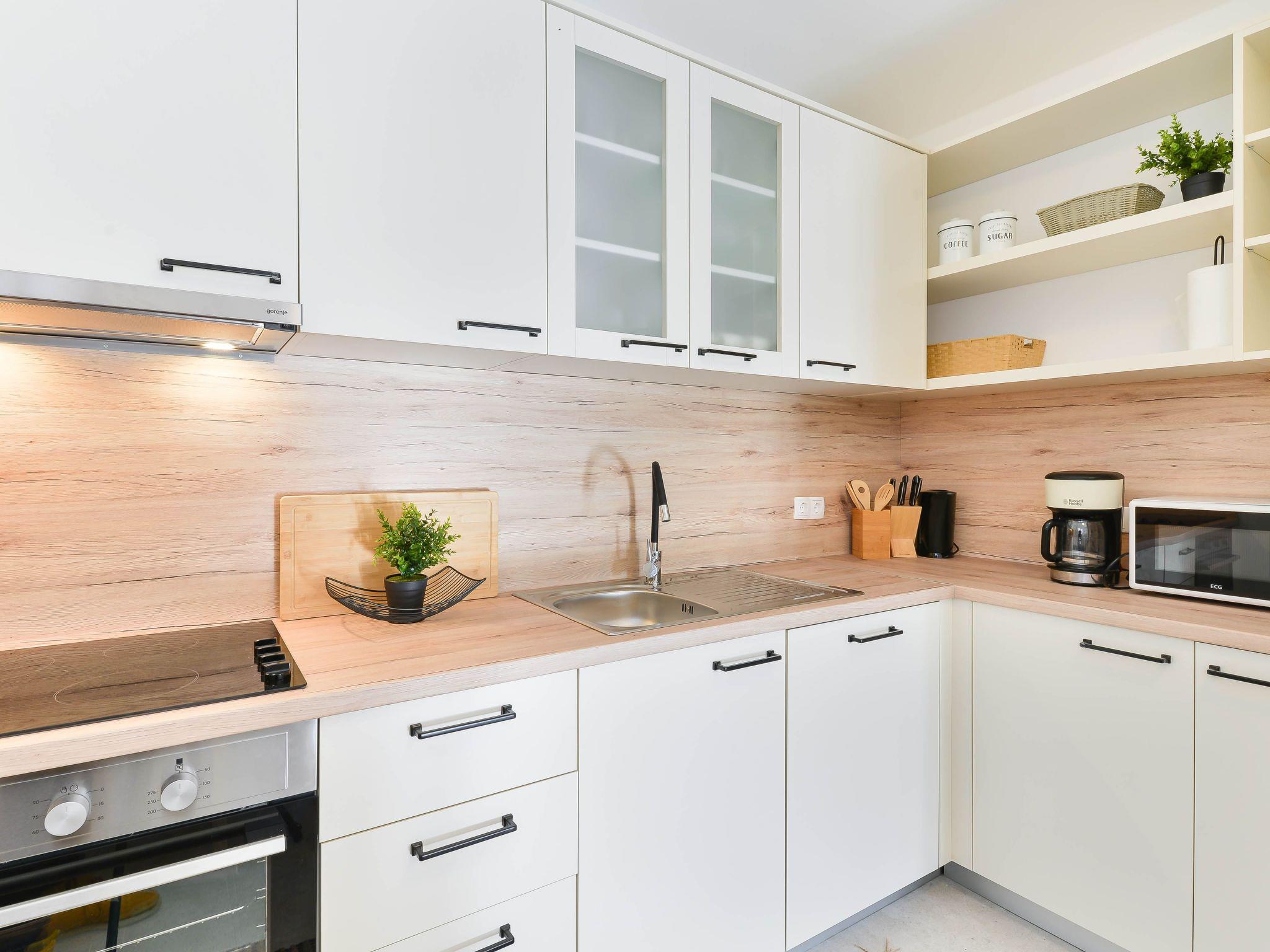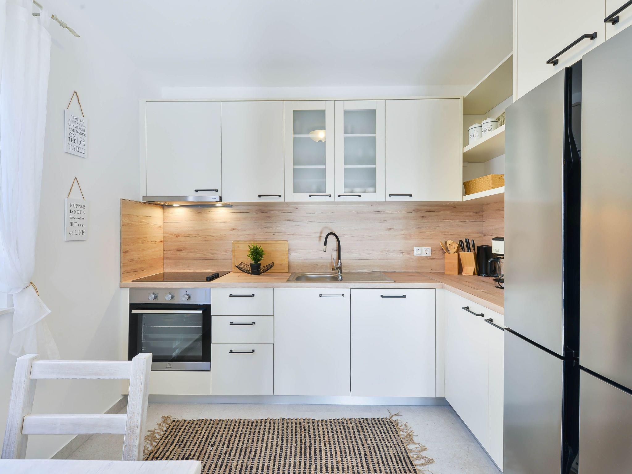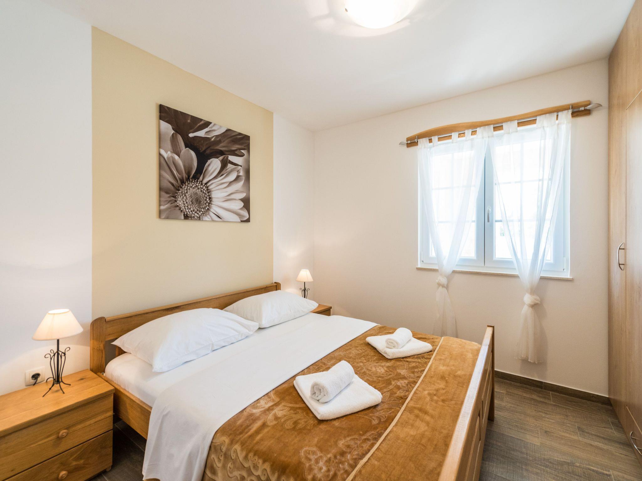 With three bedrooms on the first floor, Villa Karin can host up to six people, and for practical comfort, they have two bathrooms and a separate toilet at their disposal. The ground floor also contains a fully equipped kitchen, as well as a wonderful terrace where guests can enjoy privacy and natural surroundings. In the outdoor heated pool, they can relax under a small waterfall, while comfortable deckchairs await them next to the pool. There is an equipped garden grill next to the pool, where guests can cook with friends or socialize at a large table in the shade. For the perfect end of the day, guests can relax on the large balcony with a beautiful view and the smell of aromatic herbs. Attention has been paid to every detail, so a cot and a high chair are available for families upon request. The villa offers a good Wi-Fi network and secure free parking.