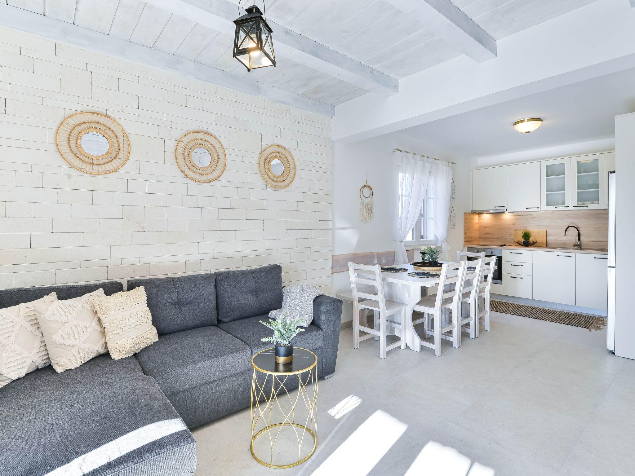 Villa Karin is located in a quiet location in the fishing village of Privlaci, not far from the larger town of Zadar. This beautiful house offers its guests an unforgettable stay in the immediate vicinity of the small town of Nin, where they can get everything they need. The house has complete privacy and peace thanks to the greenery that surrounds it and a fenced grass yard with a private heated pool filled with sea water.