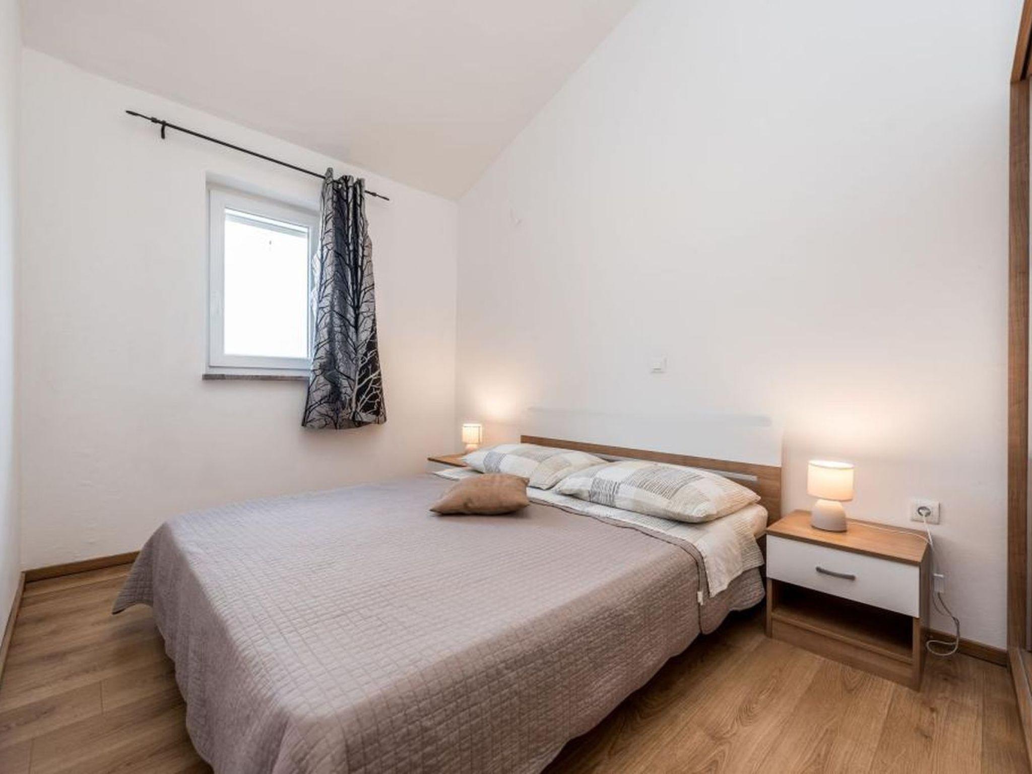 The apartment consists of two bedrooms, a bathroom, a living room, a kitchen, and a balcony with an enchanting view of the sea. It is located only 100 meters from the sea and has a beautiful sandy beach. The beach is suitable for children and adults due to its shallow entrance and soft sand, making it perfect for a family vacation. Guests also have a shared garden with a fireplace, perfect for preparing meals outdoors and enjoying the Dalmatian environment.