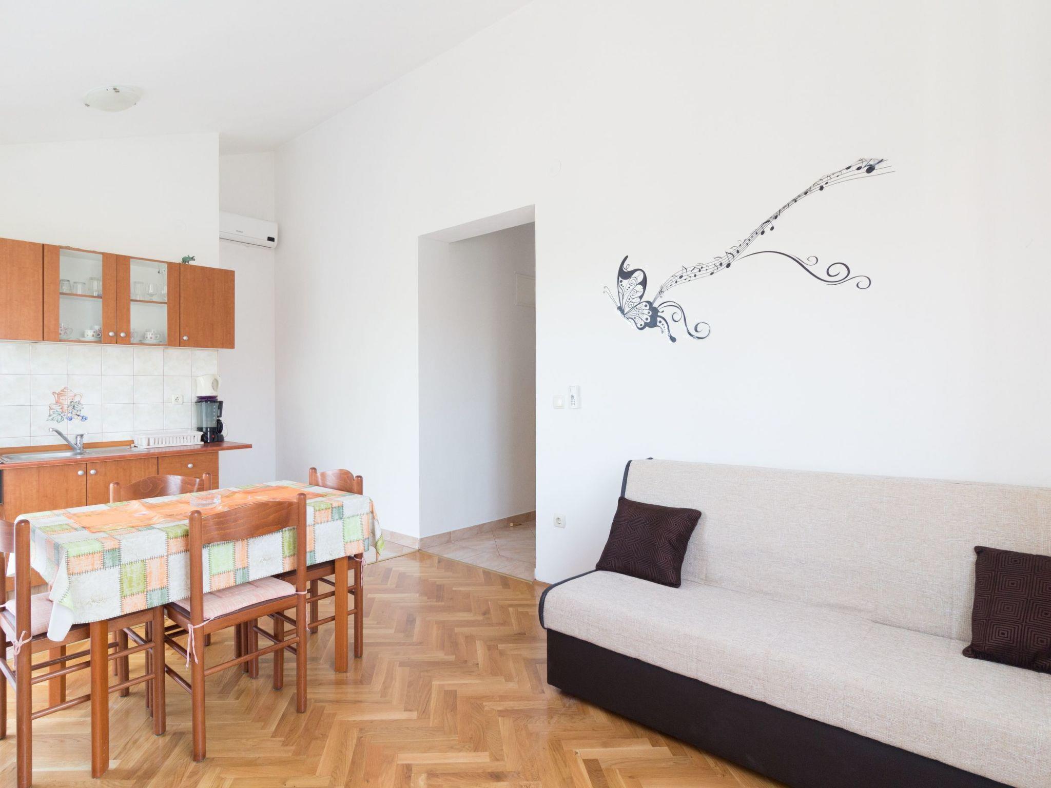 Lovely 50 square meter apartment has one bedroom with double bed, one bathroom, equipped kitchen, living room with sofa beds and balcony. Apartment can comfortably accommodate four persons.
