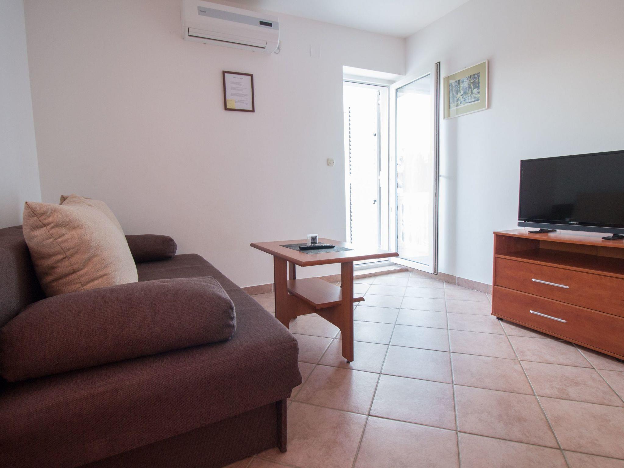 Inside, Apartment Sunset 6 is equipped to ensure a comfortable and hassle-free stay. The apartment features a well-appointed kitchen and a living room that doubles as an extra sleeping area with a sofa bed for two. The bedroom, furnished with a double bed, provides a serene space to unwind after a day of exploration. The presence of air conditioning in parts of the apartment ensures your comfort during warmer days. For added convenience, the apartment includes a filter coffee machine and an electric kettle, perfect for starting your mornings with a freshly brewed cup of coffee or tea.