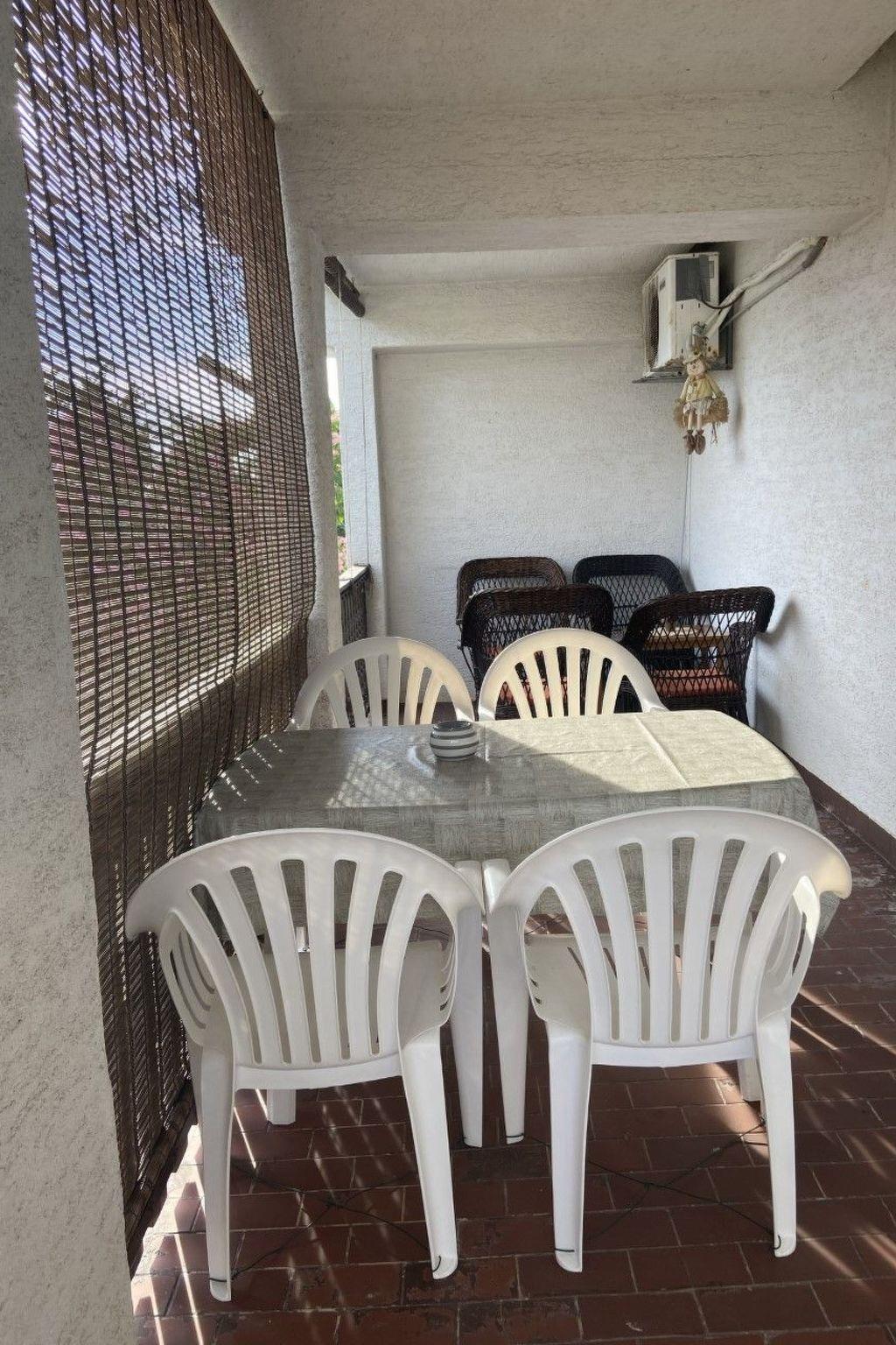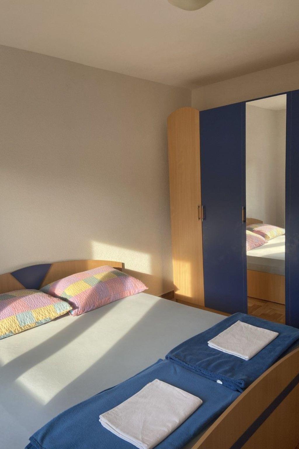 Inside, the apartment boasts a welcoming and well-appointed interior. It features two comfortable bedrooms and a bathroom equipped with a shower, catering comfortably to the needs of a couple with a child or friends traveling together. The essence of convenience and ease permeates the space, with amenities such as a coffee machine and electric kettle enhancing your stay. A TV and flat wireless internet ensure entertainment and connectivity are at your fingertips, while partial air conditioning provides a refuge from the warm Dalmatian sun.