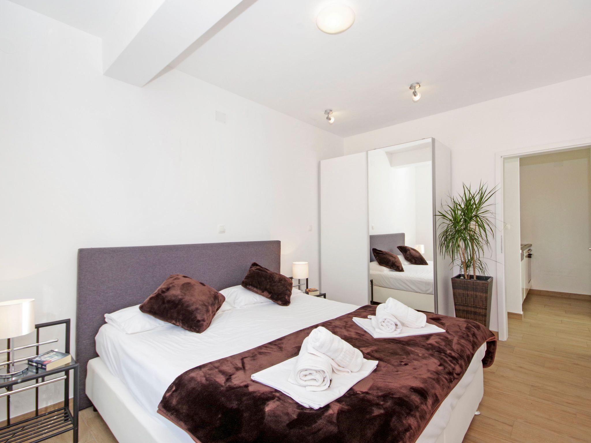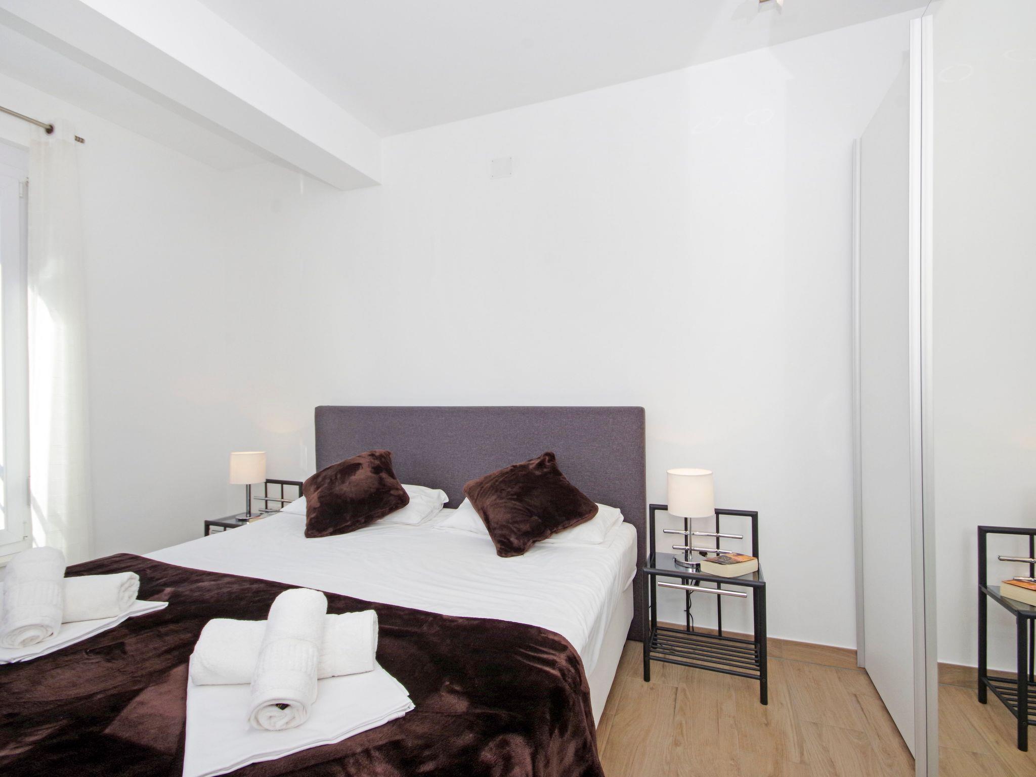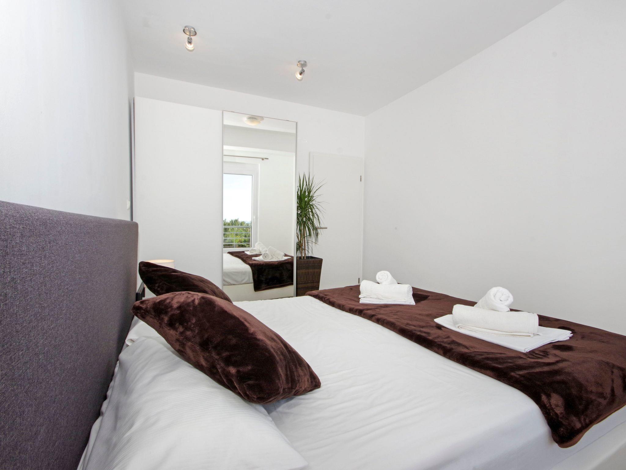 The apartment has a balcony with a sea view, along with a heated outdoor pool and a furnished sunny terrace. There is an additional shared terrace with a fireplace grill. You can use the parking spaces by the accommodation free of charge.