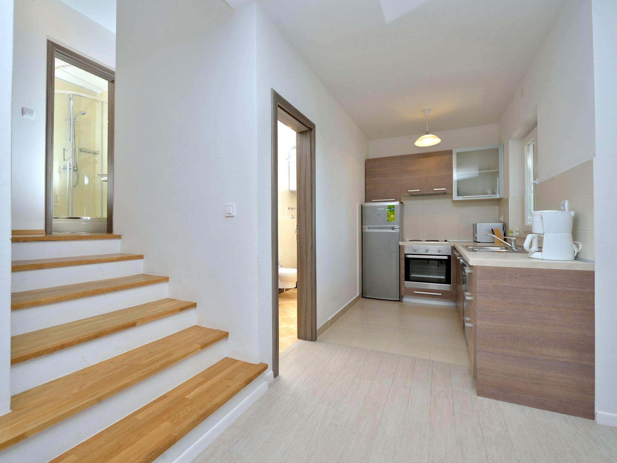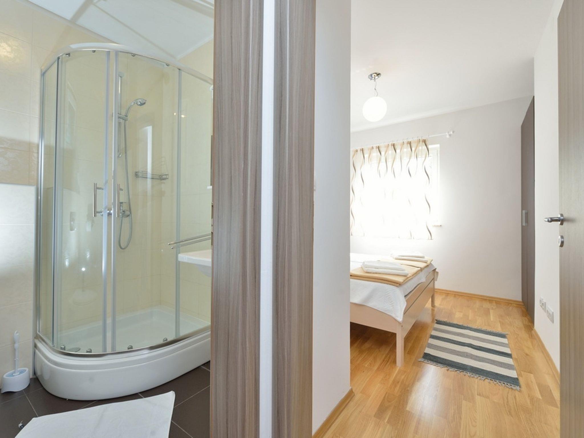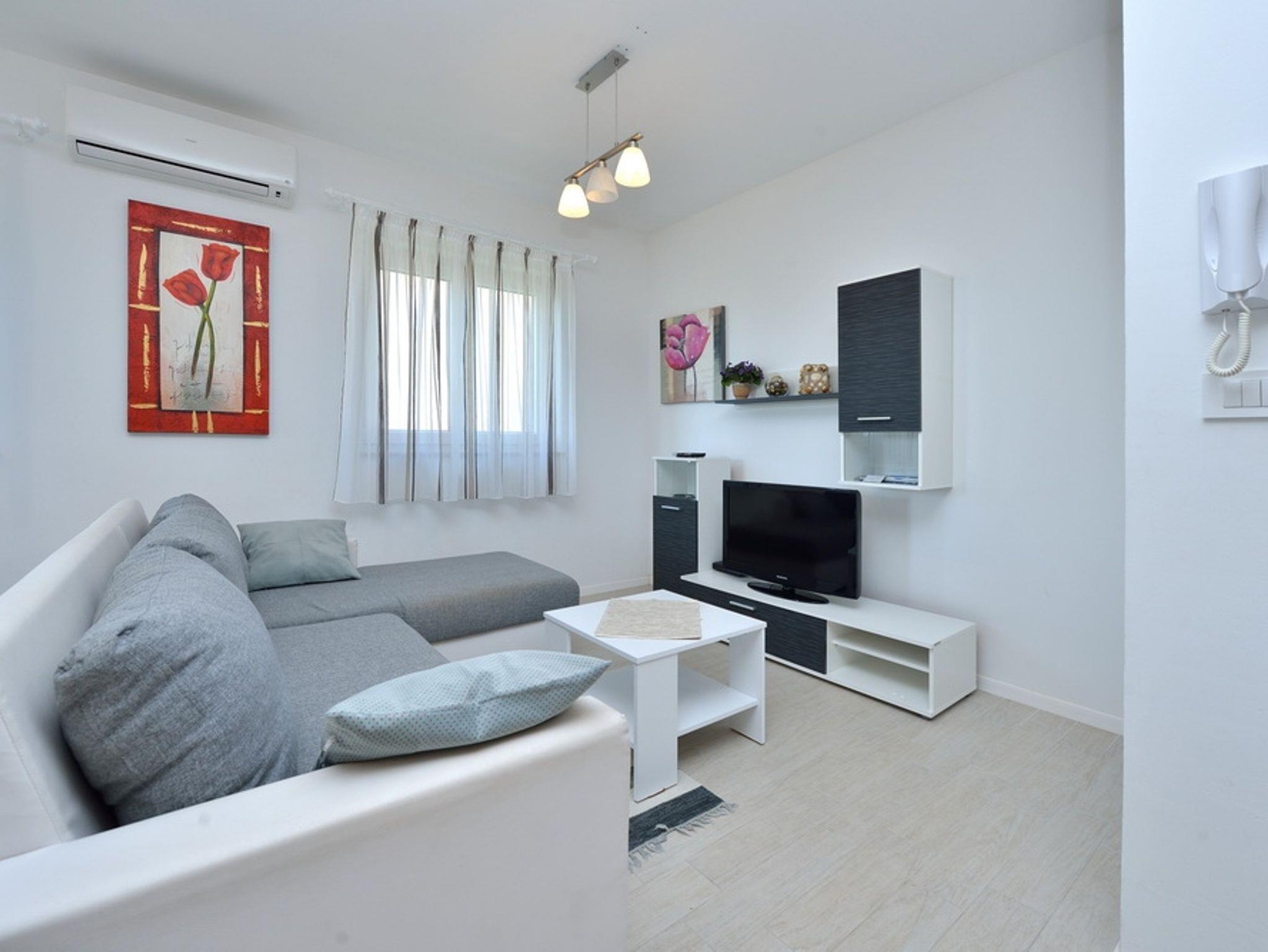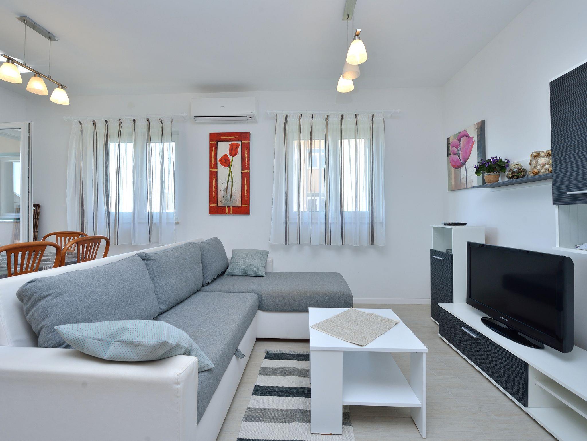Ferienwohnung bietet Platz für 5 Gäste. Die Betten sind in Schlafzimmern, die es 2 gibt, und in Wohnzimmer, innerhalb einer Gesamtfläche von 61m2, angeordnet. Die Gäste haben eine eigene Terrasse zur Verfügung, auf der sie in warmen Sommernächten genießen können. Für vollen Genuss und Entspannung gibt es einen privaten Grill für Gäste dieser Unterkunft. In der Unterkunftseinheit besteht die Möglichkeit des Mitbringens von Haustieren gegen Aufpreis. IM PREIS INBEGRIFFEN: Kurtaxe, Endreinigung, Klimatisierung, Parkplatz, Internet, Kinderbett, Bügeleisen, Föhn. VERBINDLICHE ZUSÄTZLICHE KOSTEN: Aufzahlung für Kurzaufenthalte (prozentualer Zuschlag pro Nächtigungsanzahl: 30% - 1, 20% - 2, 10% - 3). UNVERBINDLICHE ZUSÄTZLICHE KOSTEN: Haustiere (8,00 € pro Nacht). Die Verfügbarkeit zusätzlicher Dienstleistungen in Ihrem reservierten Termin und die Preise derselben (falls nicht aufgeführt) müssen im Voraus überprüft werden. Zusätzliche Dienstleistungen die in der Zahlungsaufforderung nicht aufgeführt sind werden direkt beim Vermieter bezahlt, angenommen der Gast nutzt auch diese.