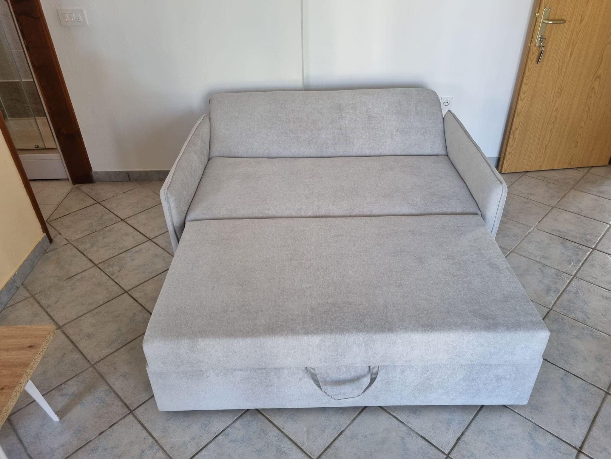 Ferienwohnung bietet Platz für 5 Gäste. Die Betten sind in Schlafzimmern, die es 1 gibt, und in Wohnzimmer, innerhalb einer Gesamtfläche von 30m2, angeordnet. Die Gäste haben eine eigene Terrasse zur Verfügung, auf der sie in warmen Sommernächten genießen können. Es ist erlaubt, Speisen auf dem Gemeinschafts-Grill vorzubereiten. IM PREIS INBEGRIFFEN: Kurtaxe, Endreinigung, Klimatisierung, Parkplatz, Internet, Föhn. VERBINDLICHE ZUSÄTZLICHE KOSTEN: Aufzahlung für Kurzaufenthalte (prozentualer Zuschlag pro Nächtigungsanzahl: 30% - 1, 20% - 2, 10% - 3). UNVERBINDLICHE ZUSÄTZLICHE KOSTEN: Wäschewaschen (10,00 € Waschen), Fahrrad (15,00 € täglich (pro Stück)). Die Verfügbarkeit zusätzlicher Dienstleistungen in Ihrem reservierten Termin und die Preise derselben (falls nicht aufgeführt) müssen im Voraus überprüft werden. Zusätzliche Dienstleistungen die in der Zahlungsaufforderung nicht aufgeführt sind werden direkt beim Vermieter bezahlt, angenommen der Gast nutzt auch diese. Ermäßigung auf den Grundpreis: Gratistag 14=13 (bei einem Aufenthalt von 14 Tagen oder mehr erhalten Sie einen Gratistag für den Aufenthalt bis 31.12.26).