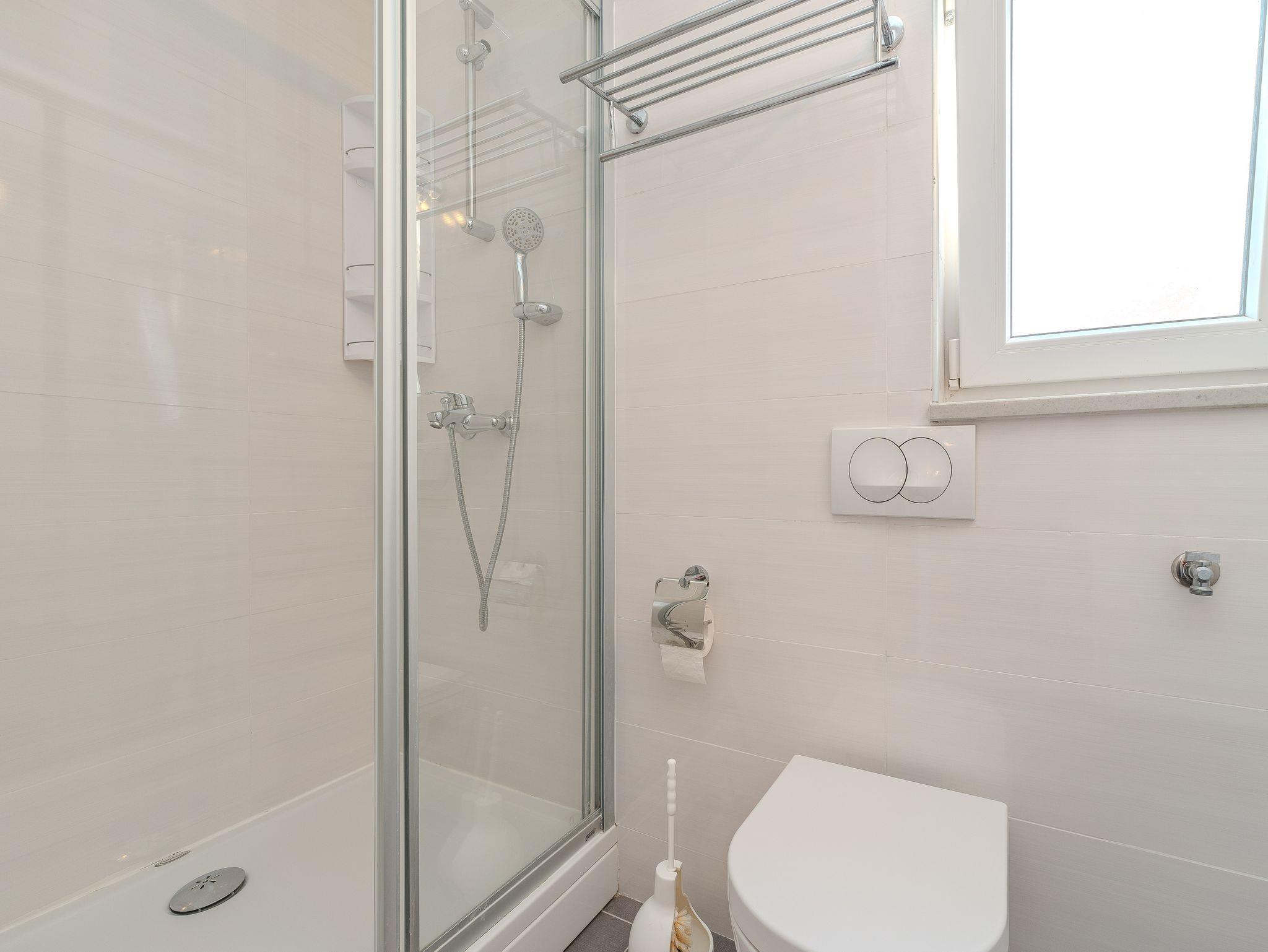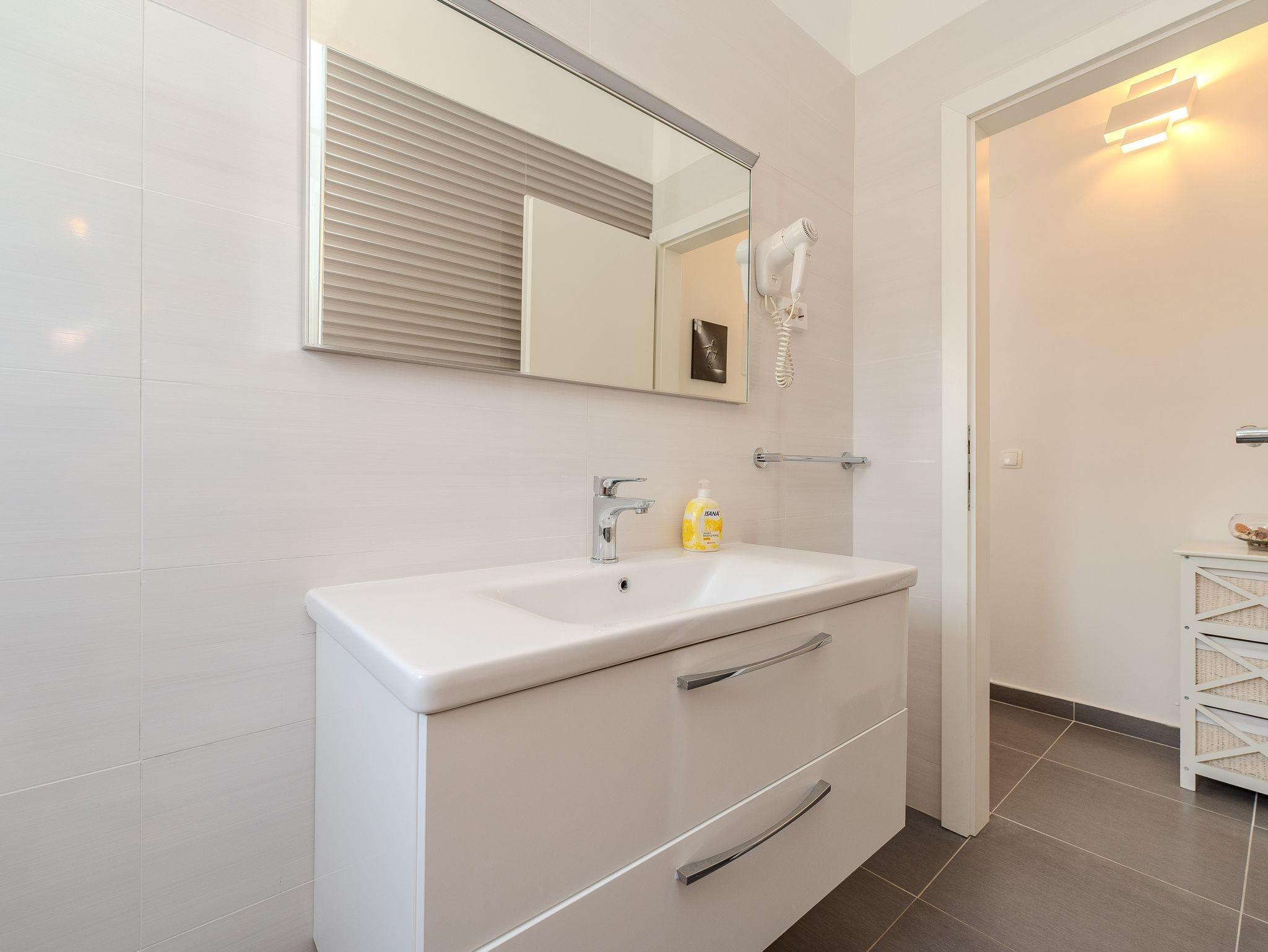 Ferienwohnung bietet Platz für 4 Gäste. Die Betten sind in Schlafzimmern, die es 2 gibt, innerhalb einer Gesamtfläche von 58m2, angeordnet. Die Gäste haben eine eigene Terrasse zur Verfügung, auf der sie in warmen Sommernächten genießen können. Das Apartment bietet Meerblick. Es ist erlaubt, Speisen auf dem Gemeinschafts-Grill vorzubereiten. IM PREIS INBEGRIFFEN: Kurtaxe, Endreinigung, Klimatisierung, Parkplatz, Internet, Kinderbett, Föhn. VERBINDLICHE ZUSÄTZLICHE KOSTEN: Aufzahlung für Kurzaufenthalte (prozentualer Zuschlag pro Nächtigungsanzahl: 30% - 1, 20% - 2, 10% - 3). Die Verfügbarkeit zusätzlicher Dienstleistungen in Ihrem reservierten Termin und die Preise derselben (falls nicht aufgeführt) müssen im Voraus überprüft werden. Zusätzliche Dienstleistungen die in der Zahlungsaufforderung nicht aufgeführt sind werden direkt beim Vermieter bezahlt, angenommen der Gast nutzt auch diese.