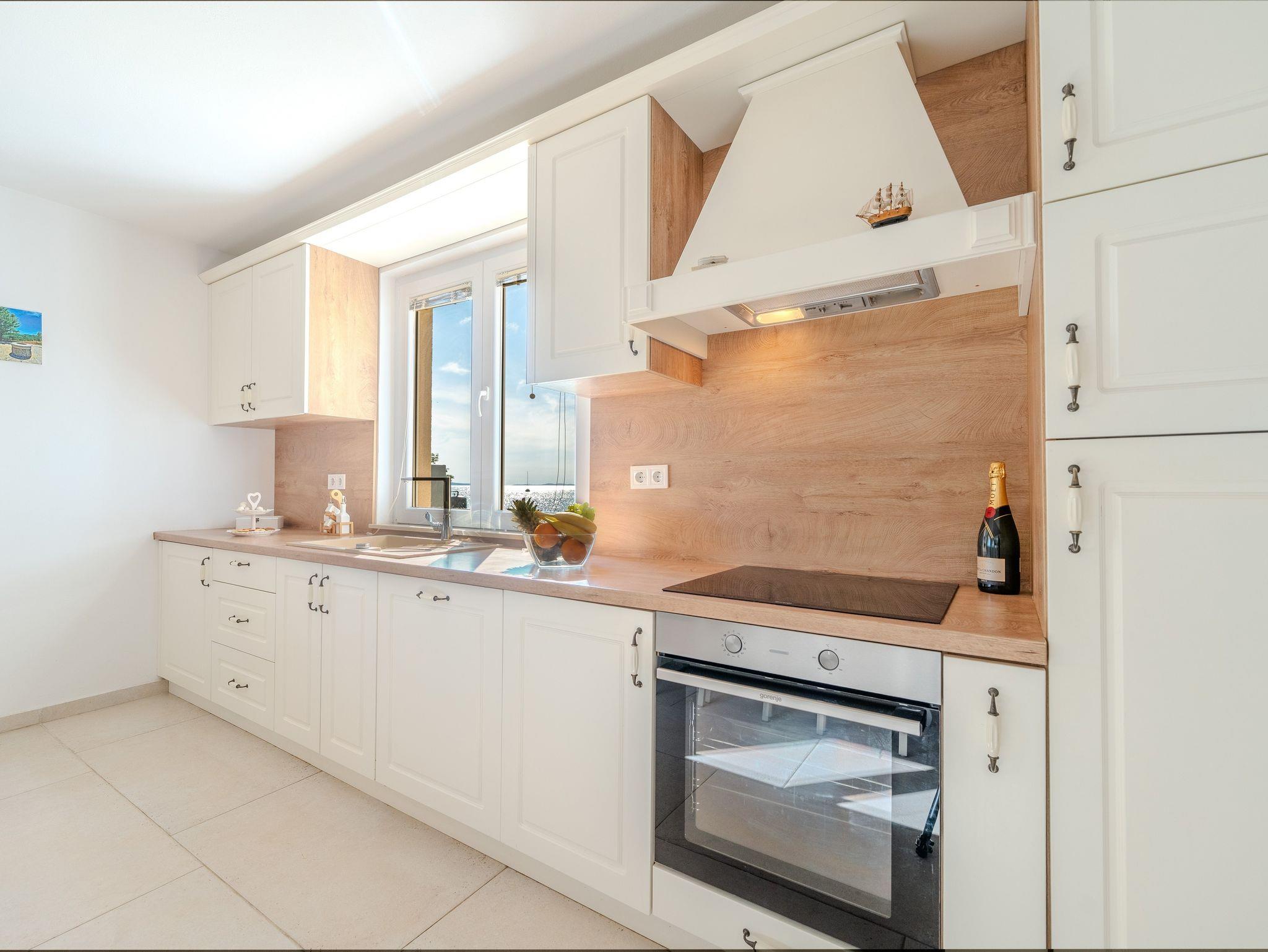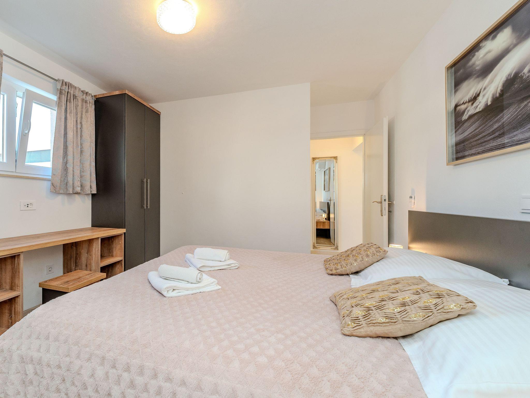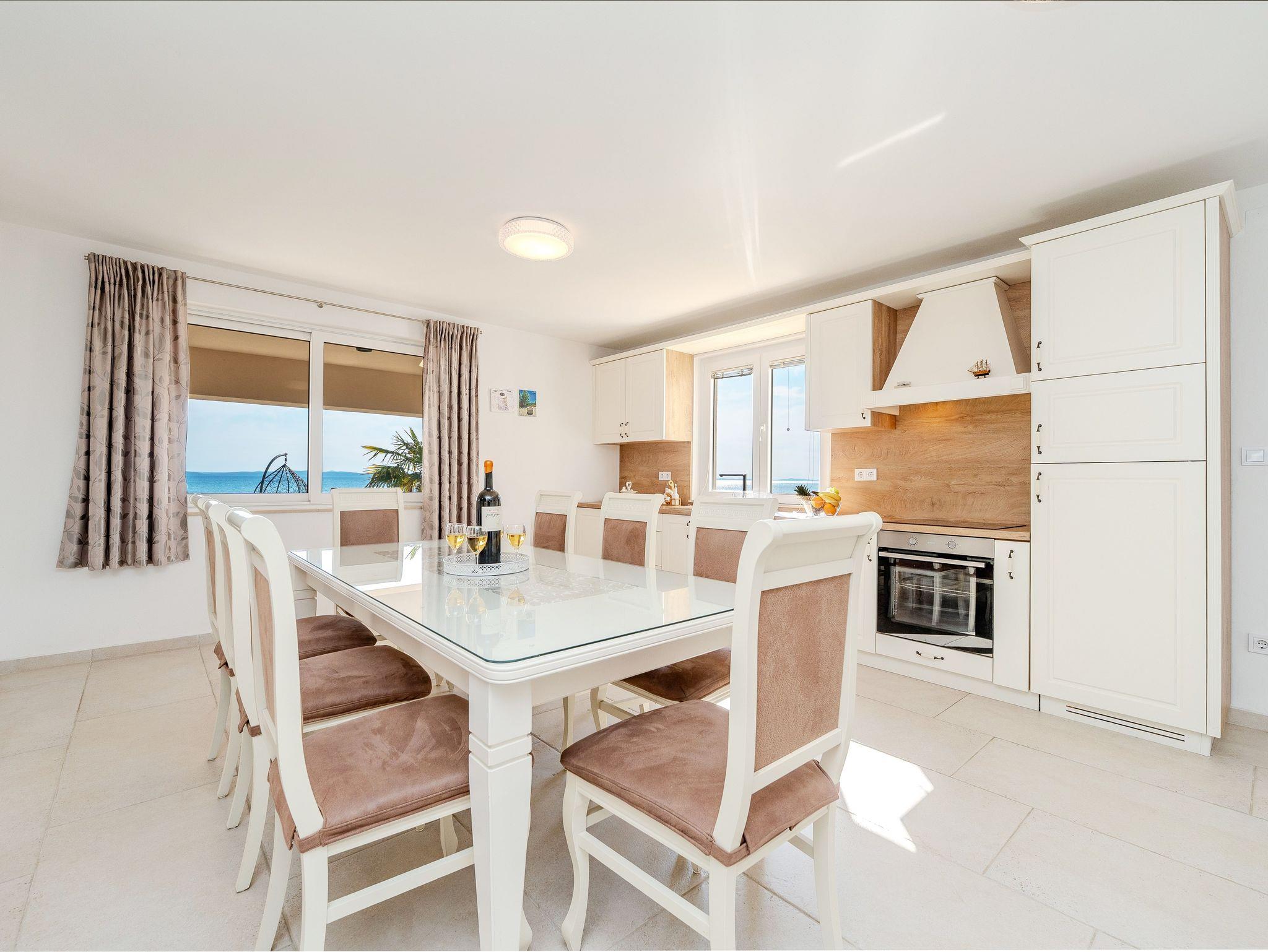 Ferienwohnung bietet Platz für 8 Gäste. Die Betten sind in Schlafzimmern, die es 3 gibt, und in Wohnzimmer, innerhalb einer Gesamtfläche von 130m2, angeordnet. Die Gäste haben eine eigene Terrasse zur Verfügung, auf der sie in warmen Sommernächten genießen können. Das Apartment bietet Meerblick. Es ist erlaubt, Speisen auf dem Gemeinschafts-Grill vorzubereiten. In der Unterkunftseinheit besteht die Möglichkeit des Mitbringens von Haustieren gegen Aufpreis. IM PREIS INBEGRIFFEN: Kurtaxe, Endreinigung, Klimatisierung, Parkplatz, Internet, Kinderbett, Bügeleisen, Bügelbrett, Föhn, tragbarer Grill, Liegestühle. VERBINDLICHE ZUSÄTZLICHE KOSTEN: Aufzahlung für Kurzaufenthalte (prozentualer Zuschlag pro Nächtigungsanzahl: 30% - 1, 20% - 2, 10% - 3). UNVERBINDLICHE ZUSÄTZLICHE KOSTEN: Haustiere (15,00 € pro Nacht). Die Verfügbarkeit zusätzlicher Dienstleistungen in Ihrem reservierten Termin und die Preise derselben (falls nicht aufgeführt) müssen im Voraus überprüft werden. Zusätzliche Dienstleistungen die in der Zahlungsaufforderung nicht aufgeführt sind werden direkt beim Vermieter bezahlt, angenommen der Gast nutzt auch diese.
