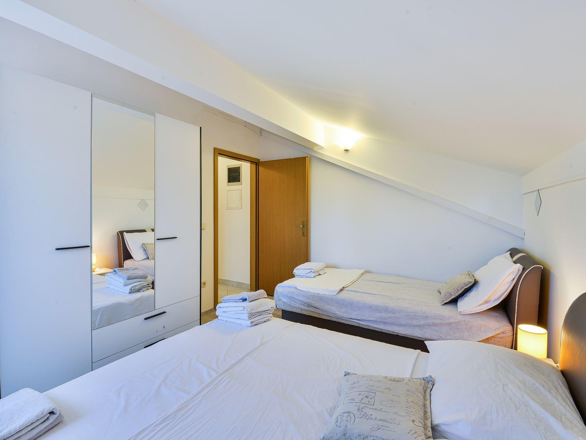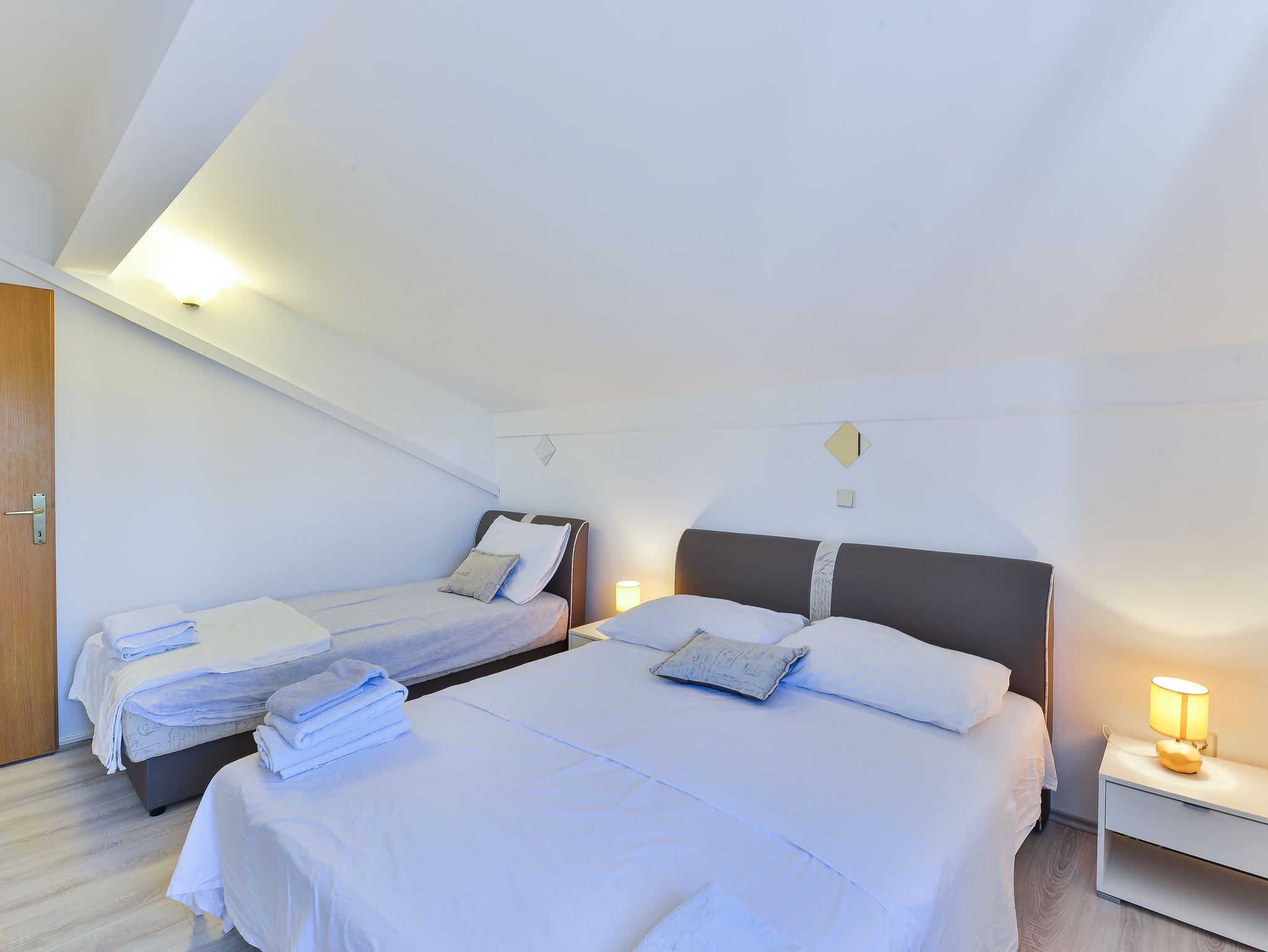 Ferienwohnung bietet Platz für 3 Gäste. Die Betten sind in Schlafzimmern, die es 1 gibt, innerhalb einer Gesamtfläche von 34m2, angeordnet. Die Gäste haben einen eigenen Balkon zur Verfügung, auf der sie in warmen Sommernächten genießen können. Es ist erlaubt, Speisen auf dem Gemeinschafts-Grill vorzubereiten. Während ihres Aufenthalts können Gäste das gemeinsam zur Nutzung stehende Schwimmbad benutzen. IM PREIS INBEGRIFFEN: Kurtaxe, Endreinigung, Klimatisierung, Pool, Parkplatz, Internet, Kinderbett, Föhn. VERBINDLICHE ZUSÄTZLICHE KOSTEN: Aufzahlung für Kurzaufenthalte (prozentualer Zuschlag pro Nächtigungsanzahl: 30% - 1, 20% - 2, 10% - 3). Die Verfügbarkeit zusätzlicher Dienstleistungen in Ihrem reservierten Termin und die Preise derselben (falls nicht aufgeführt) müssen im Voraus überprüft werden. Zusätzliche Dienstleistungen die in der Zahlungsaufforderung nicht aufgeführt sind werden direkt beim Vermieter bezahlt, angenommen der Gast nutzt auch diese.