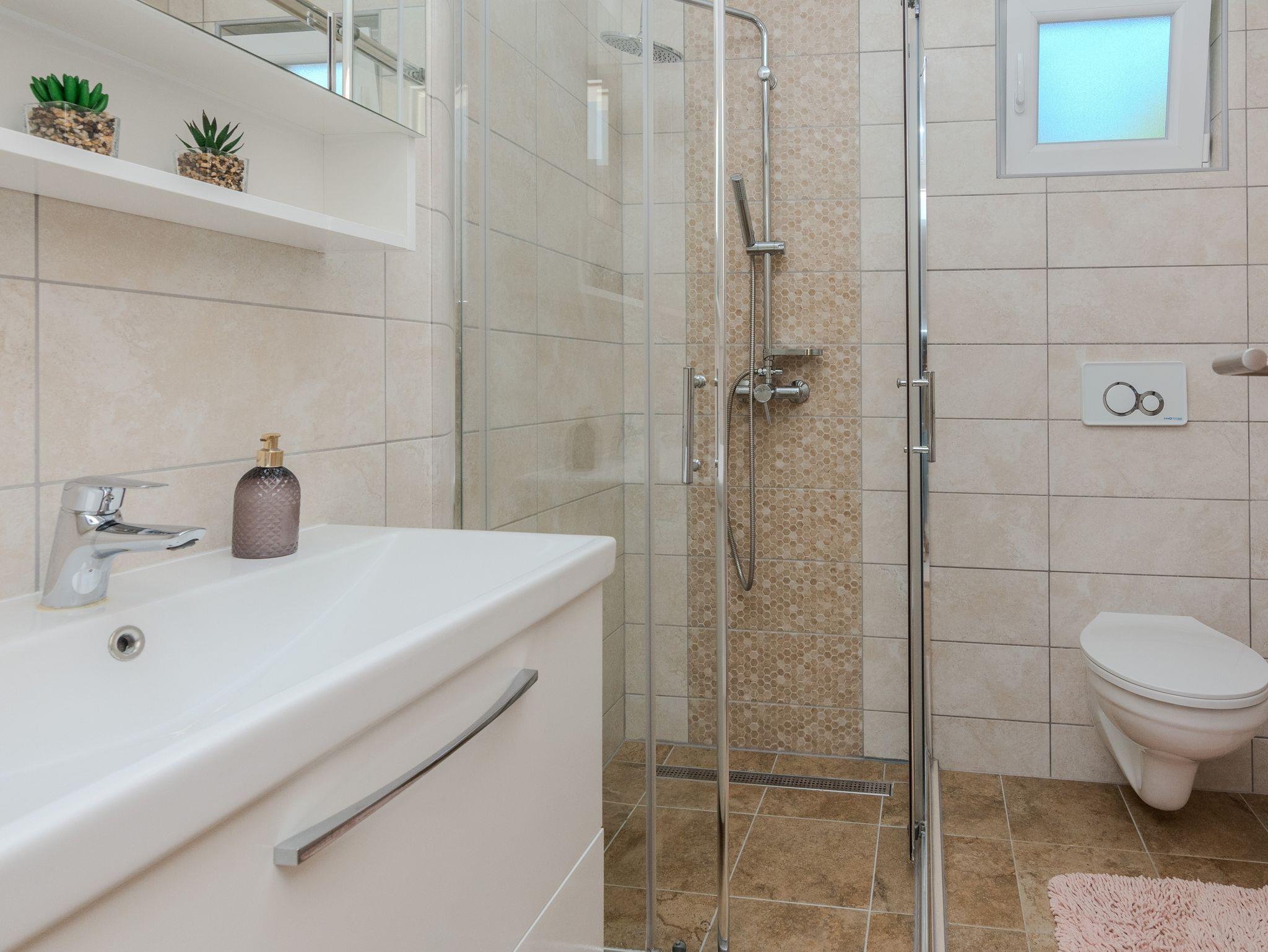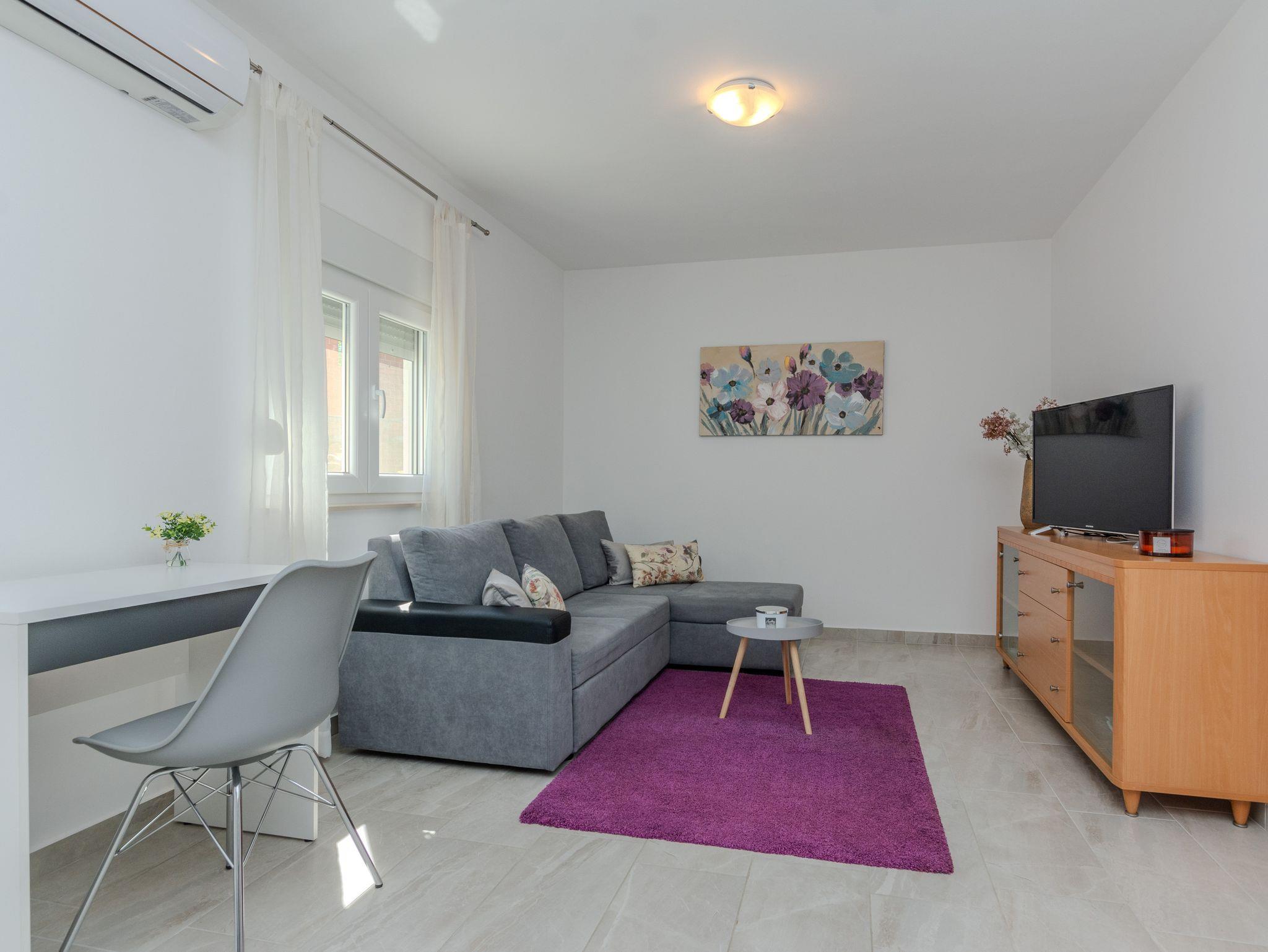 Haus bietet Platz für 6 Gäste. Die Betten sind in Schlafzimmern, die es 2 gibt, und in Wohnzimmer, innerhalb einer Gesamtfläche von 55m2, angeordnet. Die Gäste haben eine eigene Terrasse zur Verfügung, auf der sie in warmen Sommernächten genießen können. Für vollen Genuss und Entspannung gibt es einen privaten Grill für Gäste dieser Unterkunft. Während ihres Aufenthalts können sich Gäste im privaten Schwimmbad entspannen. IM PREIS INBEGRIFFEN: Kurtaxe, Endreinigung, Klimatisierung, Pool, Parkplatz, Internet, Kinderbett, Bügeleisen, Bügelbrett, Föhn. VERBINDLICHE ZUSÄTZLICHE KOSTEN: Aufzahlung für Kurzaufenthalte (prozentualer Zuschlag pro Nächtigungsanzahl: 30% - 1, 20% - 2, 10% - 3). Die Verfügbarkeit zusätzlicher Dienstleistungen in Ihrem reservierten Termin und die Preise derselben (falls nicht aufgeführt) müssen im Voraus überprüft werden. Zusätzliche Dienstleistungen die in der Zahlungsaufforderung nicht aufgeführt sind werden direkt beim Vermieter bezahlt, angenommen der Gast nutzt auch diese.