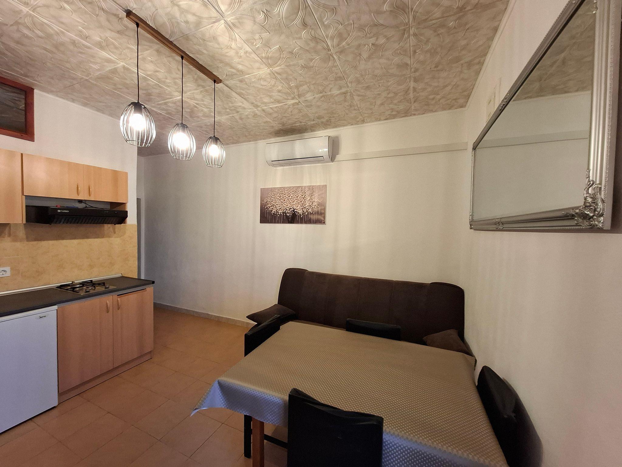 Studio bietet Platz für 3 Gäste. Die Betten sind in Schlafzimmern, die es 1 gibt, und in Wohnzimmer, innerhalb einer Gesamtfläche von 22m2, angeordnet. Die Gäste haben eine eigene Terrasse zur Verfügung, auf der sie in warmen Sommernächten genießen können. Räume der gebuchten Unterkunftseinheit werden nicht in eine Ganze verbunden. IM PREIS INBEGRIFFEN: Kurtaxe, Endreinigung, Klimatisierung, Parkplatz, Internet. Die Verfügbarkeit zusätzlicher Dienstleistungen in Ihrem reservierten Termin und die Preise derselben (falls nicht aufgeführt) müssen im Voraus überprüft werden. Zusätzliche Dienstleistungen die in der Zahlungsaufforderung nicht aufgeführt sind werden direkt beim Vermieter bezahlt, angenommen der Gast nutzt auch diese. Ermäßigung auf den Grundpreis: Gratistag 14=13 (bei einem Aufenthalt von 14 Tagen oder mehr erhalten Sie einen Gratistag für den Aufenthalt bis 31.12.26).