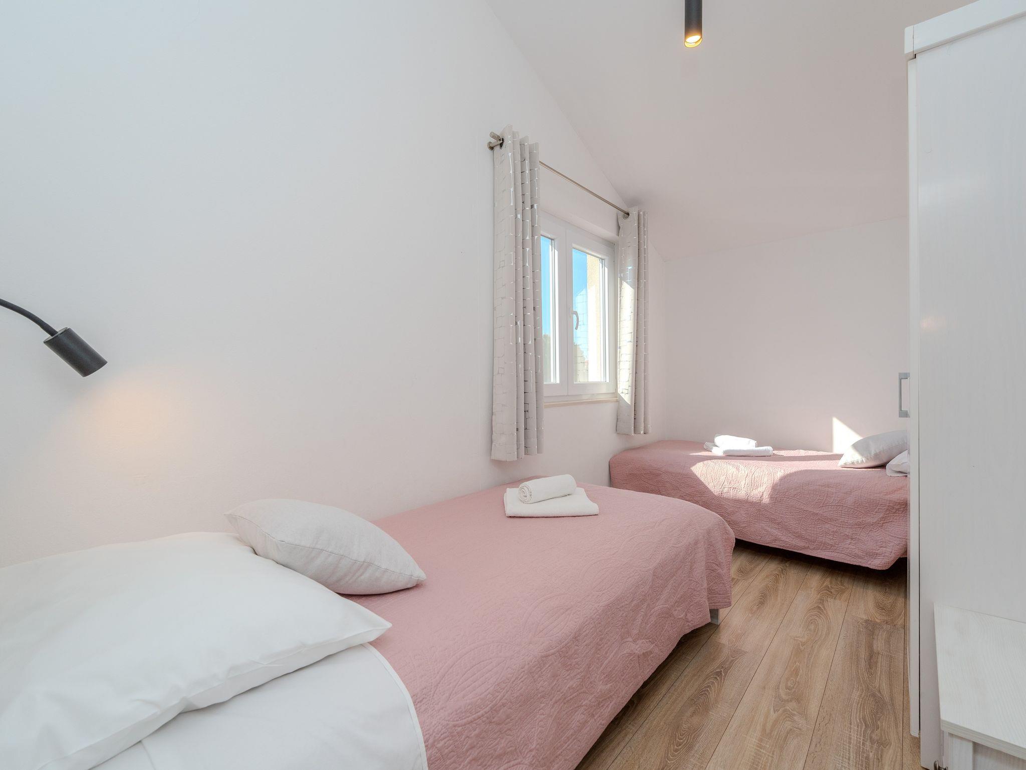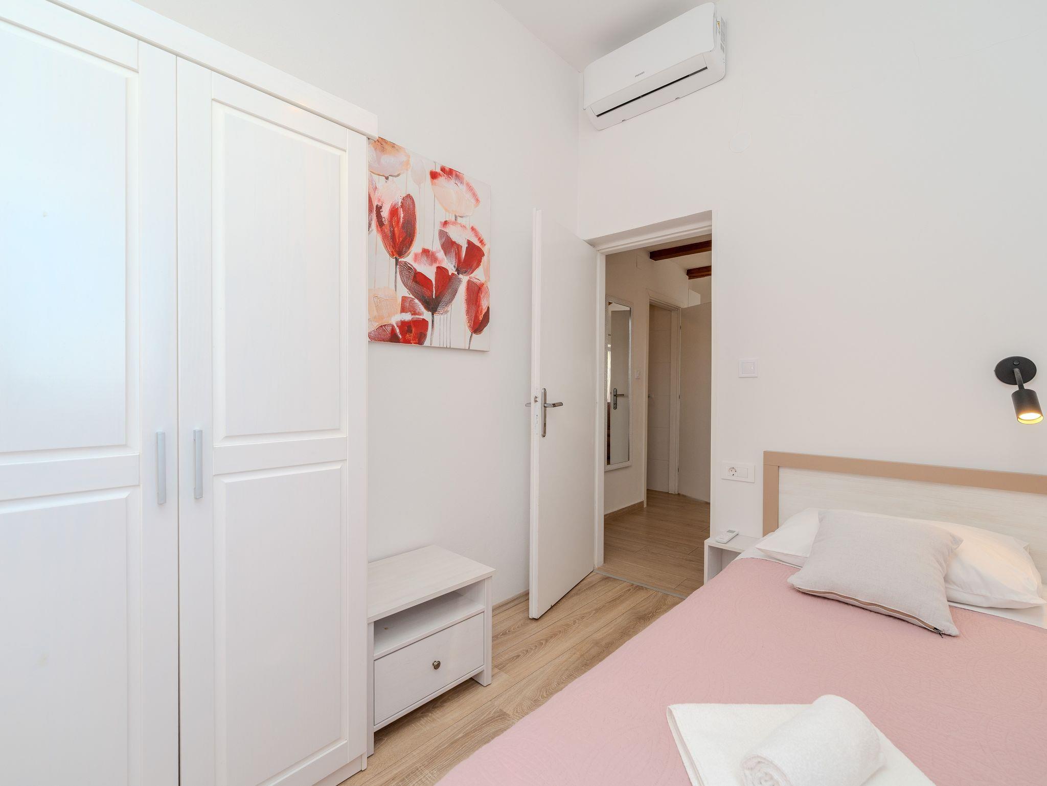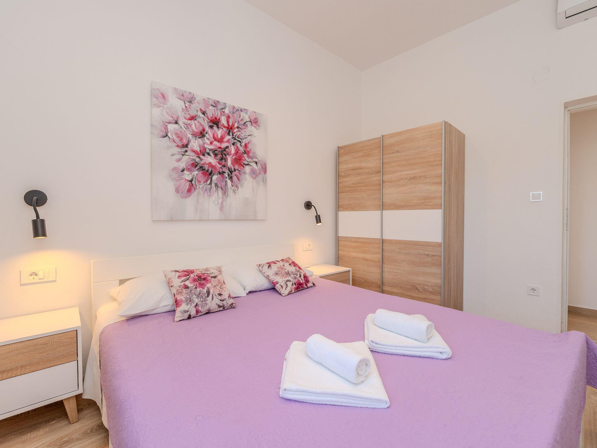 Ferienwohnung bietet Platz für 6 Gäste. Die Betten sind in Schlafzimmern, die es 2 gibt, und in Wohnzimmer, innerhalb einer Gesamtfläche von 60m2, angeordnet. Die Gäste haben eine eigene Terrasse zur Verfügung, auf der sie in warmen Sommernächten genießen können. Das Apartment bietet Meerblick. Es ist erlaubt, Speisen auf dem Gemeinschafts-Grill vorzubereiten. In der Unterkunftseinheit besteht die Möglichkeit des Mitbringens von Haustieren gegen Aufpreis. IM PREIS INBEGRIFFEN: Kurtaxe, Endreinigung, Klimatisierung, Parkplatz, Internet, Kinderbett, Bügeleisen, Bügelbrett, Föhn, tragbarer Grill, Liegestühle. VERBINDLICHE ZUSÄTZLICHE KOSTEN: Aufzahlung für Kurzaufenthalte (prozentualer Zuschlag pro Nächtigungsanzahl: 30% - 1, 20% - 2, 10% - 3). UNVERBINDLICHE ZUSÄTZLICHE KOSTEN: Haustiere (15,00 € pro Nacht). Die Verfügbarkeit zusätzlicher Dienstleistungen in Ihrem reservierten Termin und die Preise derselben (falls nicht aufgeführt) müssen im Voraus überprüft werden. Zusätzliche Dienstleistungen die in der Zahlungsaufforderung nicht aufgeführt sind werden direkt beim Vermieter bezahlt, angenommen der Gast nutzt auch diese.