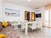 Die 47 m² Wohnung ideal für 4 Personen (im Erste Stock des Hauses) ist in ein Wohnzimmer mit Essbereich, voll ausgestatteter Küche, zwei Schlafzimmer mit Doppelbetten und ein Badezimmer mit Dusche unterteilt. Das Wohnzimmer öffnet sich zu einem möblierten und überdachten Balkon (16 m²) mit teilweisen Meerblick.