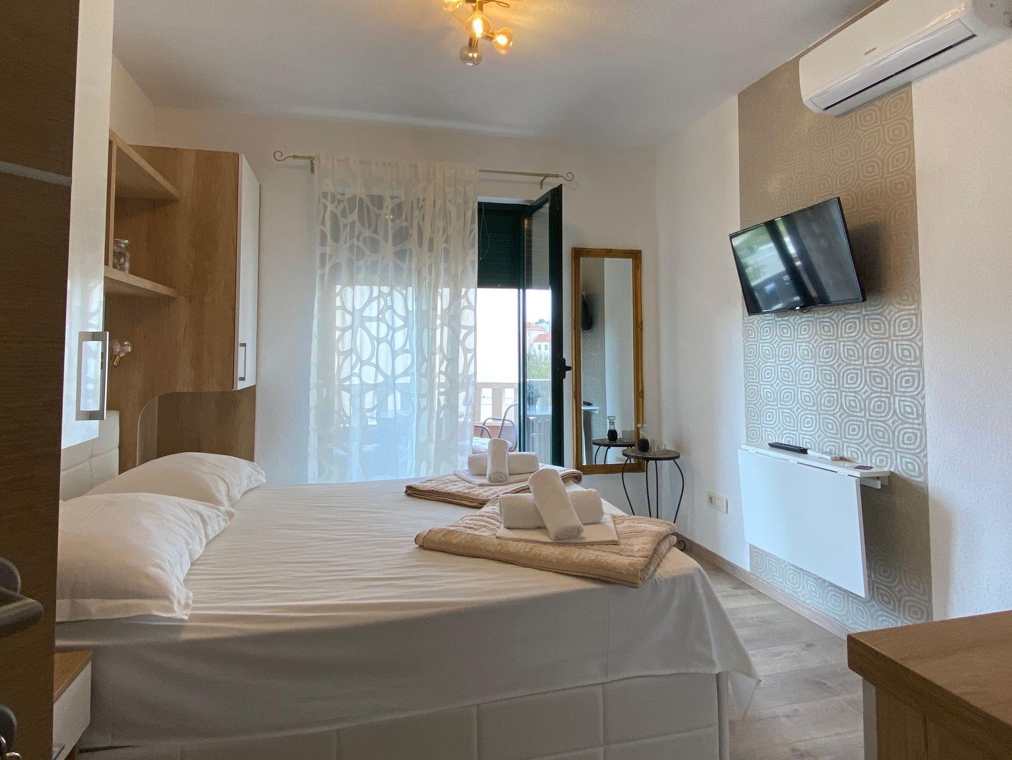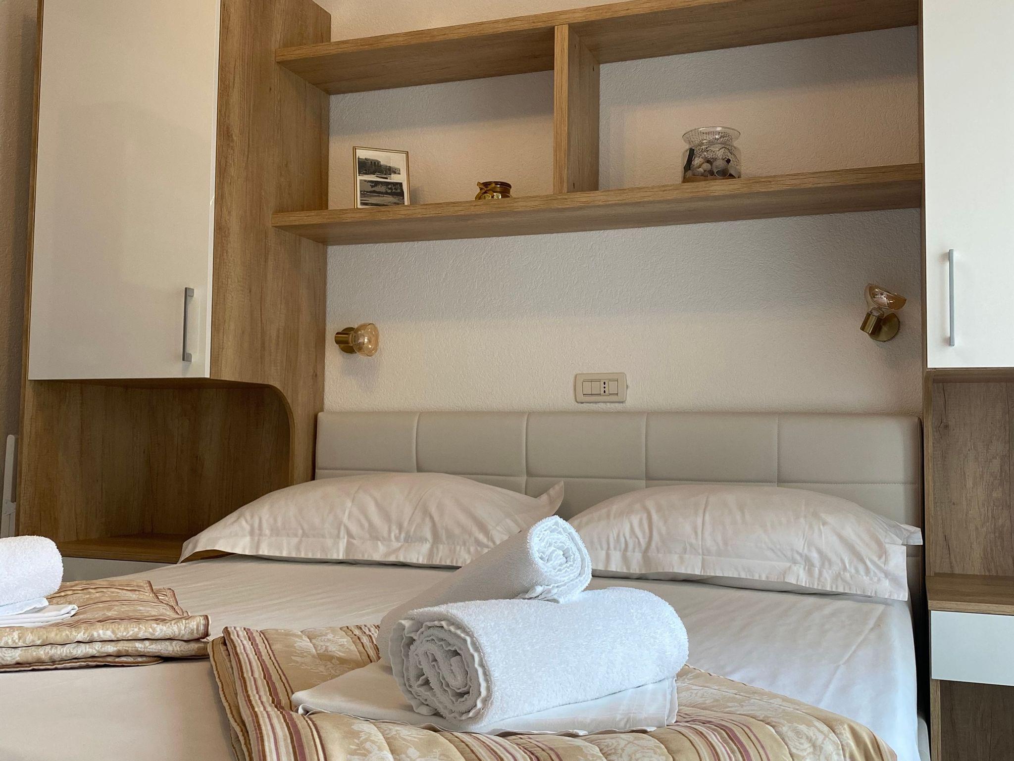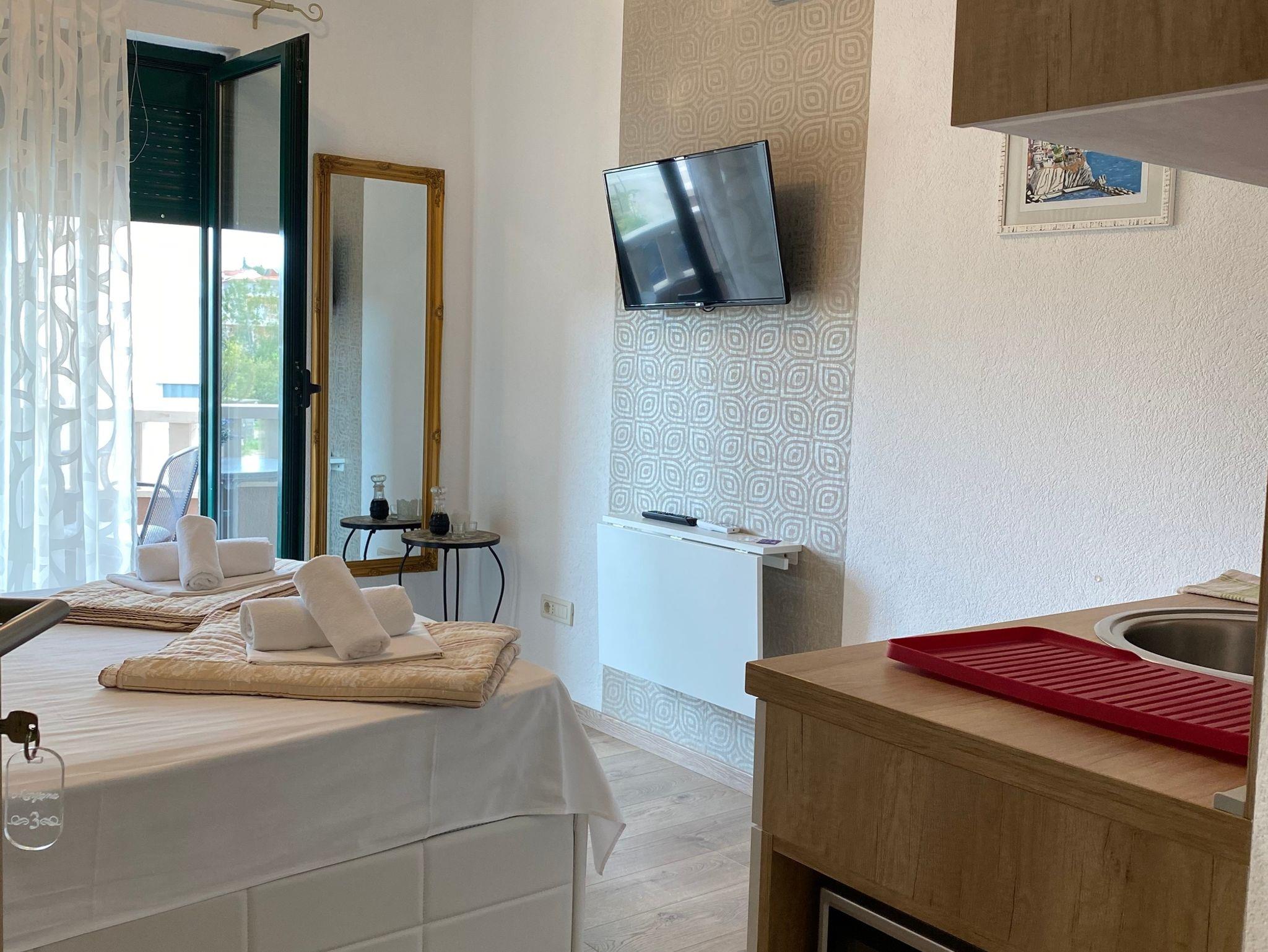 Studio bietet Platz für 2 Gäste. Die Betten sind in Schlafzimmern, die es 1 gibt, innerhalb einer Gesamtfläche von 14m2, angeordnet. Die Gäste haben einen eigenen Balkon zur Verfügung, auf der sie in warmen Sommernächten genießen können. Es ist erlaubt, Speisen auf dem Gemeinschafts-Grill vorzubereiten. Während ihres Aufenthalts können Gäste das gemeinsam zur Nutzung stehende Schwimmbad benutzen. IM PREIS INBEGRIFFEN: Kurtaxe, Endreinigung, Klimatisierung, Pool, Parkplatz, Internet, Wäschewaschen, Kinderbett, Föhn. Die Verfügbarkeit zusätzlicher Dienstleistungen in Ihrem reservierten Termin und die Preise derselben (falls nicht aufgeführt) müssen im Voraus überprüft werden. Zusätzliche Dienstleistungen die in der Zahlungsaufforderung nicht aufgeführt sind werden direkt beim Vermieter bezahlt, angenommen der Gast nutzt auch diese.
