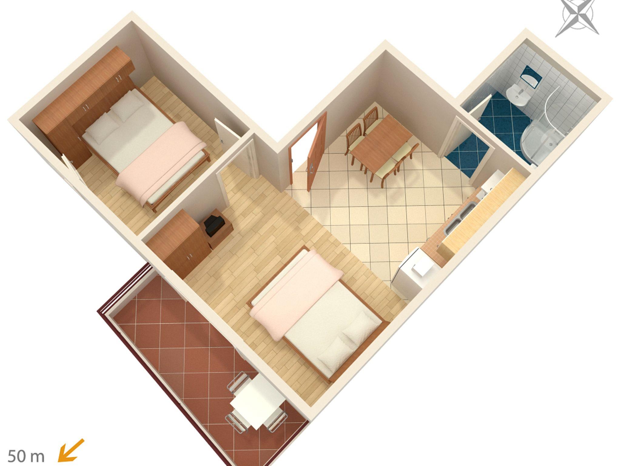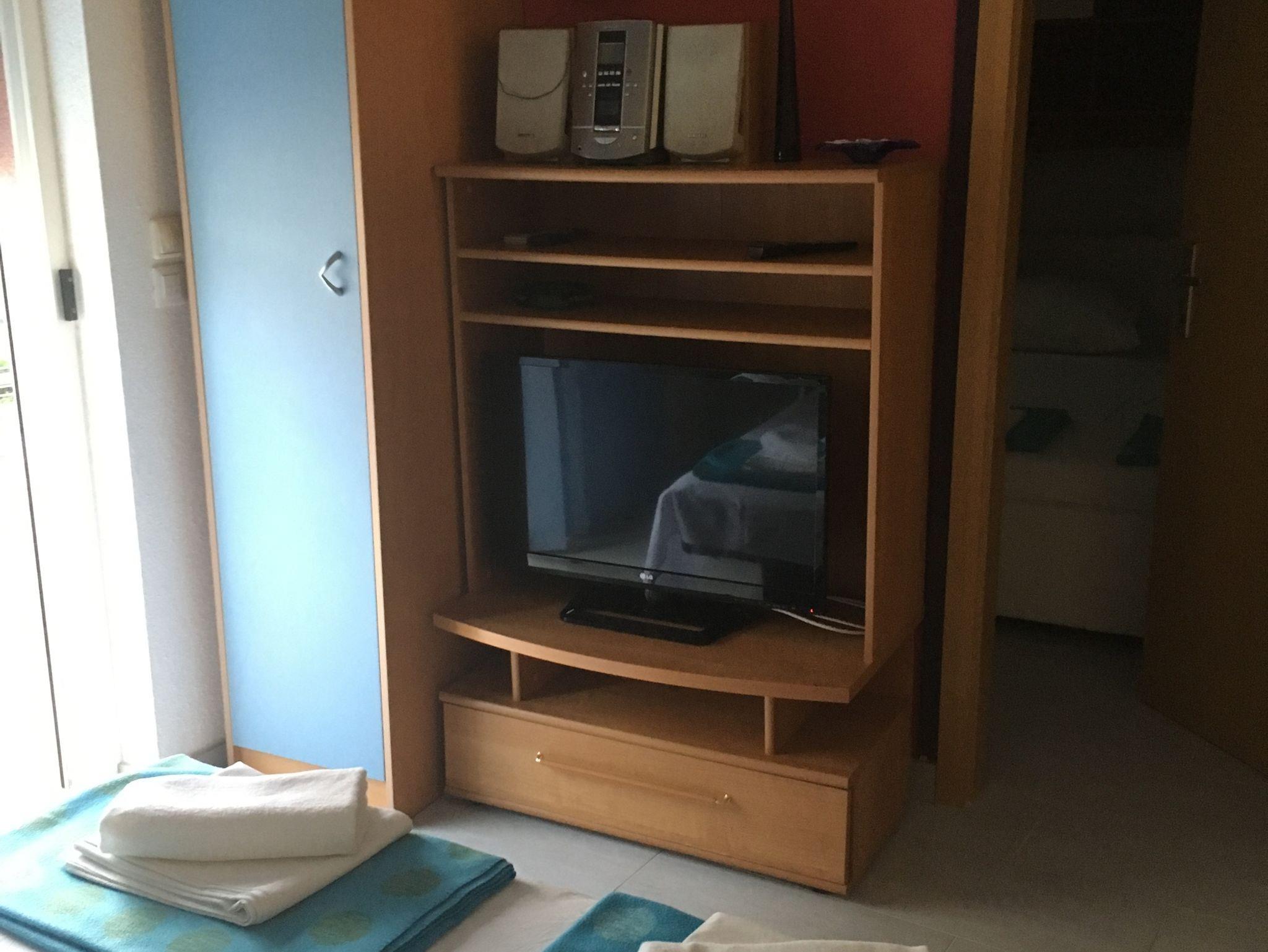 Ferienwohnung bietet Platz für 4 Gäste. Die Betten sind in Schlafzimmern, die es 1 gibt, und in Wohnzimmer, innerhalb einer Gesamtfläche von 29m2, angeordnet. Die Gäste haben einen eigenen Balkon zur Verfügung, auf der sie in warmen Sommernächten genießen können. IM PREIS INBEGRIFFEN: Kurtaxe, Endreinigung, Klimatisierung, Parkplatz, Internet. VERBINDLICHE ZUSÄTZLICHE KOSTEN: Aufzahlung für Kurzaufenthalte (prozentualer Zuschlag pro Nächtigungsanzahl: 30% - 1, 20% - 2, 10% - 3). Die Verfügbarkeit zusätzlicher Dienstleistungen in Ihrem reservierten Termin und die Preise derselben (falls nicht aufgeführt) müssen im Voraus überprüft werden. Zusätzliche Dienstleistungen die in der Zahlungsaufforderung nicht aufgeführt sind werden direkt beim Vermieter bezahlt, angenommen der Gast nutzt auch diese.