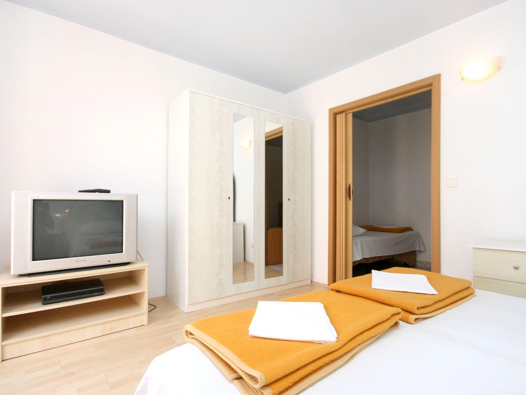Ferienwohnung bietet Platz für 5 Gäste. Die Betten sind in Schlafzimmern, die es 2 gibt, innerhalb einer Gesamtfläche von 52m2, angeordnet. Die Gäste haben einen eigenen Balkon zur Verfügung, auf der sie in warmen Sommernächten genießen können. Das Apartment bietet Meerblick. Durch das Schlafzimmer der gebuchten Unterkunftseinheit geht man in die andere Räume der Einheit. IM PREIS INBEGRIFFEN: Kurtaxe, Endreinigung, Klimatisierung, Parkplatz, Internet. VERBINDLICHE ZUSÄTZLICHE KOSTEN: Aufzahlung für Kurzaufenthalte (prozentualer Zuschlag pro Nächtigungsanzahl: 30% - 1, 20% - 2, 10% - 3). Die Verfügbarkeit zusätzlicher Dienstleistungen in Ihrem reservierten Termin und die Preise derselben (falls nicht aufgeführt) müssen im Voraus überprüft werden. Zusätzliche Dienstleistungen die in der Zahlungsaufforderung nicht aufgeführt sind werden direkt beim Vermieter bezahlt, angenommen der Gast nutzt auch diese.