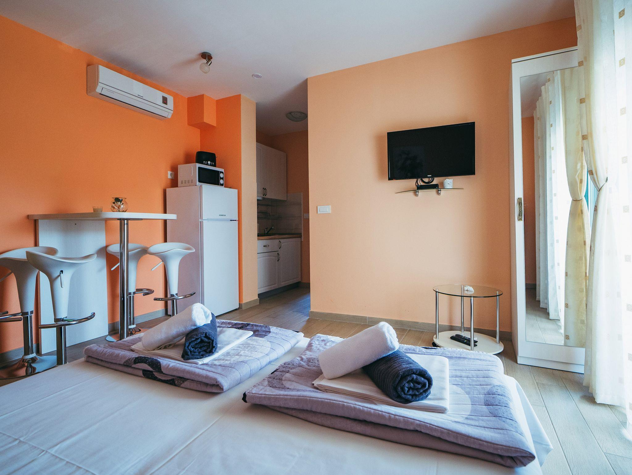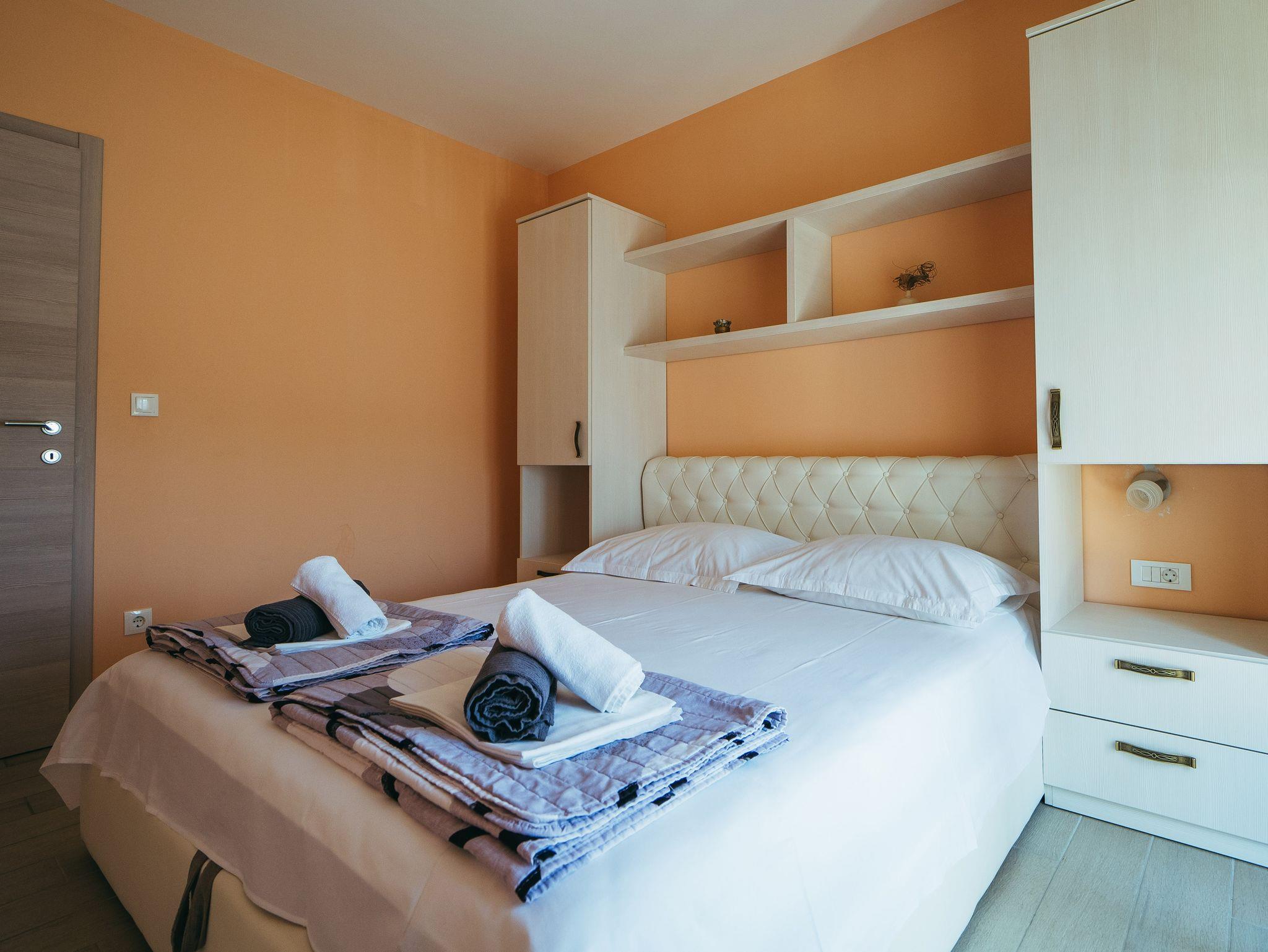 Ferienwohnung bietet Platz für 4 Gäste. Die Betten sind in Schlafzimmern, die es 1 gibt, und in Wohnzimmer, innerhalb einer Gesamtfläche von 30m2, angeordnet. Die Gäste haben einen eigenen Balkon zur Verfügung, auf der sie in warmen Sommernächten genießen können. Das Apartment bietet Meerblick. Es ist erlaubt, Speisen auf dem Gemeinschafts-Grill vorzubereiten. Während ihres Aufenthalts können Gäste das gemeinsam zur Nutzung stehende Schwimmbad benutzen. IM PREIS INBEGRIFFEN: Kurtaxe, Endreinigung, Klimatisierung, Pool, Parkplatz, Internet, Wäschewaschen, Kinderbett, Föhn. Die Verfügbarkeit zusätzlicher Dienstleistungen in Ihrem reservierten Termin und die Preise derselben (falls nicht aufgeführt) müssen im Voraus überprüft werden. Zusätzliche Dienstleistungen die in der Zahlungsaufforderung nicht aufgeführt sind werden direkt beim Vermieter bezahlt, angenommen der Gast nutzt auch diese.