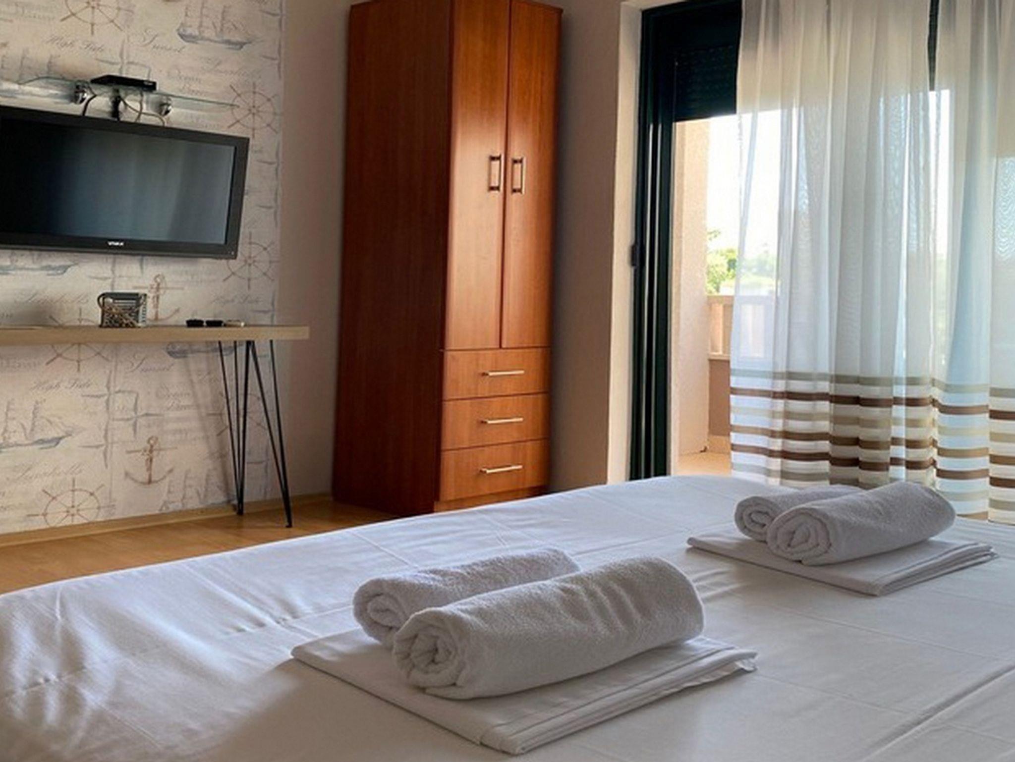 Ferienwohnung bietet Platz für 4 Gäste. Die Betten sind in Schlafzimmern, die es 1 gibt, und in Wohnzimmer, innerhalb einer Gesamtfläche von 30m2, angeordnet. Die Gäste haben einen eigenen Balkon zur Verfügung, auf der sie in warmen Sommernächten genießen können. Das Apartment bietet Meerblick. Es ist erlaubt, Speisen auf dem Gemeinschafts-Grill vorzubereiten. Während ihres Aufenthalts können Gäste das gemeinsam zur Nutzung stehende Schwimmbad benutzen. IM PREIS INBEGRIFFEN: Kurtaxe, Endreinigung, Klimatisierung, Pool, Parkplatz, Internet, Wäschewaschen, Kinderbett, Föhn. Die Verfügbarkeit zusätzlicher Dienstleistungen in Ihrem reservierten Termin und die Preise derselben (falls nicht aufgeführt) müssen im Voraus überprüft werden. Zusätzliche Dienstleistungen die in der Zahlungsaufforderung nicht aufgeführt sind werden direkt beim Vermieter bezahlt, angenommen der Gast nutzt auch diese.
