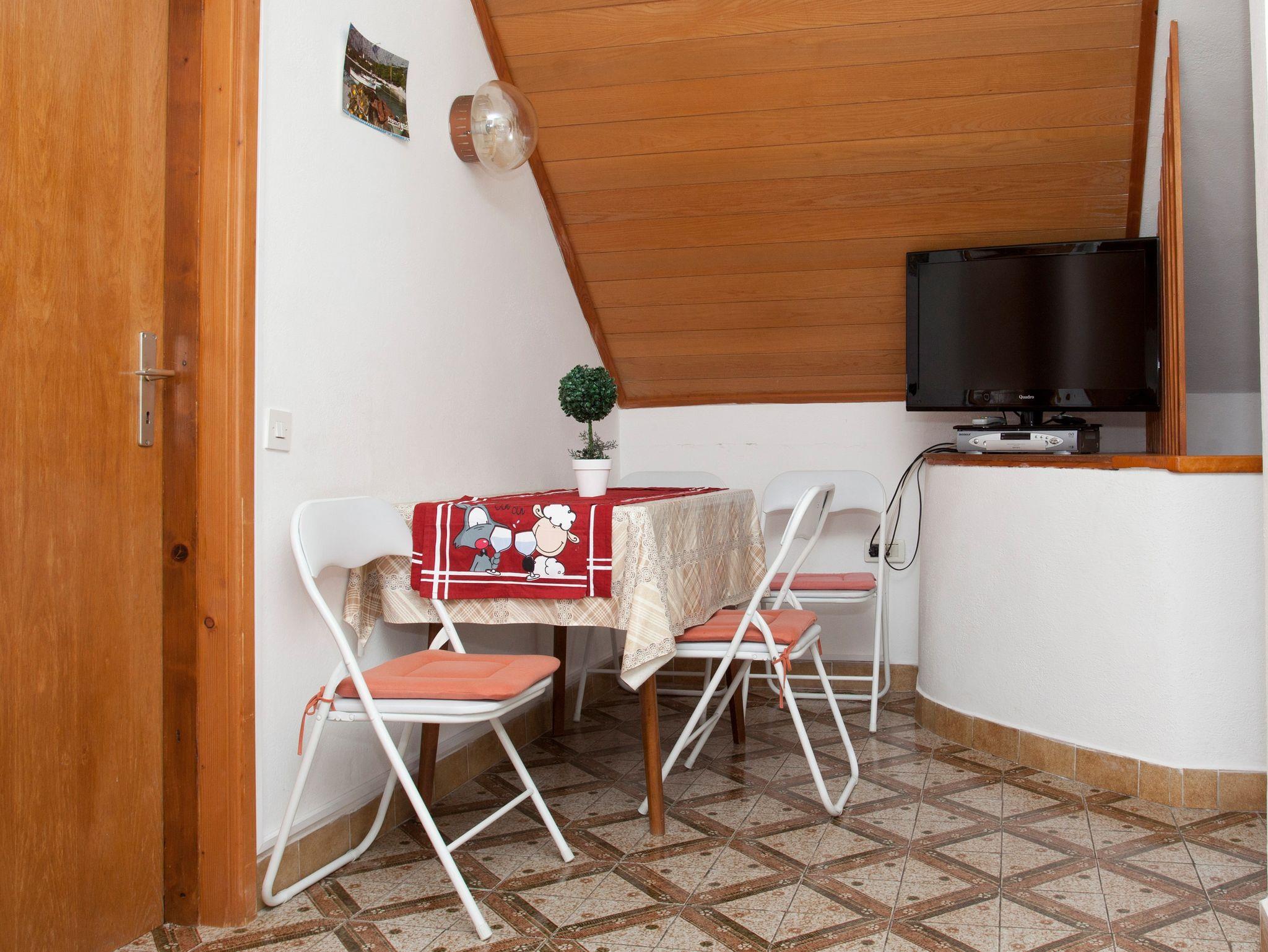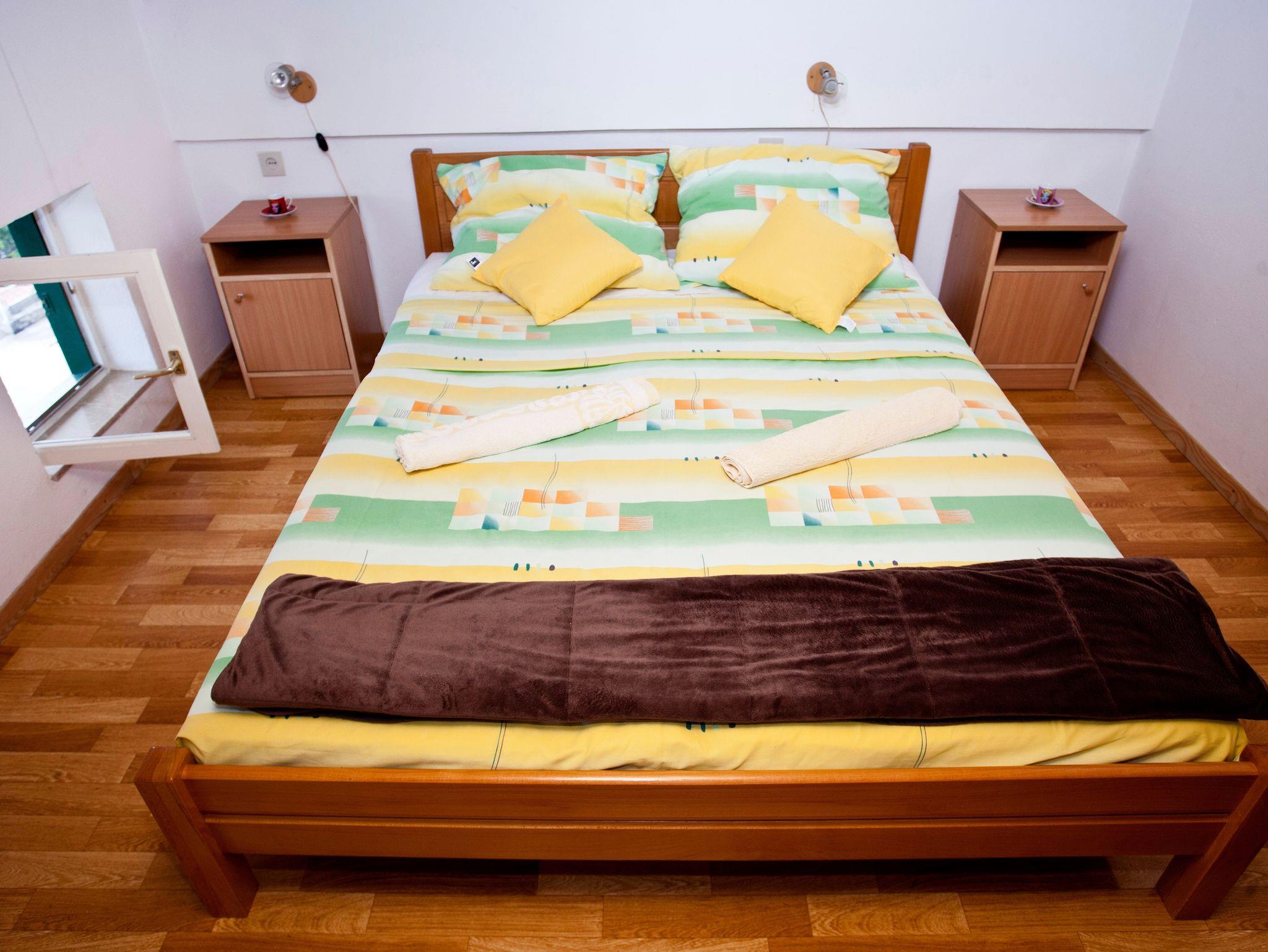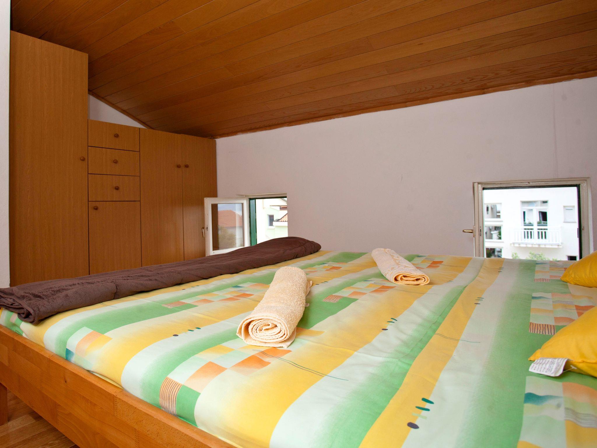 Ferienwohnung bietet Platz für 4 Gäste. Die Betten sind in Schlafzimmern, die es 2 gibt, innerhalb einer Gesamtfläche von 37m2, angeordnet. Die Gäste haben eine eigene Terrasse zur Verfügung, auf der sie in warmen Sommernächten genießen können. Das Apartment bietet Meerblick. Es ist erlaubt, Speisen auf dem Gemeinschafts-Grill vorzubereiten. IM PREIS INBEGRIFFEN: Kurtaxe, Endreinigung, Klimatisierung, Parkplatz, Internet, Wäschewaschen, Kinderbett, Bügeleisen, Bügelbrett, Föhn. VERBINDLICHE ZUSÄTZLICHE KOSTEN: Aufzahlung für Kurzaufenthalte (prozentualer Zuschlag pro Nächtigungsanzahl: 30% - 1, 20% - 2, 10% - 3). Die Verfügbarkeit zusätzlicher Dienstleistungen in Ihrem reservierten Termin und die Preise derselben (falls nicht aufgeführt) müssen im Voraus überprüft werden. Zusätzliche Dienstleistungen die in der Zahlungsaufforderung nicht aufgeführt sind werden direkt beim Vermieter bezahlt, angenommen der Gast nutzt auch diese. Ermäßigung auf den Grundpreis: Gratistag 14=13 (bei einem Aufenthalt von 14 Tagen oder mehr erhalten Sie einen Gratistag für den Aufenthalt bis 31.12.26).