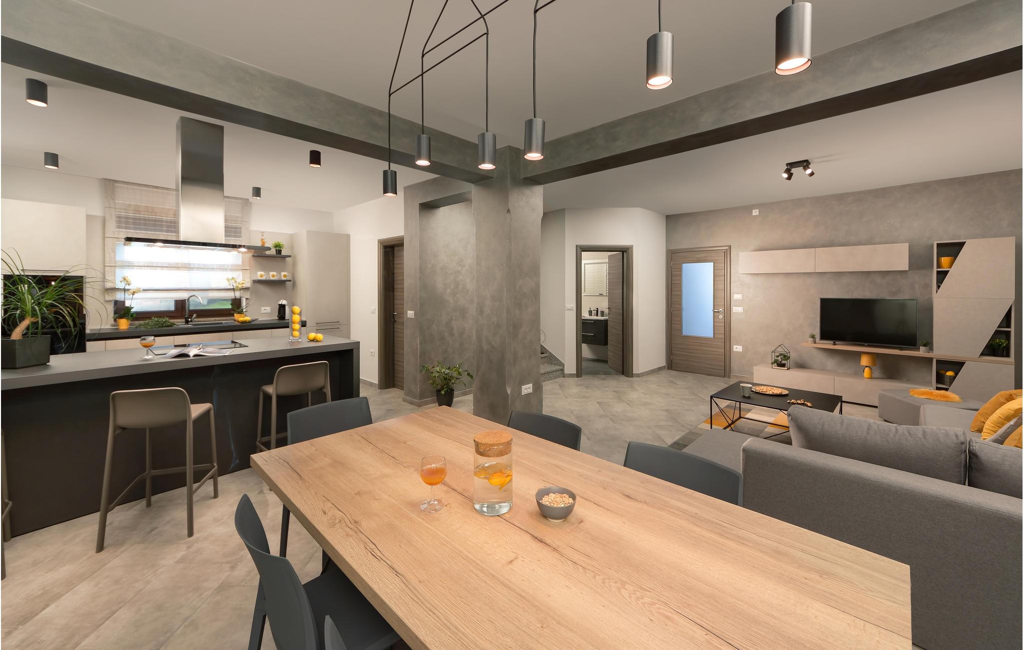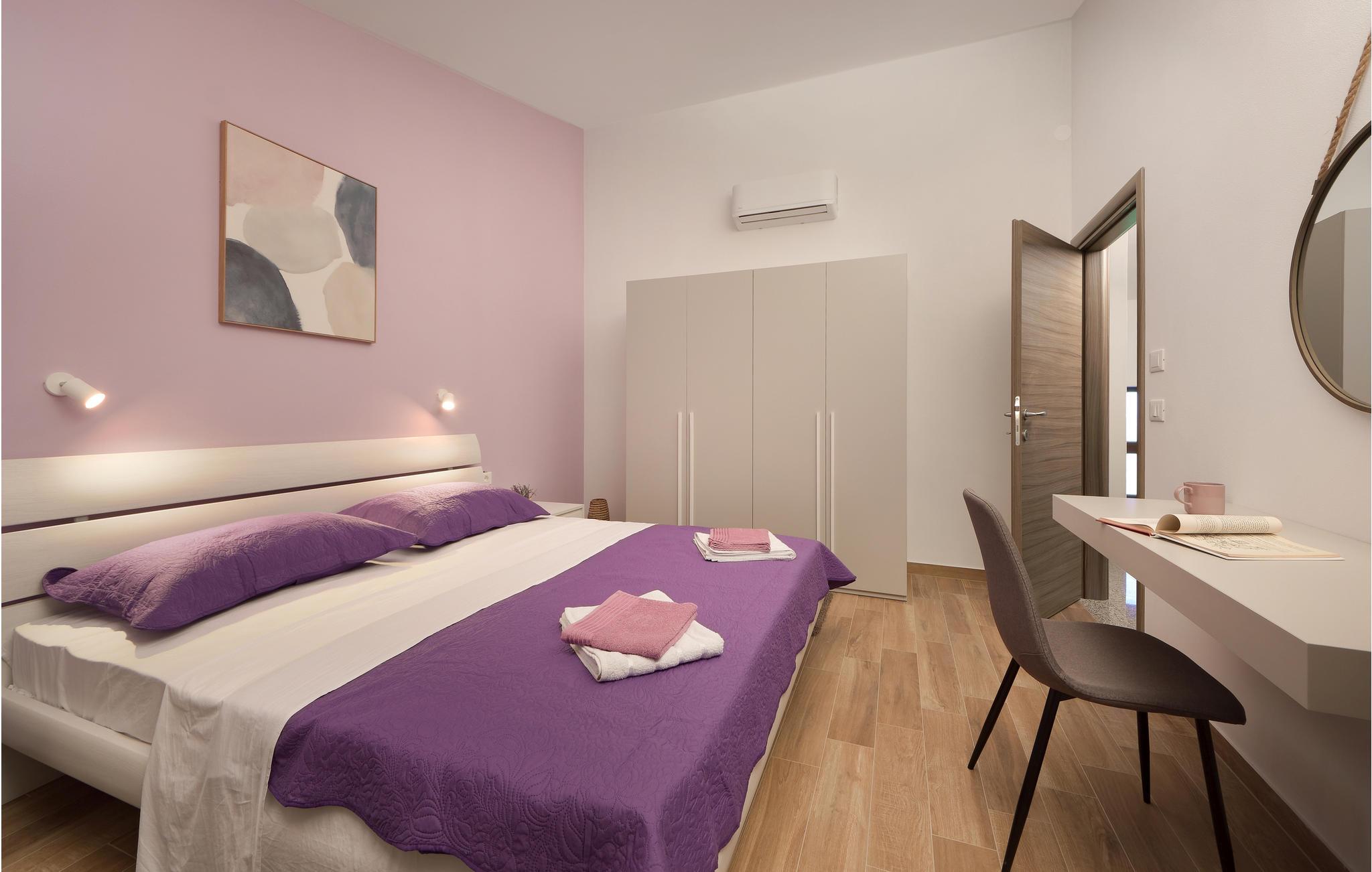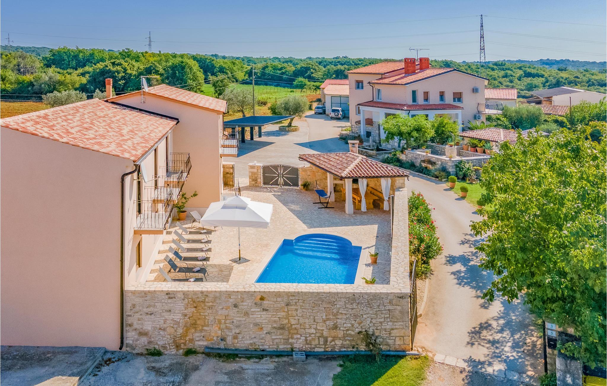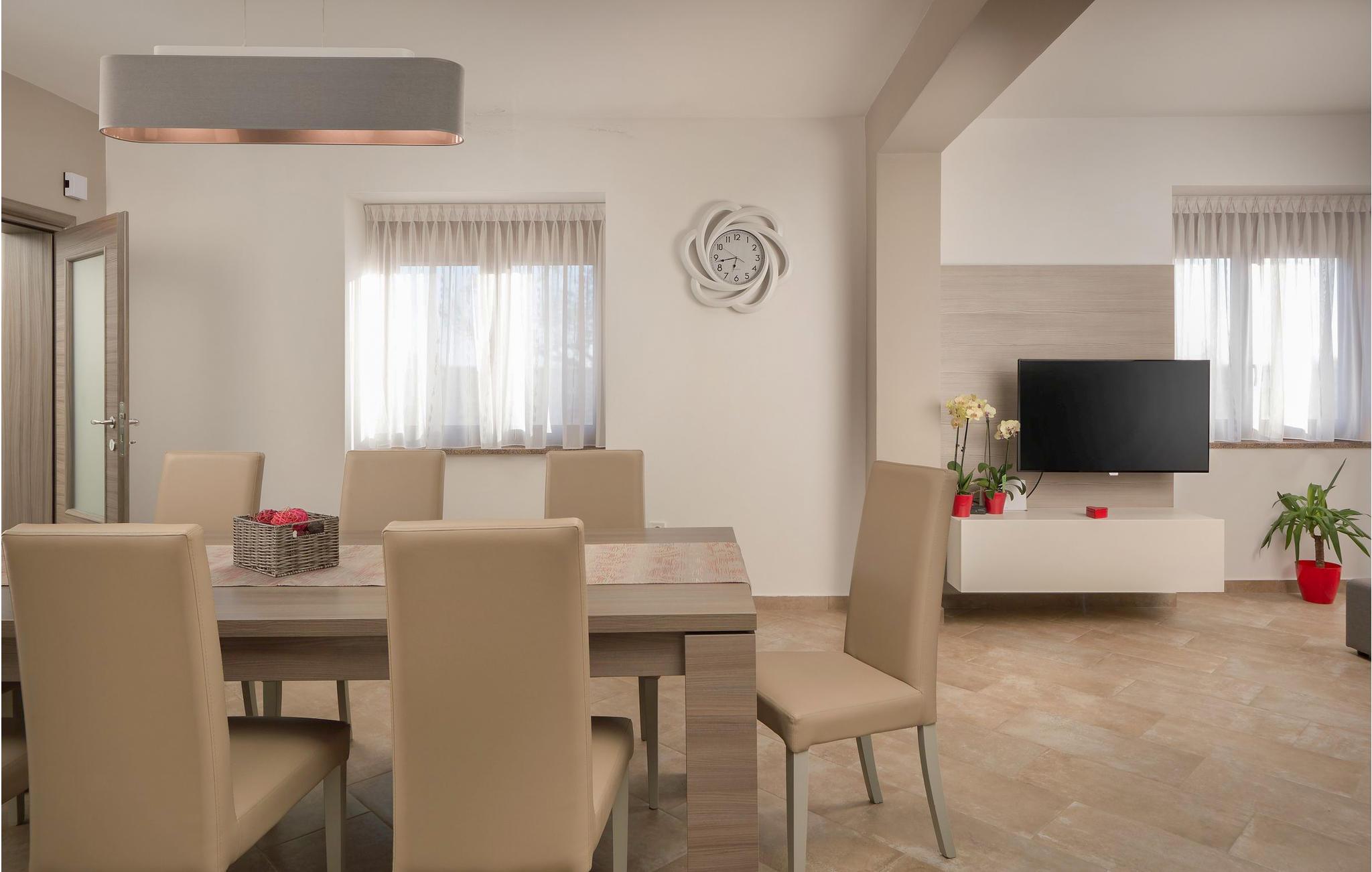 Dette dejlige feriehus, som består af to forbundne enheder, kan rumme op til 12 gæster og er ideel til flere familier eller vennegrupper, der ønsker at tilbringe deres ferie sammen og samtidig have ldit privatliv. Stueetagen består af forskellige opholdsarealer - et fuldt udstyret køkken med spisestue og stue, samt badeværelse og spisekammer. Første sal er en slags sovesal - hver enhed har tre soveværelser og et badeværelse. Fra første sal har I desuden en smuk udsigt over havet og Brijuni skærgården. Hvert værelse har klimaanlæg, og det samme har stuen.