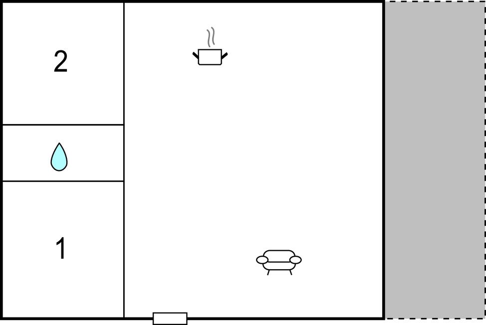 Opholdsstue/køkken 20m2 - 2 Sovepladser. (Sofa, madras eller lignende).