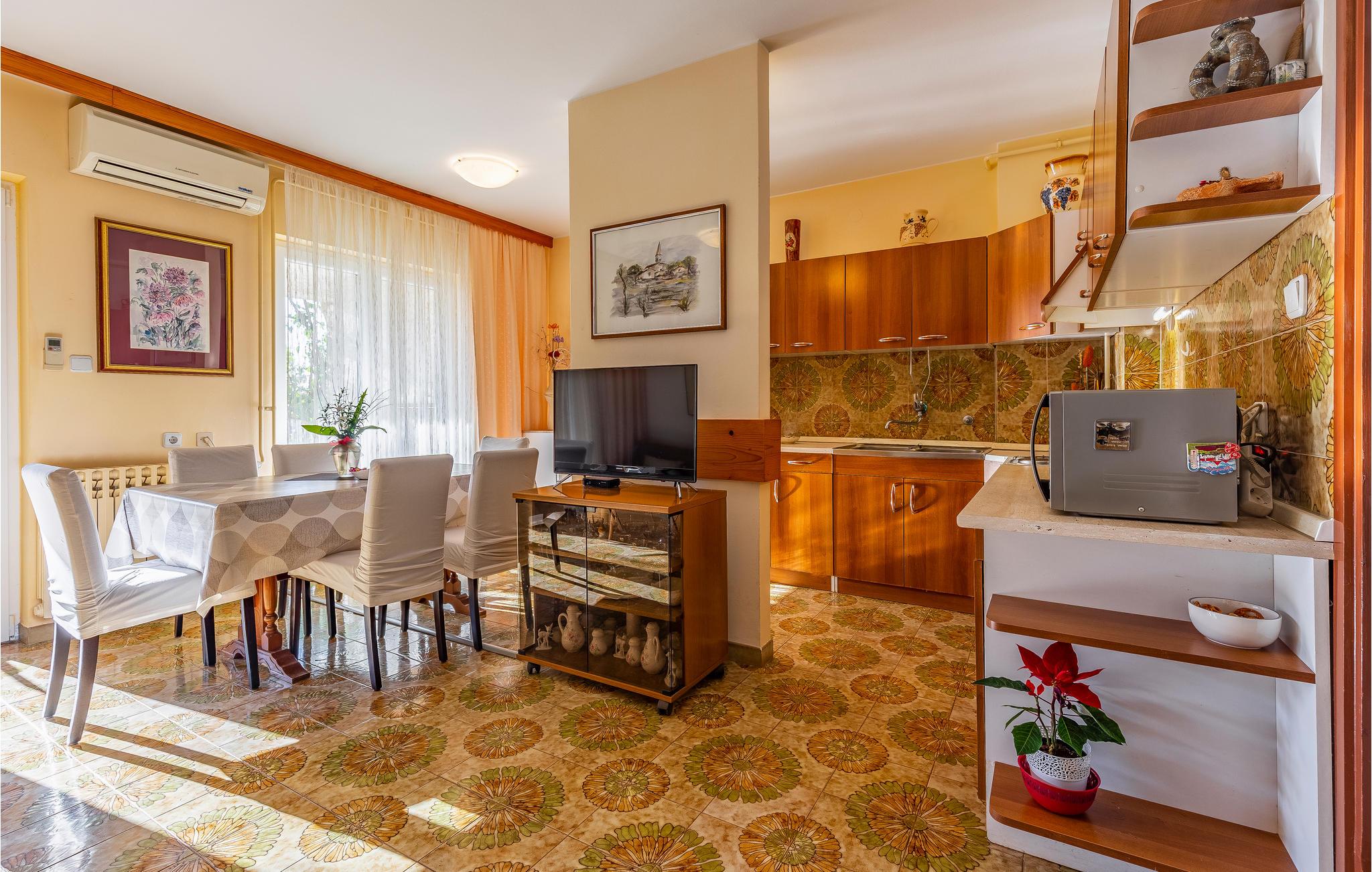 Gå til havet og nyd det klare vand på stenstranden. Besøg Pula og bliv fortryllet af denne smukke bys rige kulturarv, hvis attraktioner omfatter et romersk amfiteater, smukke strande og talrige hellige bygninger. Brug ferielejligheden med en god beliggenhed som udgangspunkt for en ferie, I vil huske med glæde i lang tid.