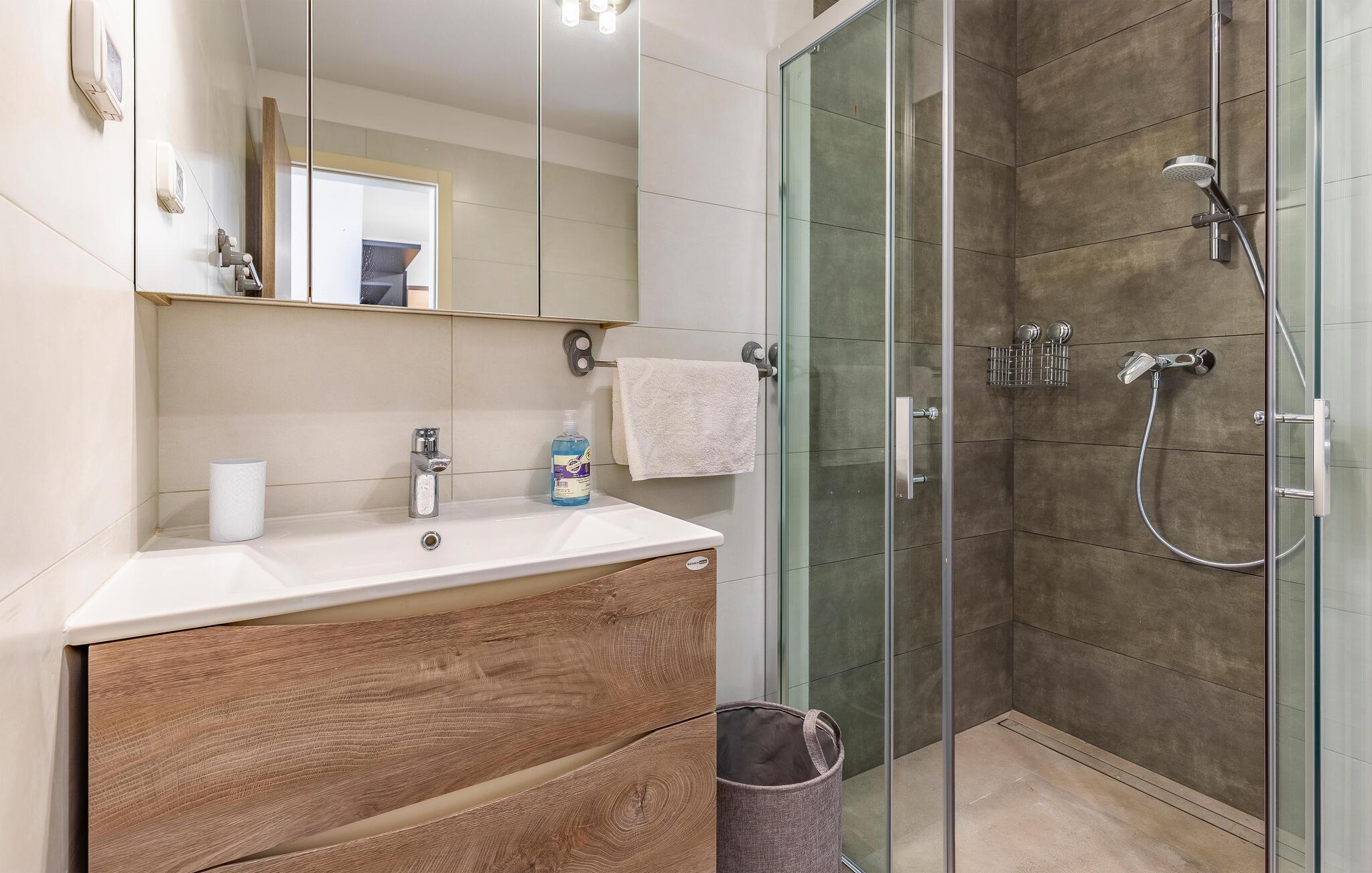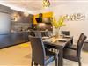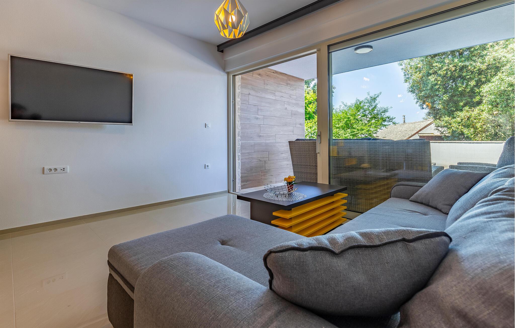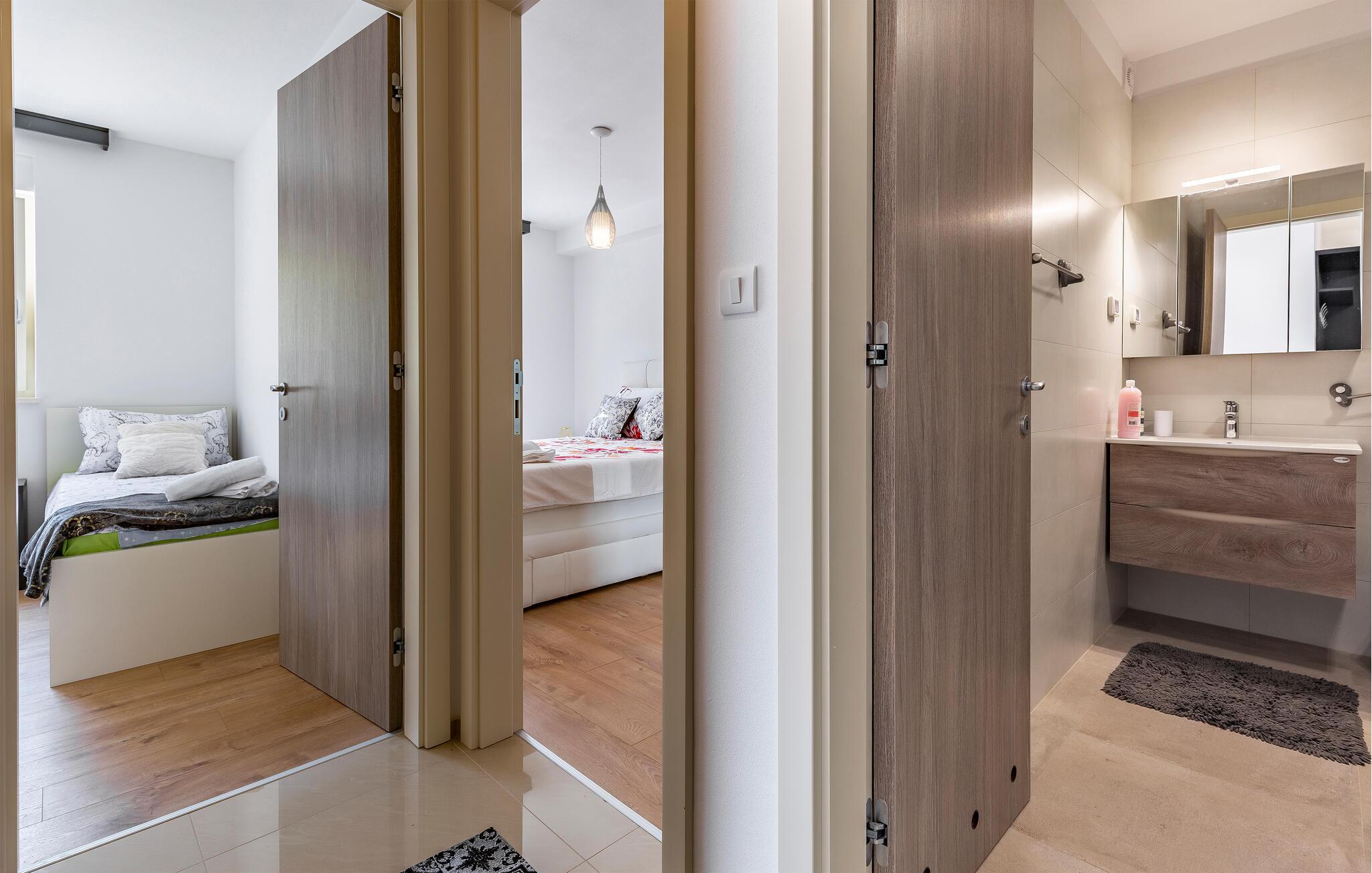 Nyd en behagelig ferie i denne moderne lejlighed med havudsigt. Denne rummelige og stilfuldt møblerede lejlighed ligger kun få skridt fra sandstranden og tilbyder rigelig plads til en større familie eller en gruppe venner, der kan slappe af på to etager. Tilbered kulinariske lækkerier og snak over dejlige måltider ved det indbydende spisebord. Efter en lang dag kan I hygge jer på sofaen til en filmaften. Om morgenen kan I servere jer en lækker morgenmad på terrassen og glæde jer til en god samtale over et glas vin udenfor. Udforsk Pulas gamle bydel og beundr det imponerende romerske amfiteater og de historiske templer. Oplev skjulte bugter og små øer på en bådtur og vandr gennem Kamenjak naturpark, hvor imponerende klippelandskaber og afsidesliggende strande venter på jer. Slap af på strandene i Pjescana Uvala eller nyd vandsport såsom stand-up paddleboarding, kajaksejlads og dykning. Om aftenen inviterer Pulas havnepromenade og små kystrestauranter jer til en afslappende afslutning på dagen med frisk fisk og skaldyr.