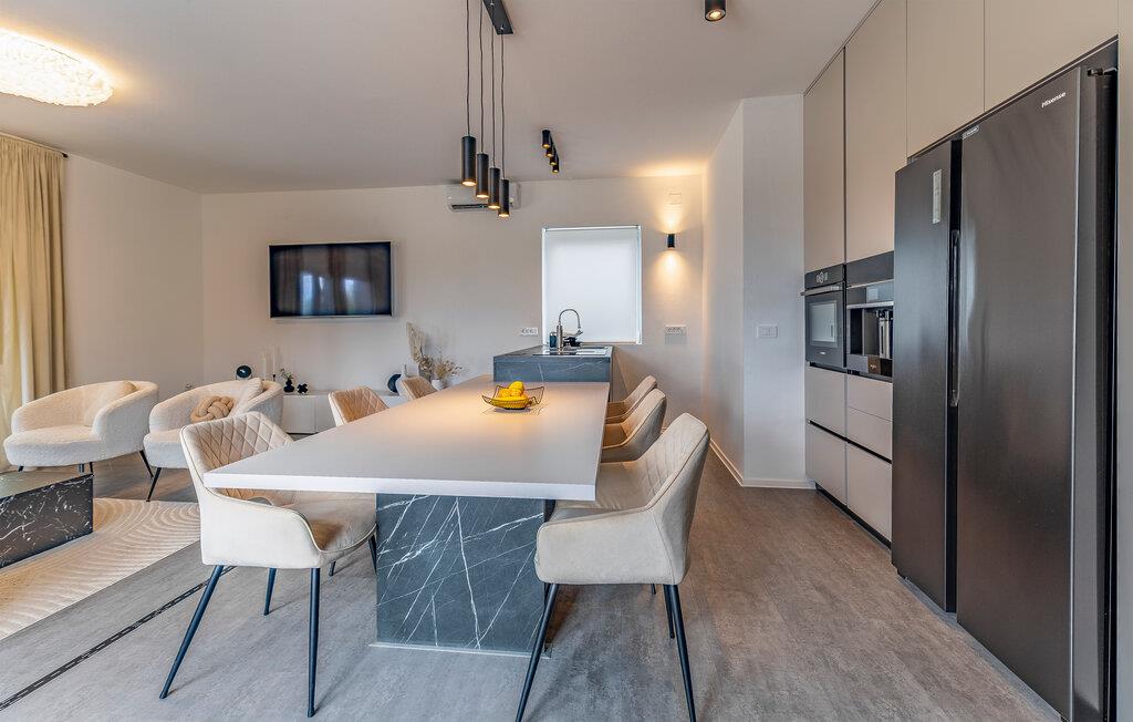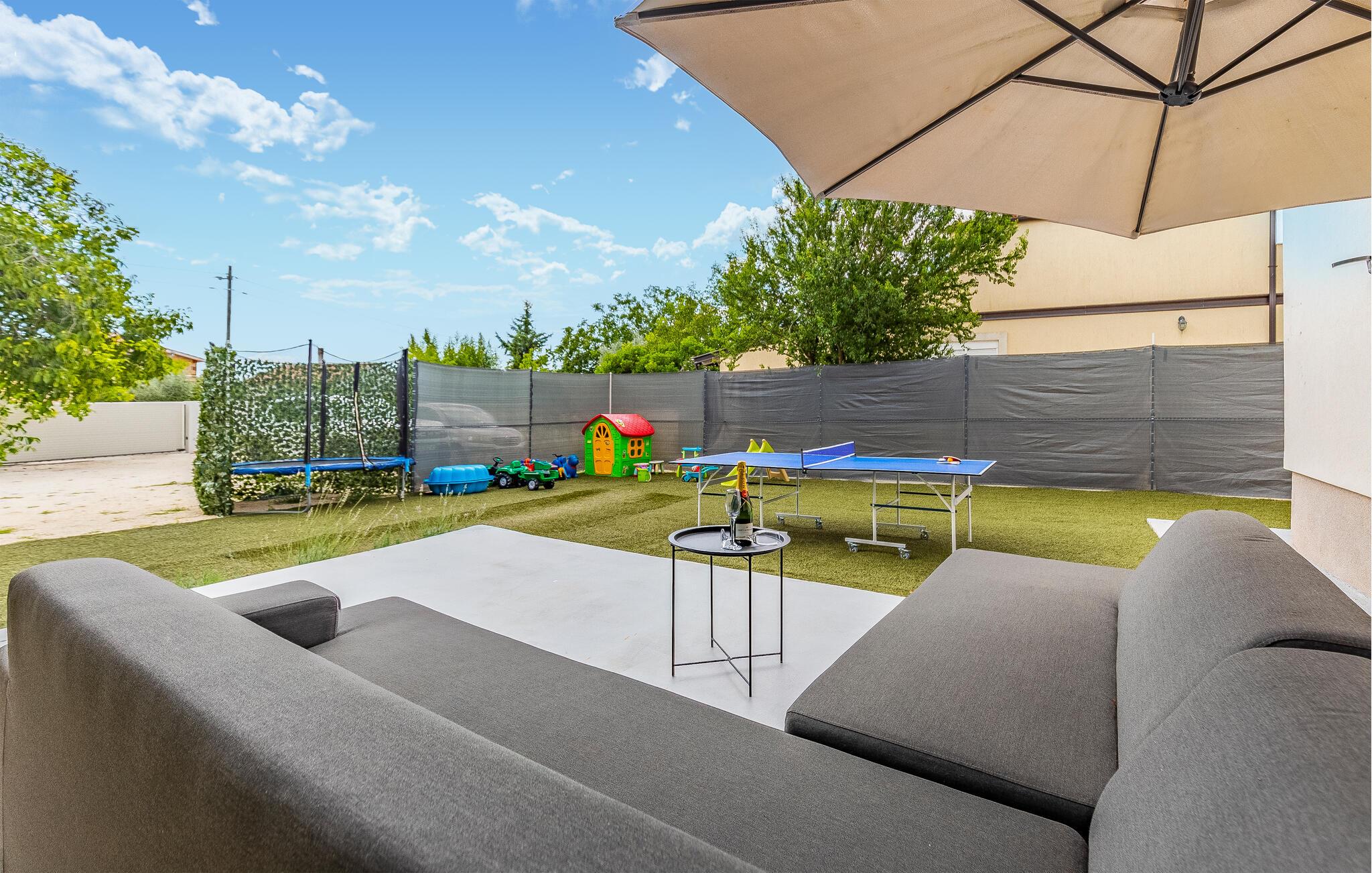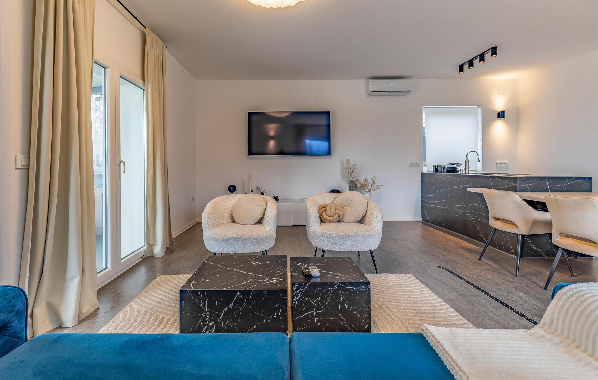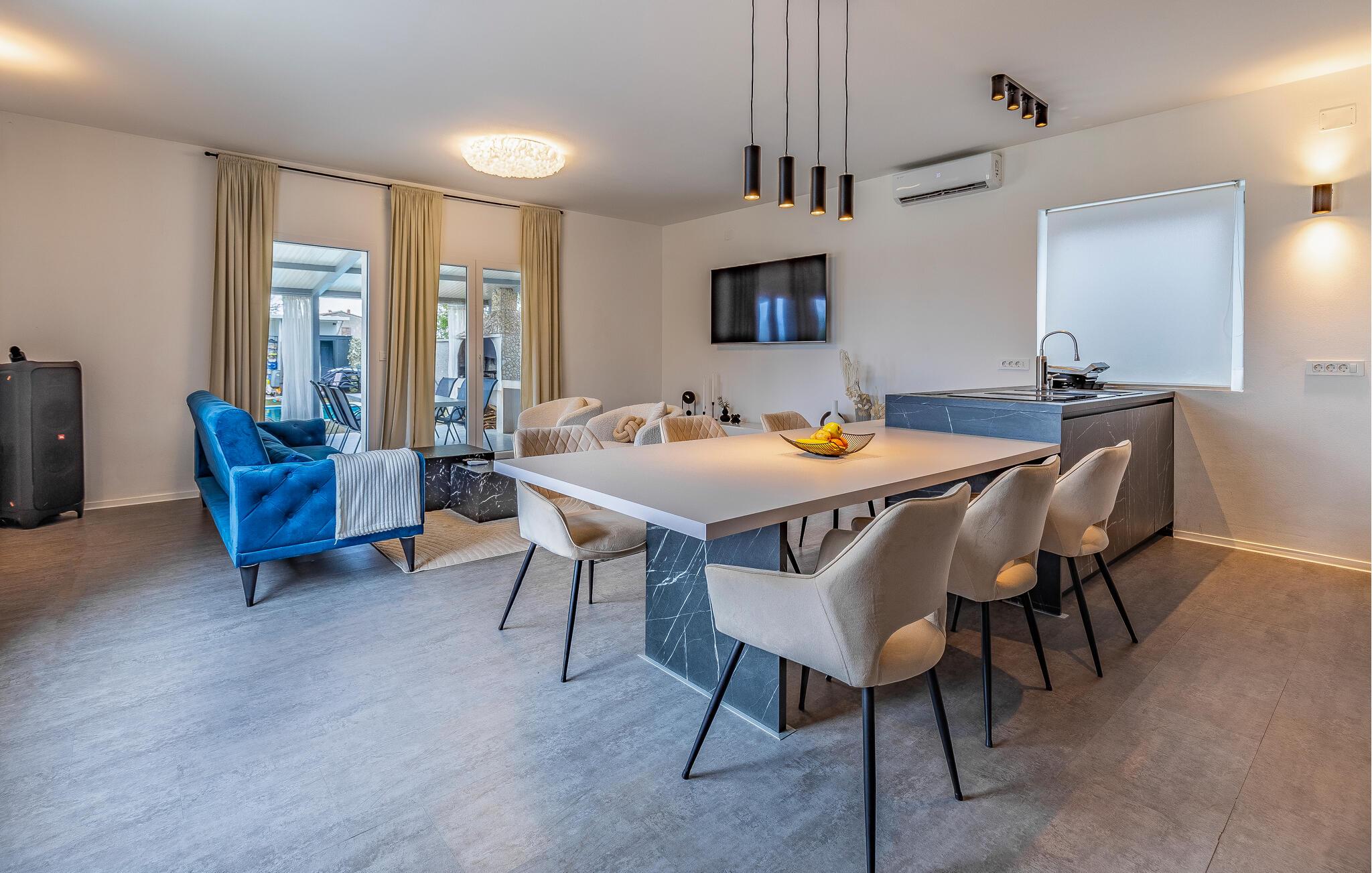 Kom ind og glæd jer over den elegante stemning i dette børnevenlige feriehus. Tryl kroatiske specialiteter frem i kvalitetskøkkenet, og tag plads ved det stilfuldt oplyste spisebord. Find jer godt til rette i sofaen om aftenen, stream en spændende serie, eller afhold en sjov spilleaften.