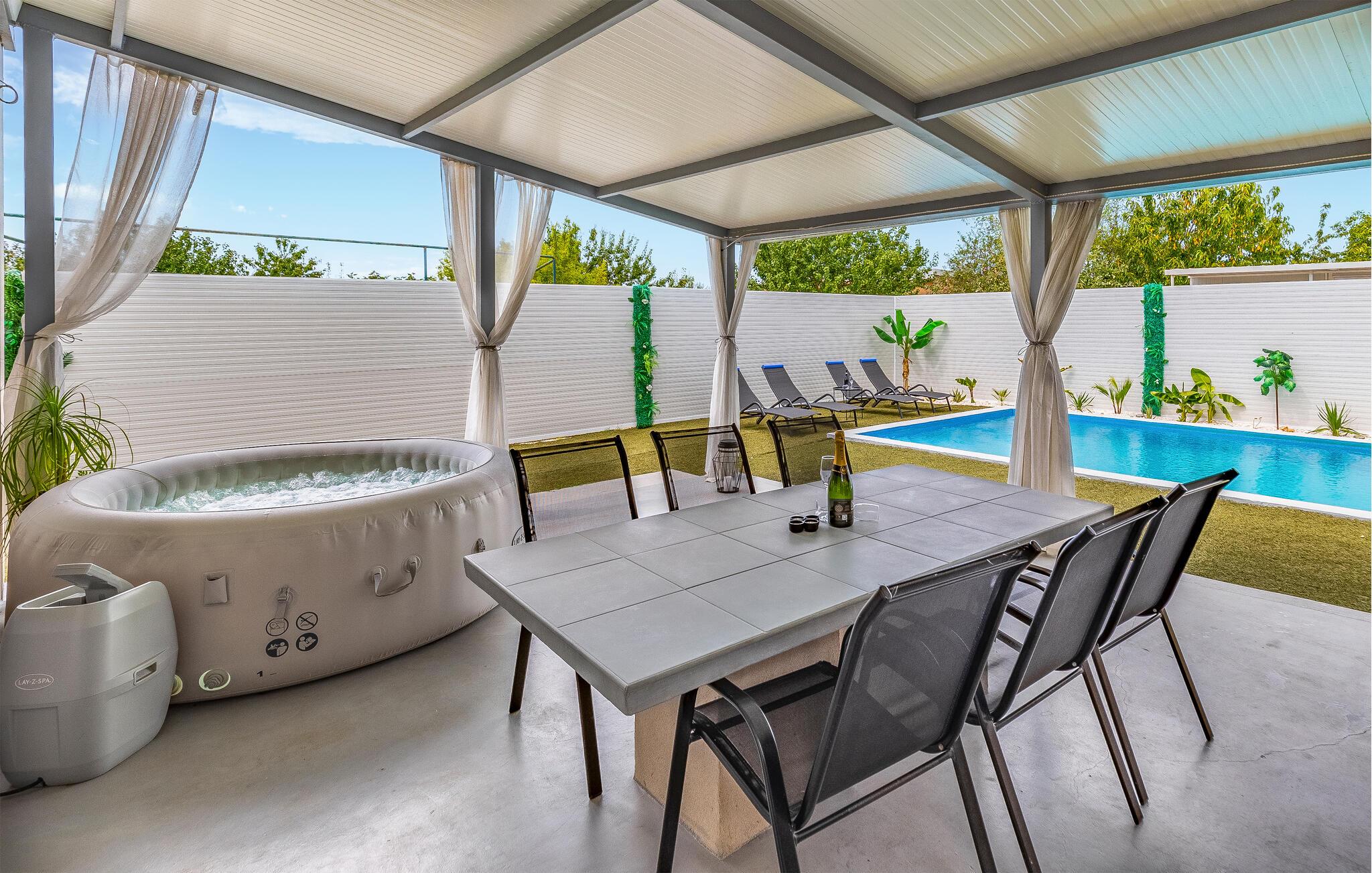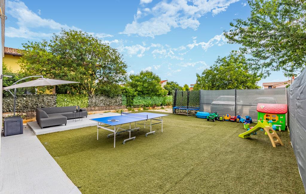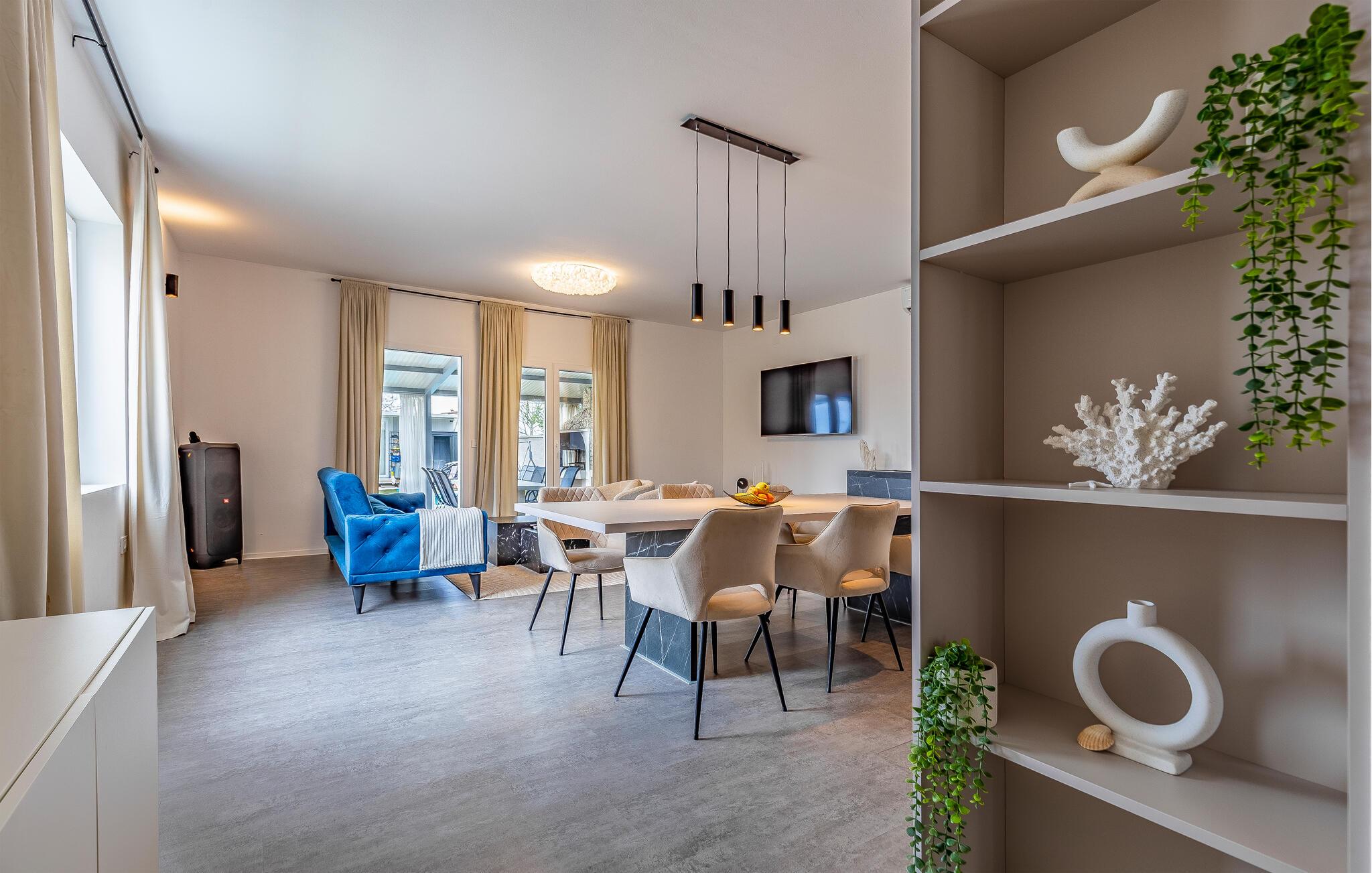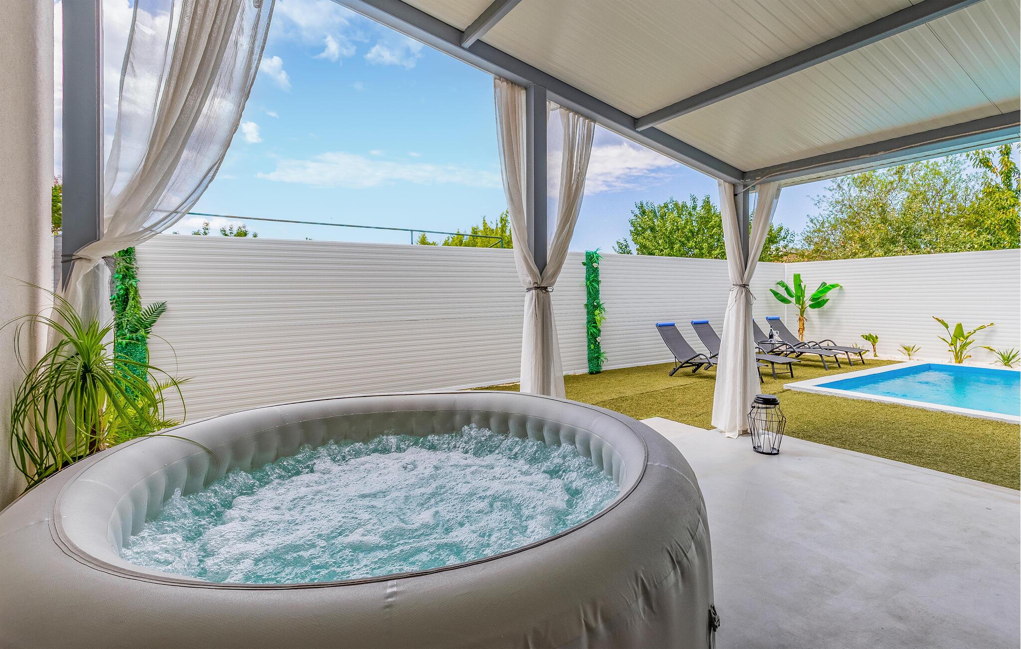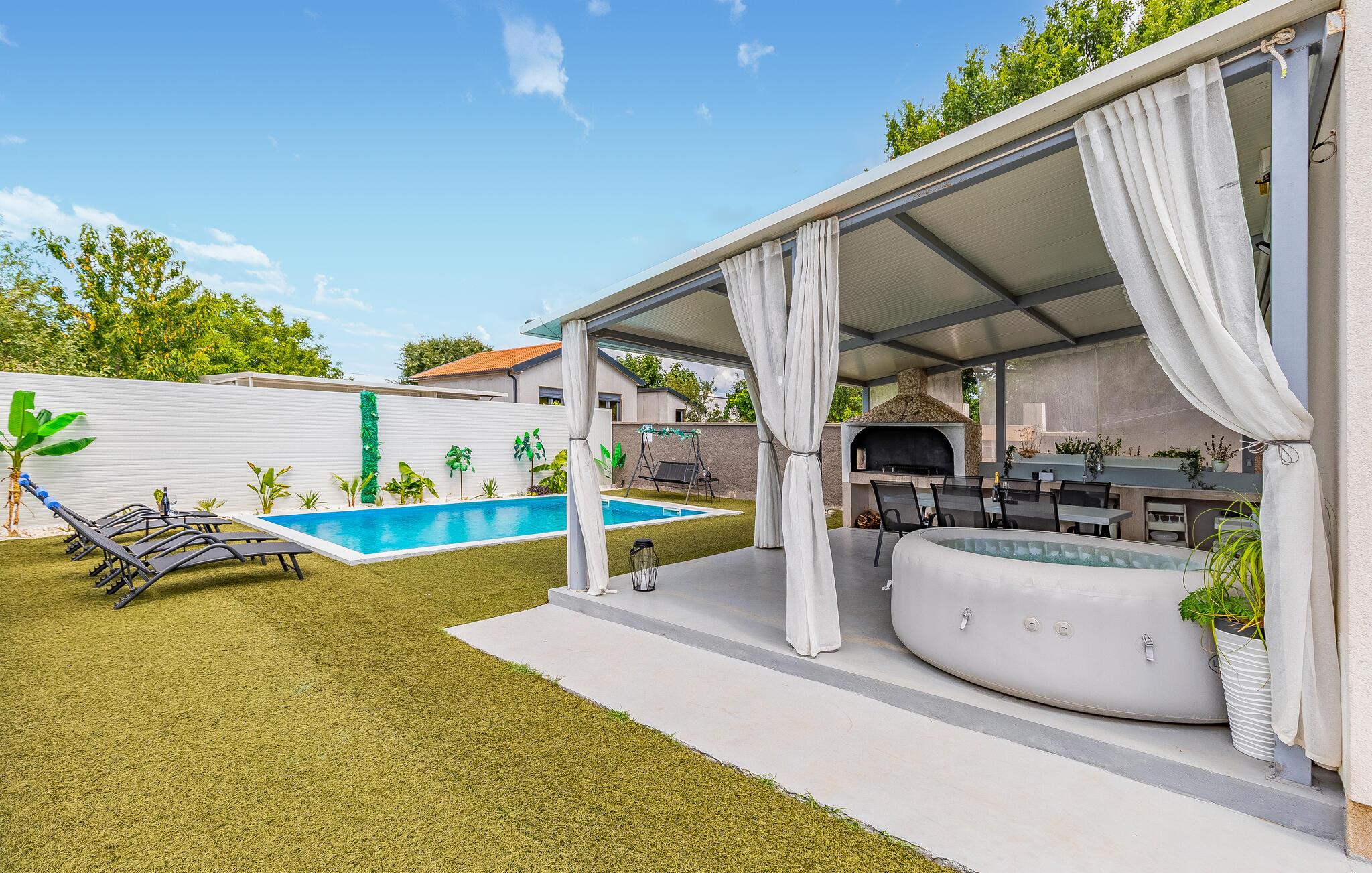 Kom ind og glæd jer over den elegante stemning i dette børnevenlige feriehus. Tryl kroatiske specialiteter frem i kvalitetskøkkenet, og tag plads ved det stilfuldt oplyste spisebord. Find jer godt til rette i sofaen om aftenen, stream en spændende serie, eller afhold en sjov spilleaften.
