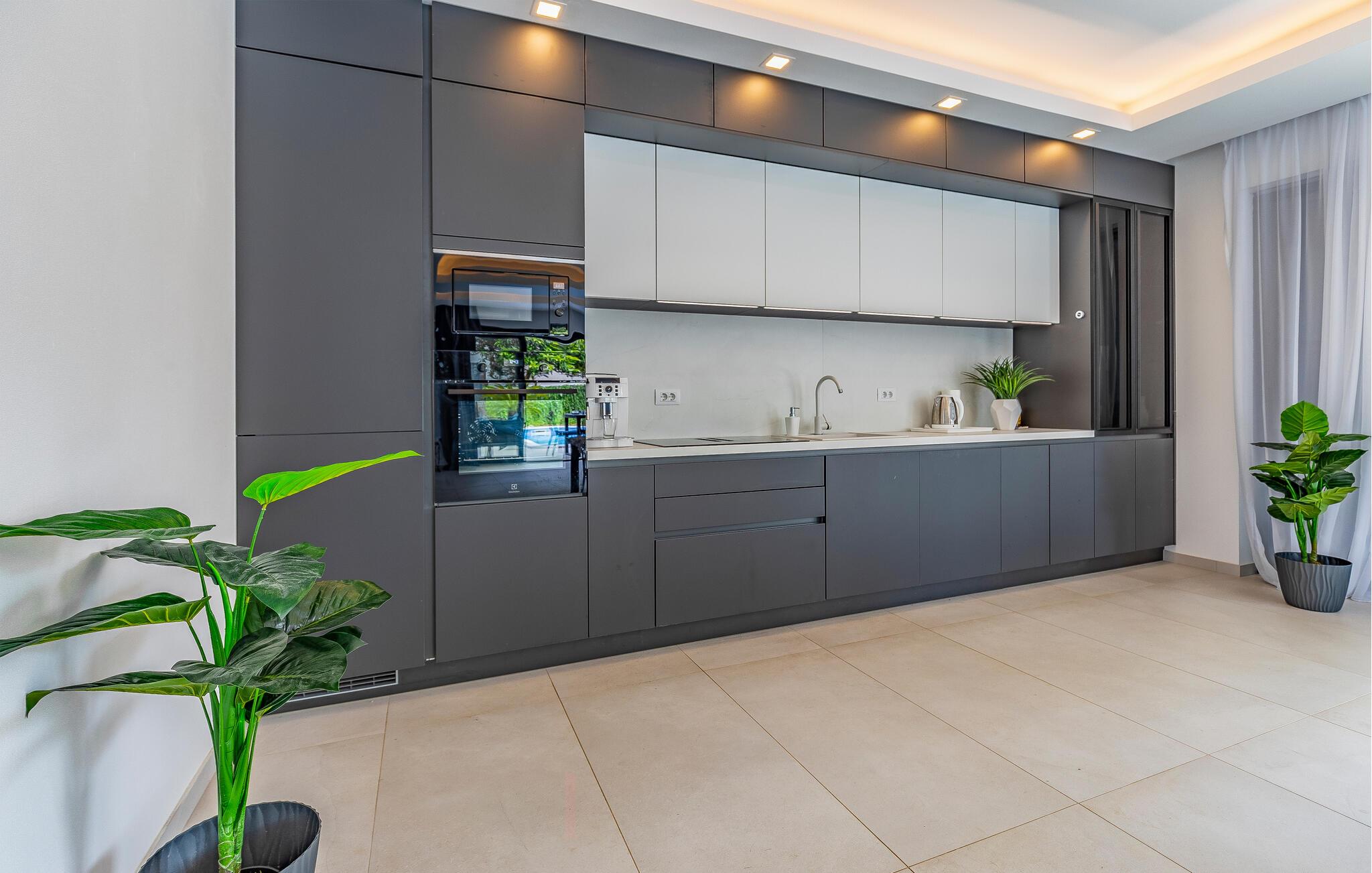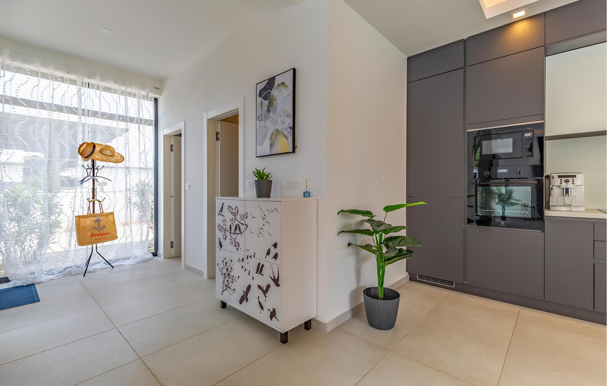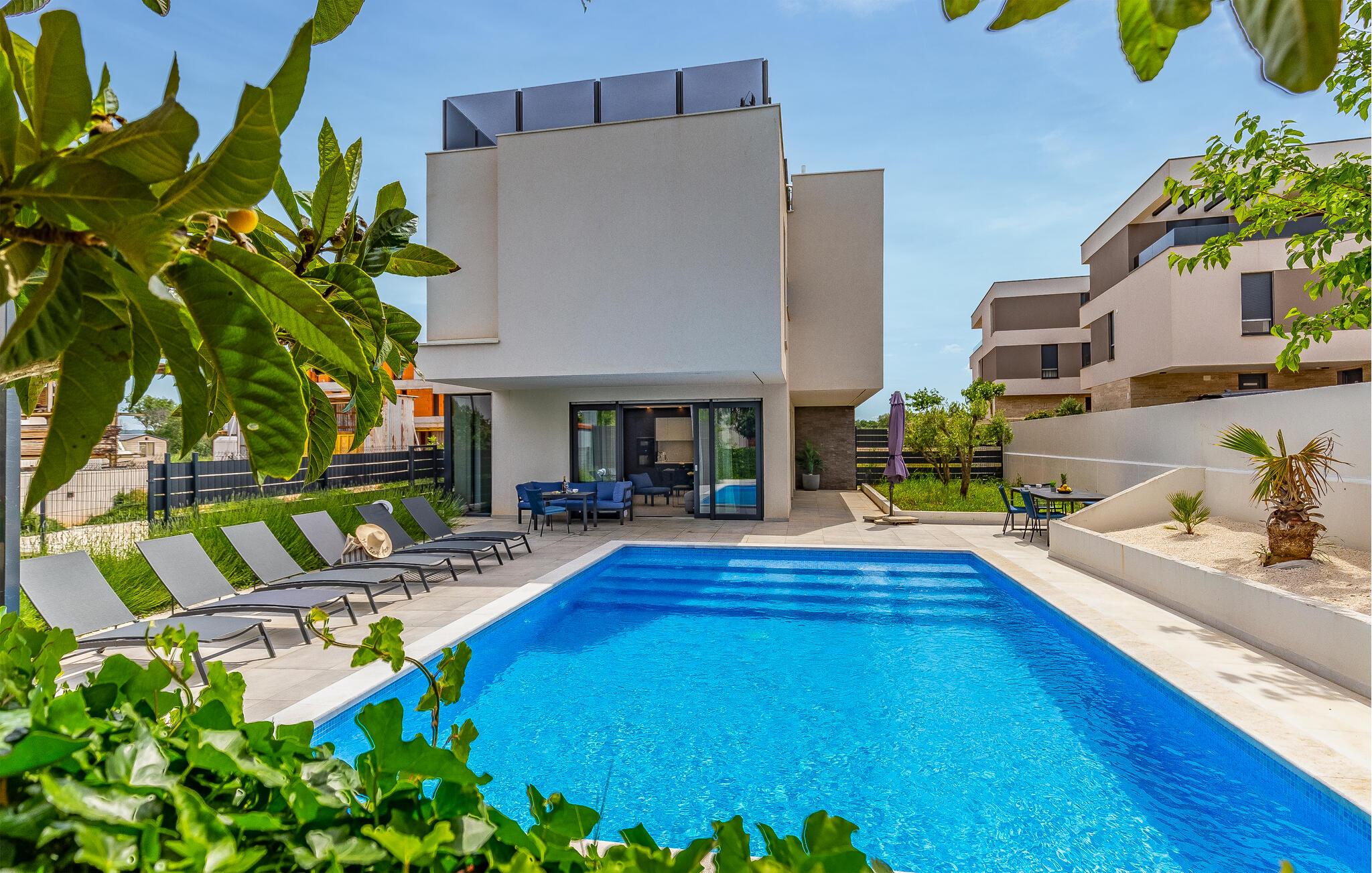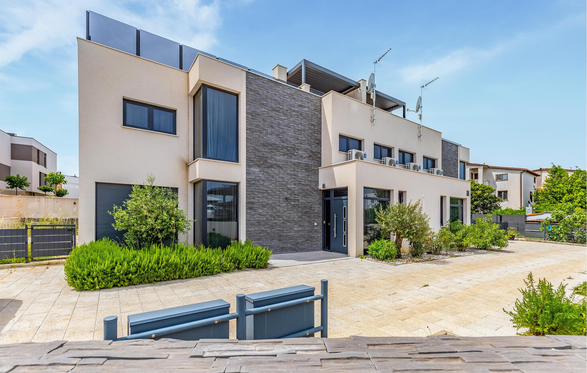 Velkommen til dette flotte og smagfulde feriehus, ikke langt fra Pulas centrum. Gør det til jeres hjem og tilbring en afstressende ferie i en bolig med høj komfort og interiør af høj kvalitet. Samspillet mellem lyse og mørke elementer skaber en fantastisk boligoplevelse, der gør det nemt for jer at slappe af. I bestemmer selv, om I vil bade i poolen eller solbade på tagterrassen.