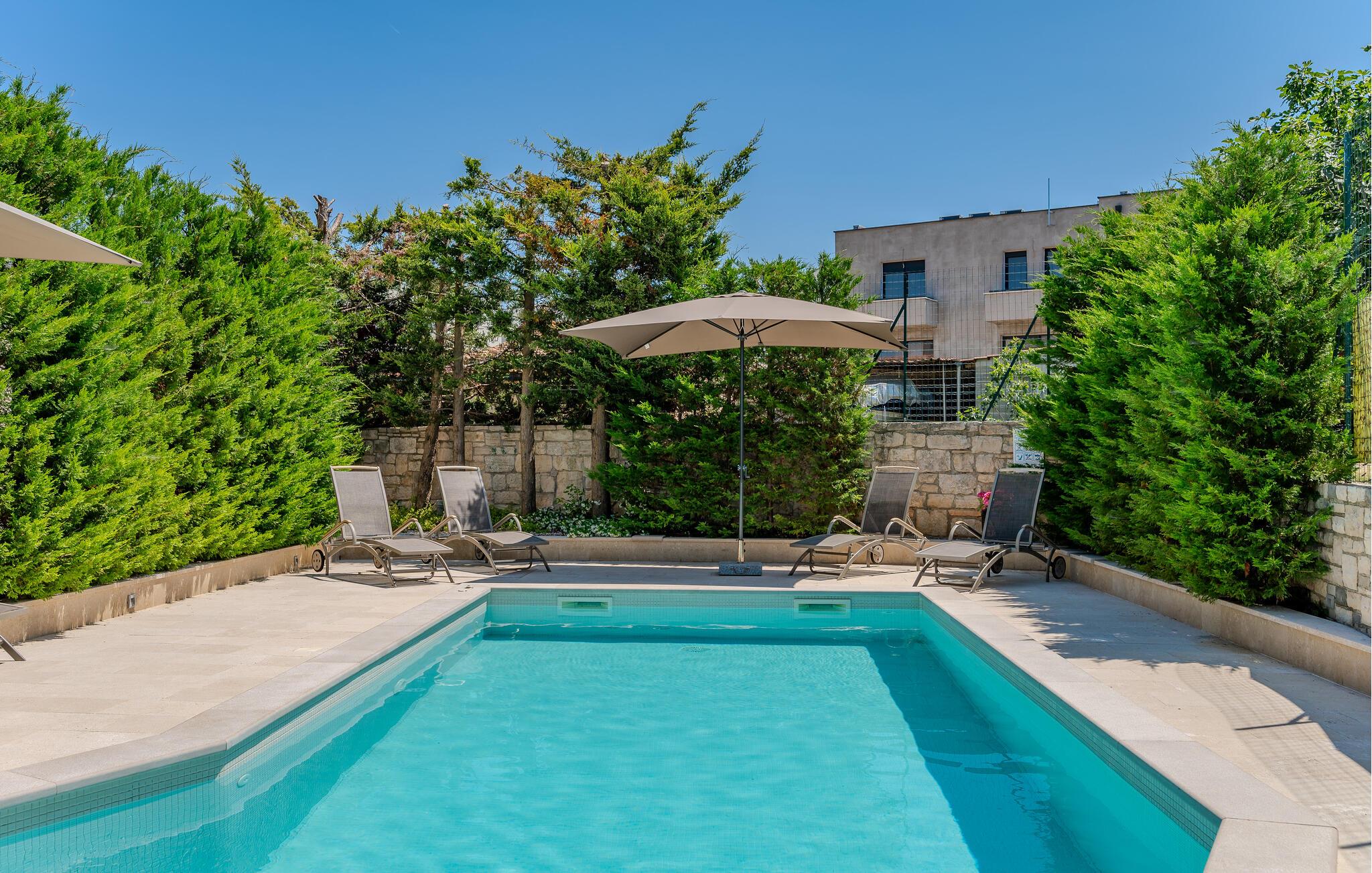 Nyd en solrig ferie med familien i denne moderne ferielejlighed med adgang til pool.