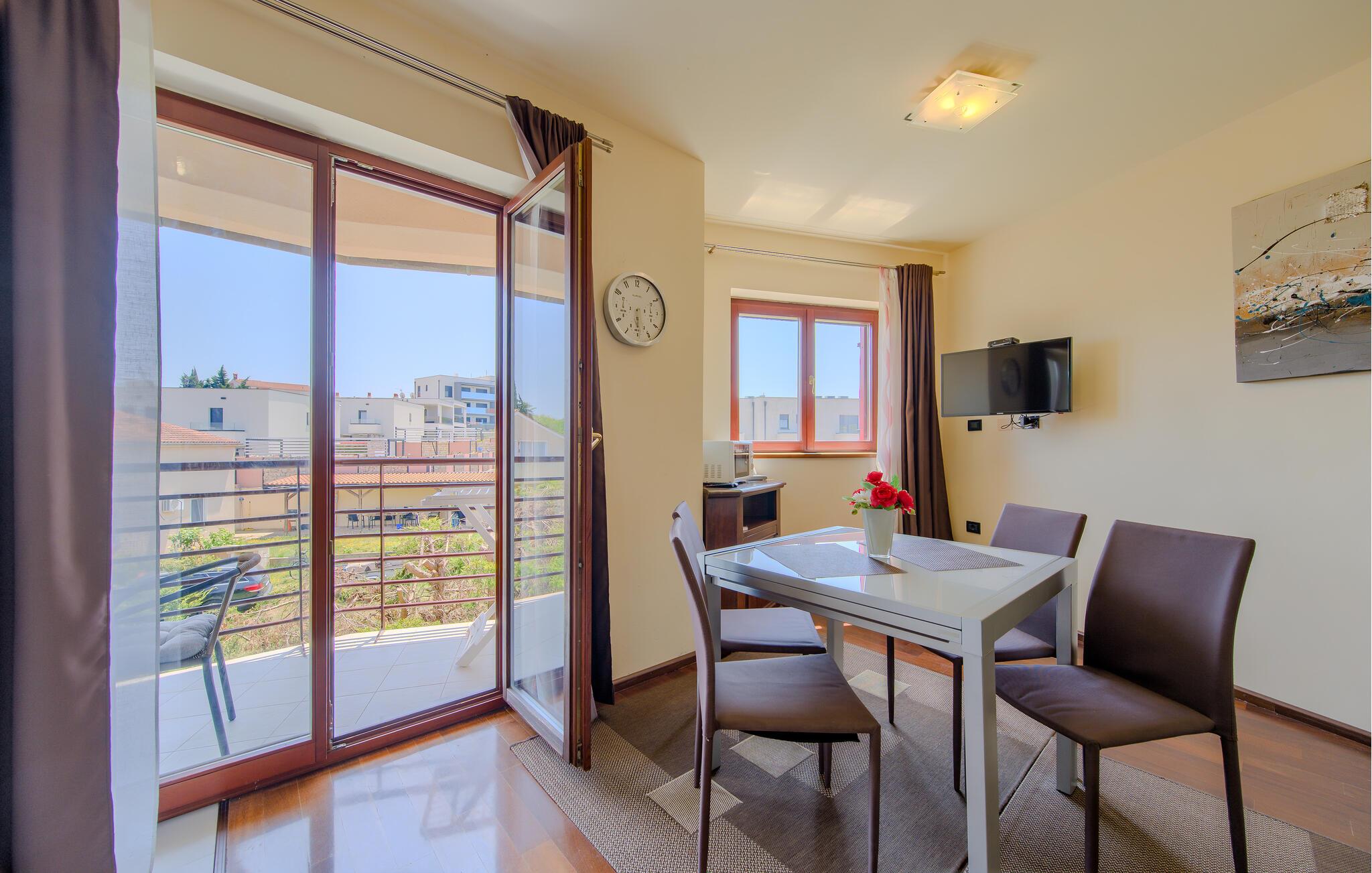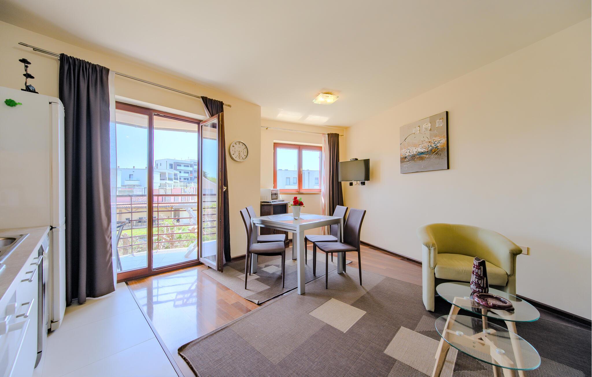 Denne lyse og indbydende lejlighed giver jer et hyggeligt hjem, mens I kombinerer en strandferie med charmerende udflugter til Pula eller det maleriske Istriske bagland. Fremtryl kroatiske retter i det åbne køkken, planlæg jeres aktiviteter ved spisebordet, og afslut dagen med et brætspil eller en fængslende feriebog.