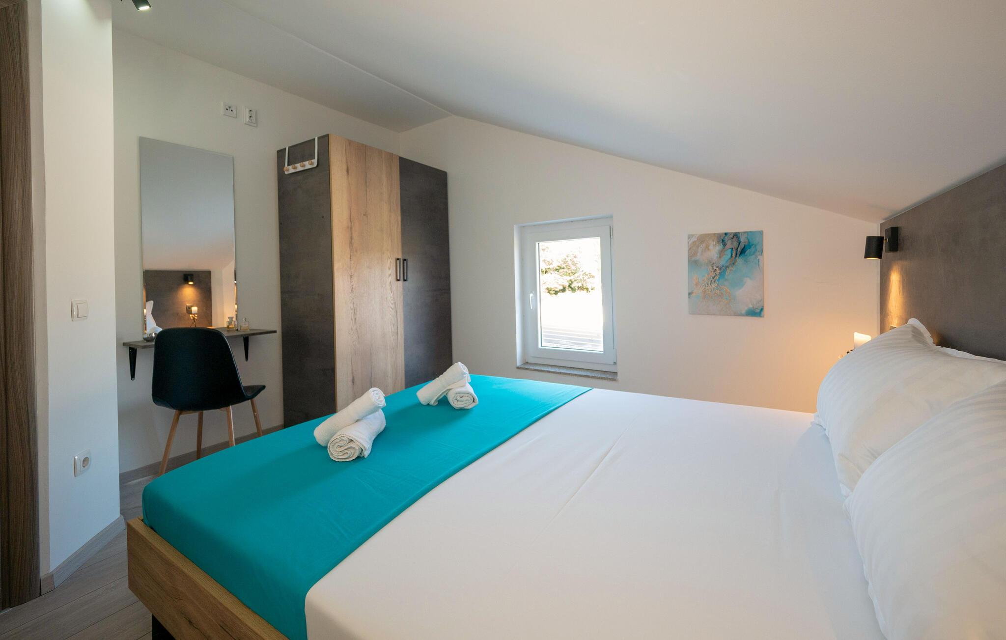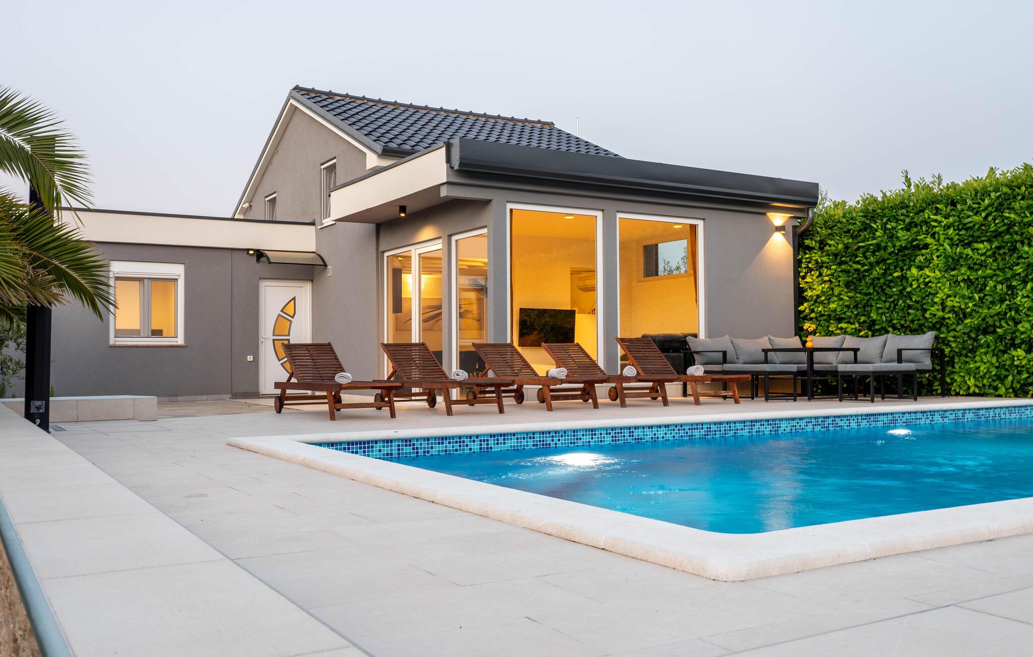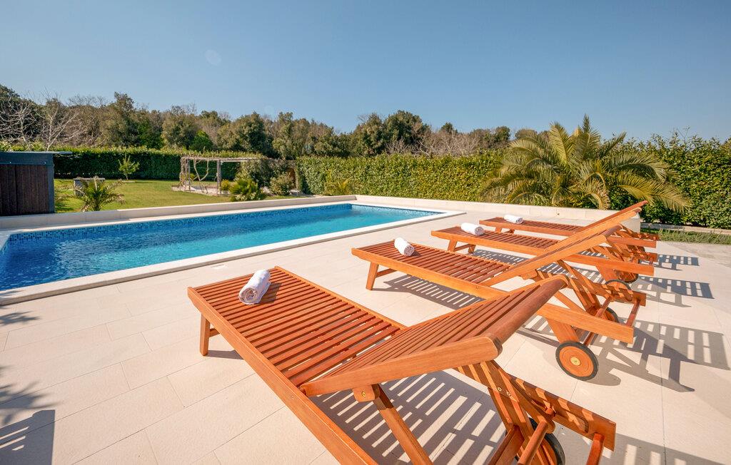 Tilbring en dejlig ferie i Istrien i dette feriehus. I Vinkuran, kun en kort køretur fra Pula, venter denne smukke villa på jer til en afslappende pause. Nyd dagen ved den rummelige pool, omgivet af komfortable liggestole, og slap af i de rolige haver. For børn byder den velholdte have også på en legeplads med gynger, en rutsjebane og et legehus. Voksne kan more sig ved det udendørs bordtennisbord. Den lyse og stilfulde stue lægger op til at læne jer tilbage efter en begivenhedsrig dag. De store vinduespartier giver jer en vidunderlig udsigt over poolen og terrassen. Og I kan også bruge den overdækkede grillplads i haven og arrangere hyggelige grillaftener udenfor. Omgivelserne i Vinkuran har mange attraktioner i vente for dig. Besøg den historiske by Pula med dets berømte romerske amfiteater og fordyb jer i regionens gamle historie. Tilbring solrige dage på regionens smukke strande eller udforsk områdets naturskønne vandrestier.