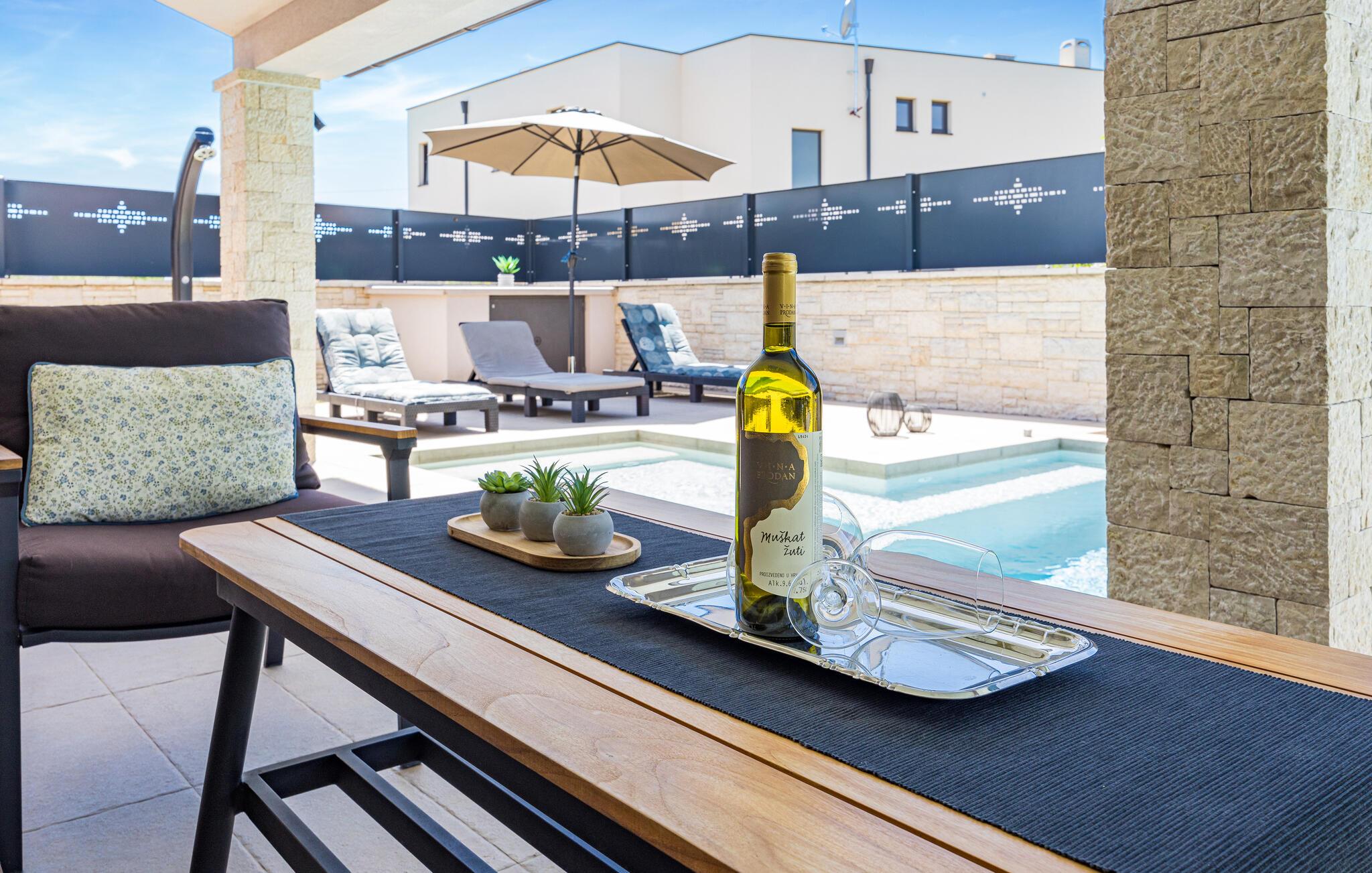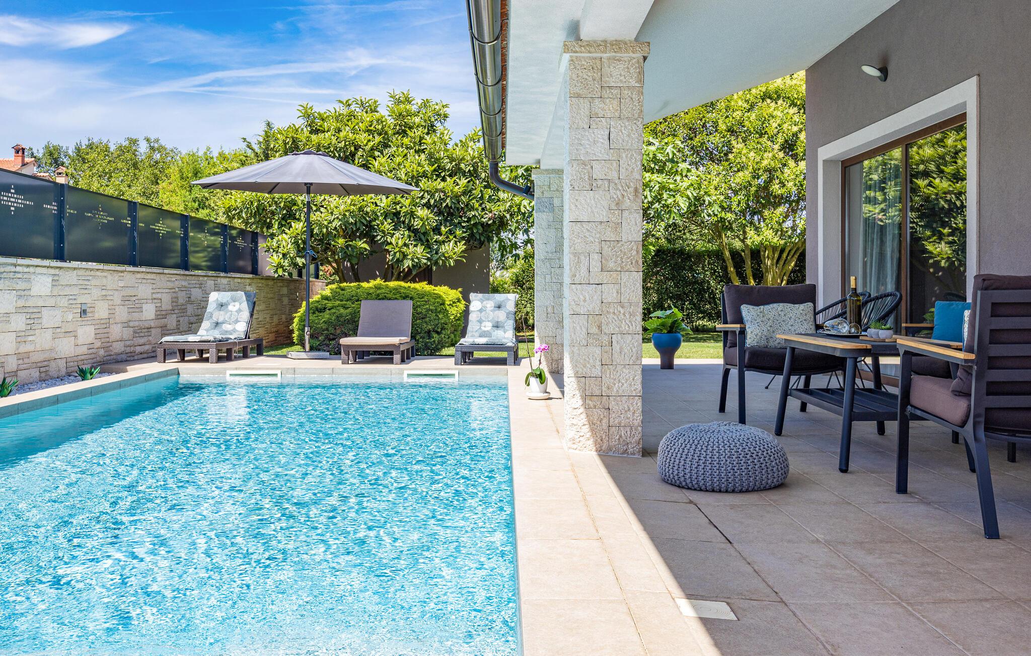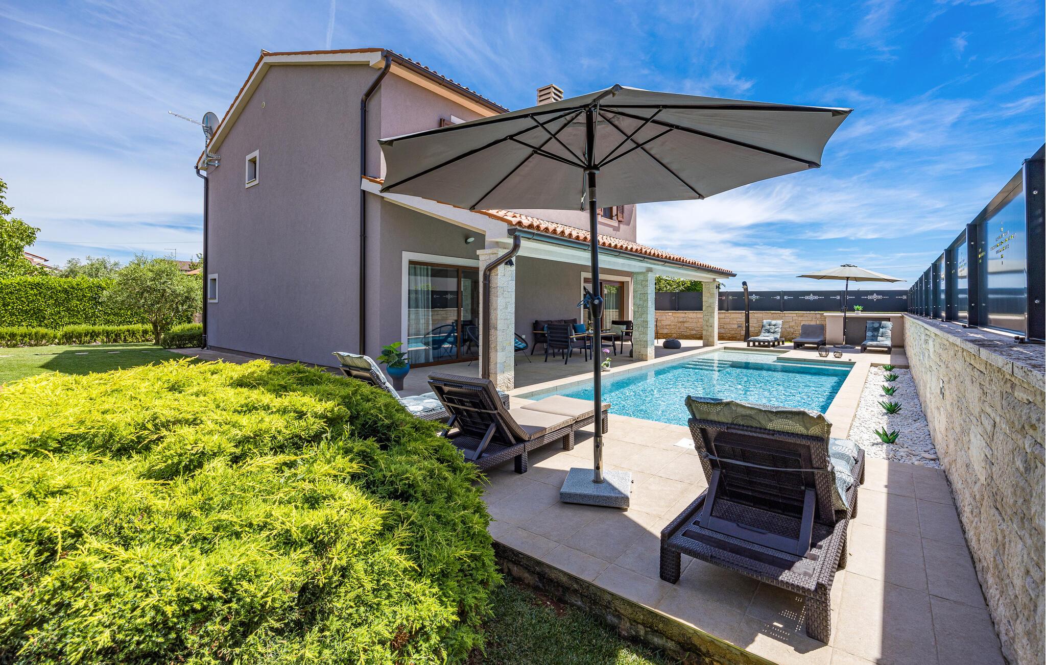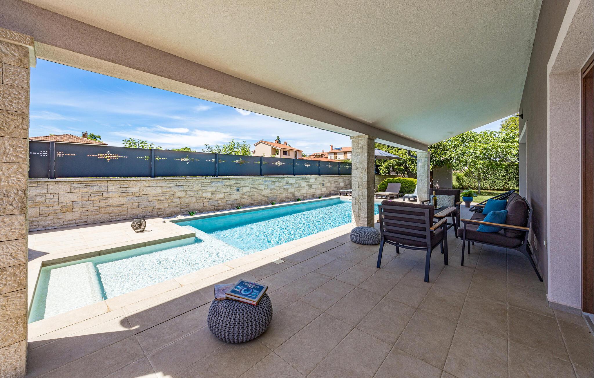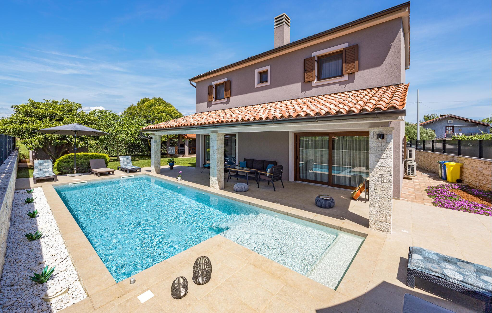 Villa Roma ligger på den sydlige del af halvøen Istrien og tilbyder komfortabel indkvartering til 6 gæster. Villaen består af 3 velindrettede soveværelser, hver med aircondition og med eget badeværelse, så alle gæster har maksimal komfort under deres ophold. Alle soveværelser er placeret på øverste etage, mens stueetagen er, hvor alle kan samles i den rummelige stue med pejs og SAT TV eller tilberede måltider i køkkenet, der er udstyret med alt, hvad du måtte have brug for under dit ophold. Der er også en kulgrill og en hyggelig overdækket spiseplads, hvis du foretrækker at spise udendørs. Den indbydende pool ligger kun få skridt fra stuen og byder på forfriskninger på ethvert tidspunkt af dagen. Den nærmeste butik og kaffested er kun en kort gåtur væk, i centrum af landsbyen. Hvis du ønsker at tilbringe en dag på stranden, er der talrige muligheder i det omkringliggende, da den sydlige del af Istrien har en meget forskelligartet kystlinje. Villaen har aircondition, kæledyrsvenlig og har 2 private parkeringspladser og en helt lukket have - et godt valg til en afslappende ferie. Villa Roma er beliggende i en lille landsby Jadreski kun ca. 7 km væk fra Pula. Pula er den største by på halvøen Istrien såvel som et af de vigtigste turistmæssige hotspots med mange ting at se og udforske. Pula blev bygget af romerne i 46 f.Kr. Selvom det er som et friluftsmuseum, er det største monument, du ikke bør gå glip af at besøge, det berømte amfiteater i byens centrum, bygget i det 1. århundrede. Amfiteatret er stadig hjemsted for mange begivenheder fra koncerter, filmvisninger til sportssammenkomster. I den gamle bykerne kan du finde Forum med Augusttemplet. Her kan du også besøge det historiske museum i Istrien og det arkæologiske museum i Istrien. I det omkringliggende område kan du udforske smukke små istriske byer, naturlige strande eller tage på vandreture, cykle og dykke. Mens du er her, kan du prøve nogle lækre istriske specialiteter i en af de berømte restauranter.