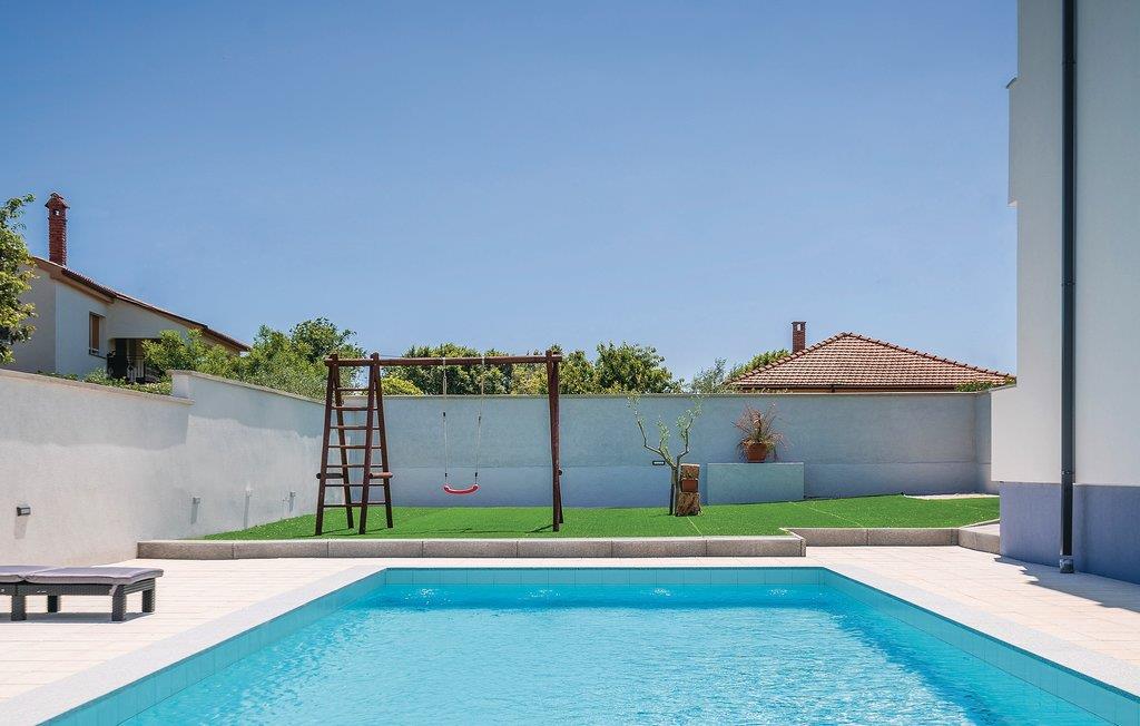 Et harmonisk og moderne feriehus der ligger i den lille istriske by Loborika, ikke langt fra Pula. Bygningen er meget stilfuld og ideel til en større familie, eller en gruppe af venner, der gerne vil holde ferie sammen. Indendørs er huset godt indrettet, og tilbyder alt, hvad I skal bruge til en dejlig ferie. På varme sommerdage kan I boltre jer i den store udendørs swimmingpool, og drikke et godt glas vin på den overdækkede terrasse mens I laver forskellige lækkerier på grillen. Den indhegnede have muliggør, at børnene frit kan rende rundt og lege. I området har I mulighed for ridning, at spille tennis og forskellige former for vandsport. I bil kommer I hurtigt til flere forskellige strande. I har valget mellem dejlige sten- og grusstrande, klippestrande og betonplateau strande.