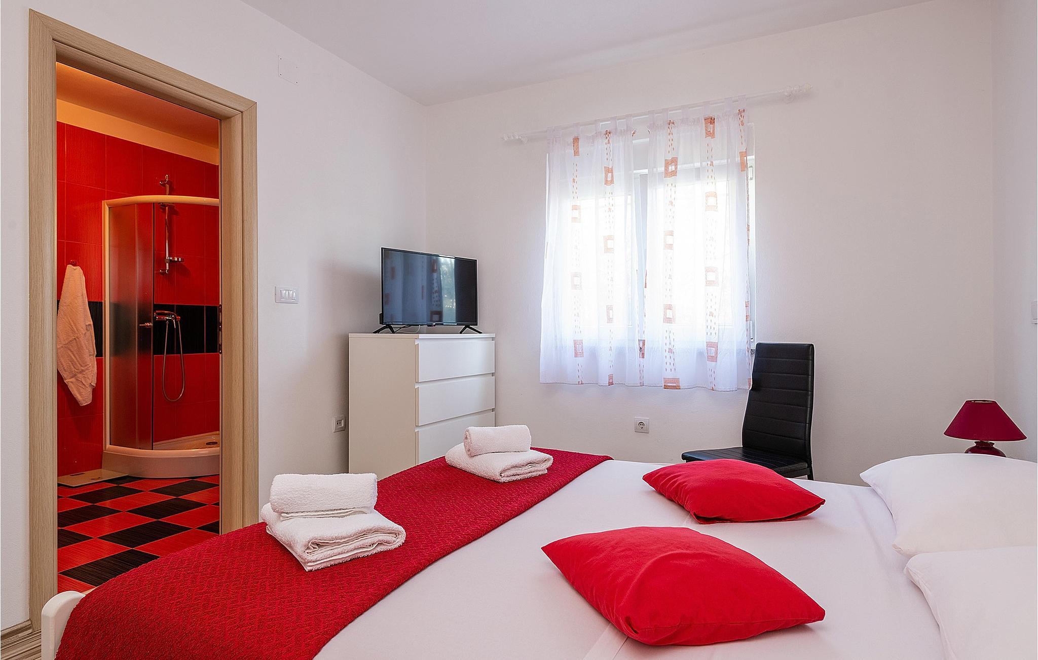 Hold en helt vidunderlig ferie i dette feriehus. Det ligger i en velplejet have i rolige omgivelser i Marcana og er et perfekt feriedomicil for alle, der gerne vil slappe af langt væk fra den hektiske hverdag i rolige naturomgivelser. Det afslappet indrettede indre består af en stue i åben kombination med køkken og spisehjørne og to soveværelser med hver sit badeværelse. Den overdækkede terrasse er husets ekstra rum, hvor I kan sidde og hygge jer, mens maden bliver færdig på grillen. Besøg egnens fantastiske strande, fx i byen Duga Uvala og nyd at kunne bade i lunt og krystalklart havvand – måske prøv at snorkle og se hvad der gemmer sig på havbunden.