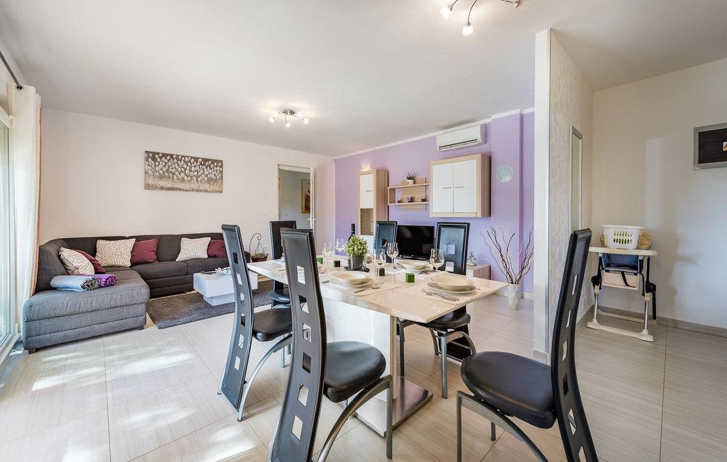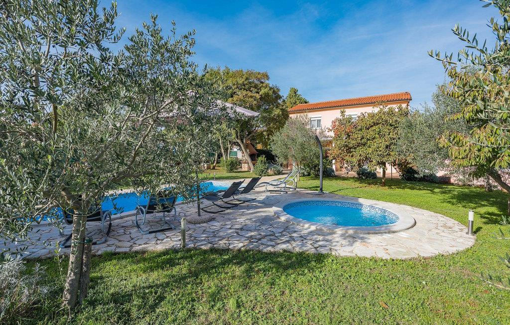 Den blide duft af lavendel er kendt for sine gavnlige virkninger. Det er ikke kun beroligende og afslappende, men skaber også en særlig atmosfære af lethed. Nyd alt dette i Villa Lavanda og oplev en middelhavsafslappende sommer. Denne nybyggede villa er omgivet af natur og beliggende nær bugten Duga Uvala, ikke langt fra de smukke strande og det krystalklare hav. I stueetagen er der en lys og åben planløsning og spisestue med udgang til terrassen, hvor du kan nyde udsigten ind i det grønne i den smukke middelhavshave. Et badeværelse fuldender stueetagen. Trapper fører dig til første sal, hvor det andet badeværelse og tre soveværelser er placeret. Op til seks personer kan hvile der. En privat pool med separat bassin, som har en massagefunktion, sørger for afkøling på sommerdage. Du kan slappe af på liggestole i oliventræernes naturlige skygge. Børn vil helt sikkert nyde den store gynge, men voksne vil også finde Hollywood-gyngen på terrassen fornøjelig. Kan du forestille dig at slappe af der med en bog og en god drink? Villaen er beliggende i landsbyen Pavicini lige uden for Duga Uvala. Duga Uvala er en beskyttet bugt på østkysten af Istrien mellem de større byer Labin og Pula. Dette område af Istrien er generelt meget uudviklet og giver en lang strækning af uspoleret kystlinje. Inde i landet fra kysten er dejlige landlige landsbyer. Lokale veje og gårdstier fører ned til kysten og dens mange bugter og vige på den fredelige Rasa-munding og Duga Uvala-bugten. I selve Duga Uvala-bugten er der et hotel, strandcaféer og et pizzeria. Hotelkomplekset omfatter et wellness-center, massage, aromaterapi og fitnesscenter. Der er sportsfaciliteter til rådighed samt natklubber og diskoteker. Den vigtigste by i området er Pula, men der er butikker og restauranter i flere af landsbyerne og små byer i denne region.