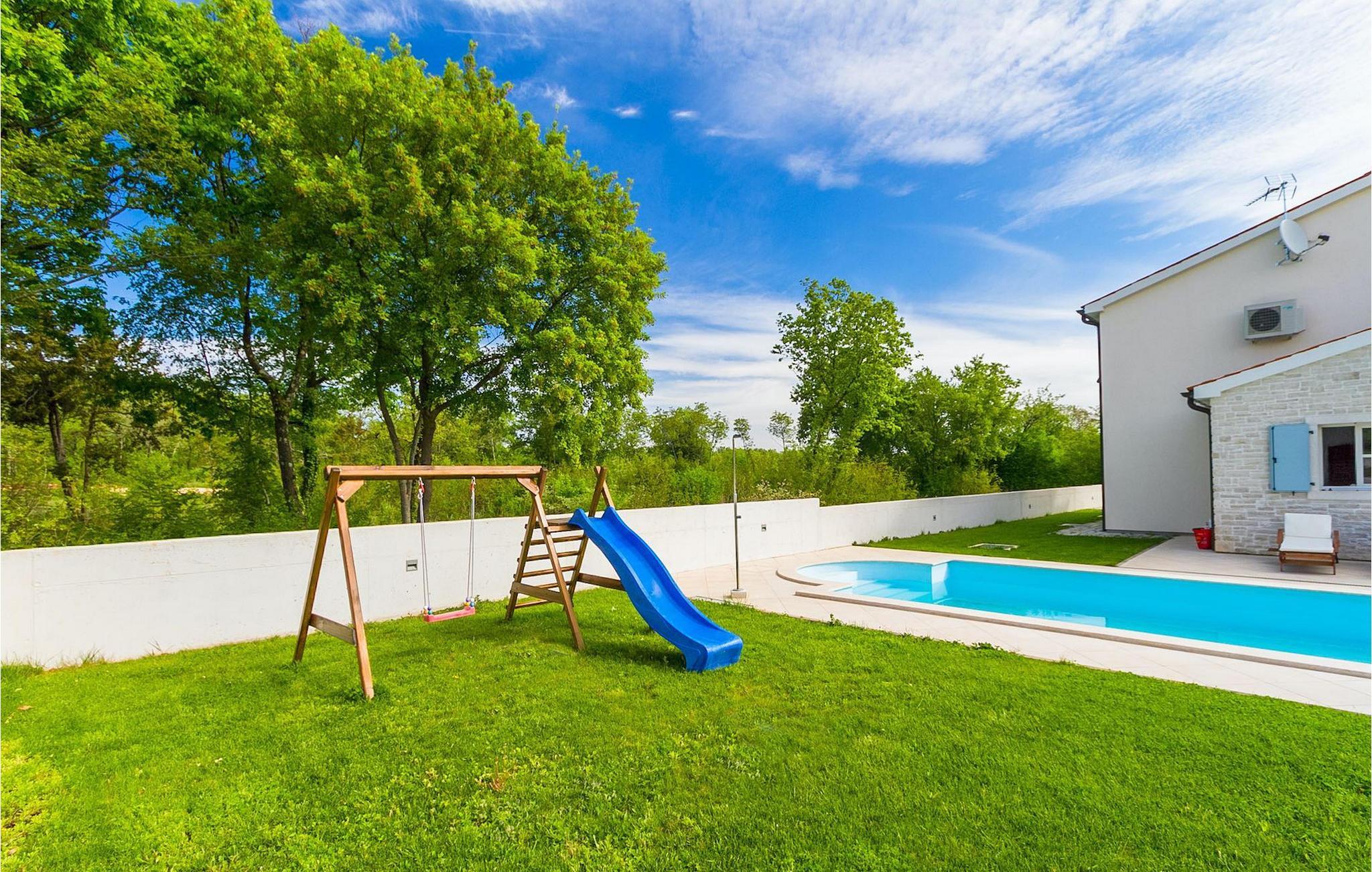 Villa Azura er en smuk villa bygget med høj standard og i traditionel stil. Interiøret er smukt dekoreret med sans for detaljer. Der er 3 soveværelser, en dobbeltseng og to tvillinger. Alle værelser har eget badeværelse. Villaen har fuldt aircondition og har bredbåndsadgang til trådløst internet. Udenfor er der en dejlig størrelse pool, kvalitets liggestole og udendørs spisning med en stenbygget grill. Villaen er fuldt muret og indhegnet med privat parkering. Så du er klar til en perfekt afslappende ferie. Huset ligger på bakketoppen over Rasa-kanalen, og der er et dusin af dejlige strande inden for 10 km. Tæt på villaen ligger en ranch med heste, hvor du og din familie kan tilbringe noget kvalitetstid og tage på rideture (han ejer vil give dig mere information om dette). Villa Azura ligger i Hreljici, en bygd i Marcana kommune. Det er den ideelle destination, hvis du leder efter en fredelig ferie, væk fra de overfyldte turist-hotspots. Området har 36 km uspoleret havkyst, og det er den mindst urbaniserede kystzone i Istrien, med krystalklart hav omgivet af frodige grønne områder. Marcana Riviera er et perfekt sted for en fredelig familieferie på landet, med talrige autentiske kulturelle monumenter af istrisk arkitektur og middelalderkirker. Hele området er omgivet af grønne bakker og blå bugter, hvoraf nogle kun er tilgængelige med båd. Du kan følge nogle af de istriske vin- og olivenstier og udforske de gamle tørre stenmure og istriske kazuni, de autentiske små hytter. Ud over den kulturelle arv har denne region et rigt gastronomisk udbud af lokale delikatesser, som du skal prøve!