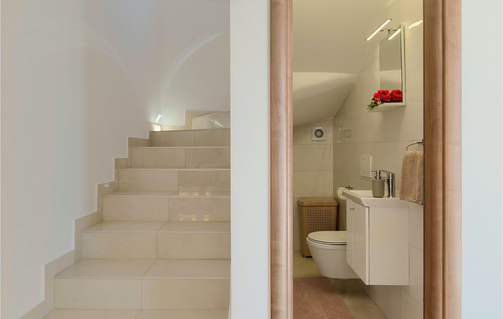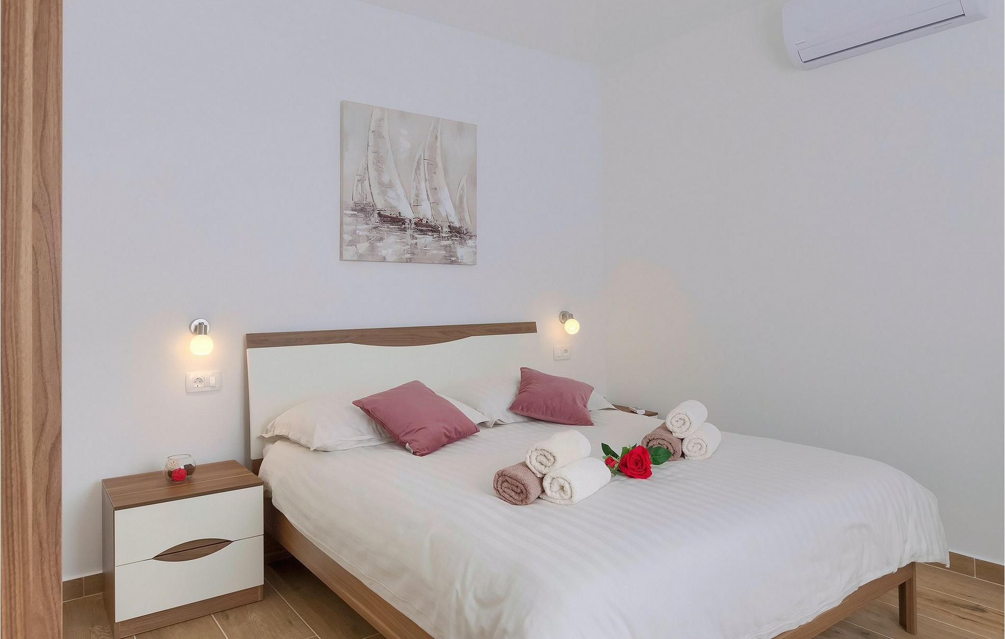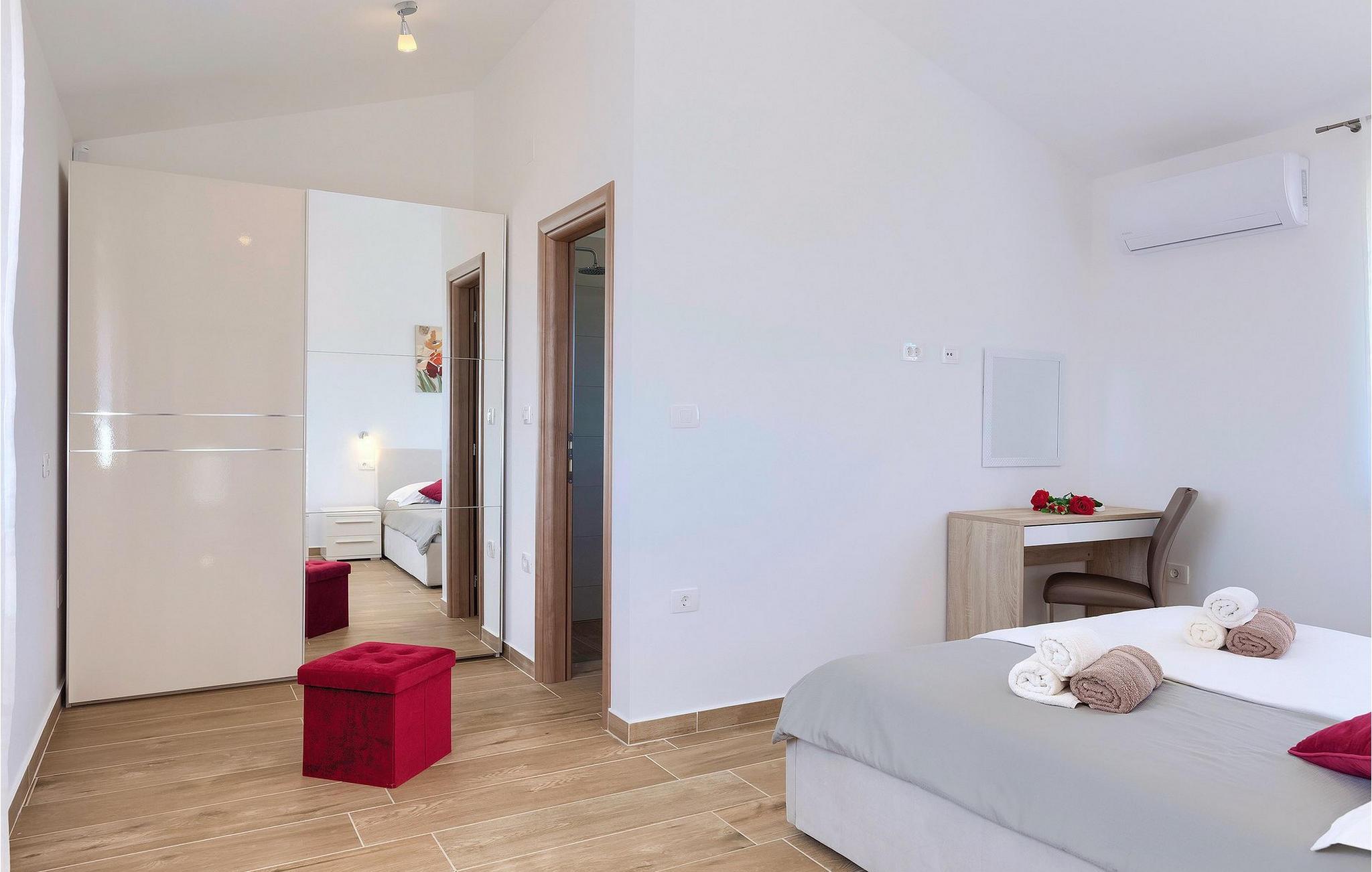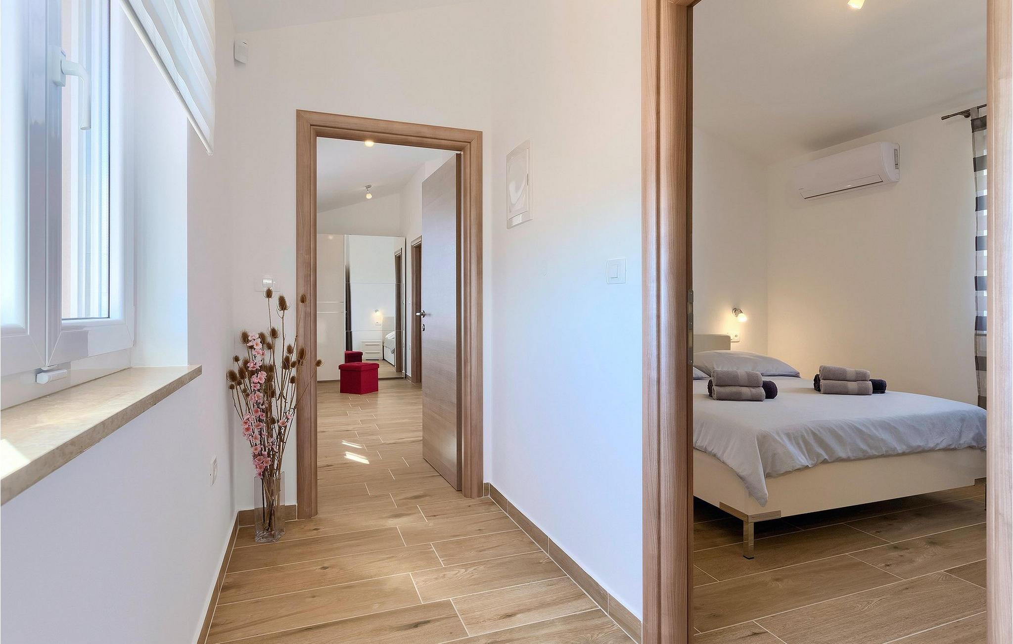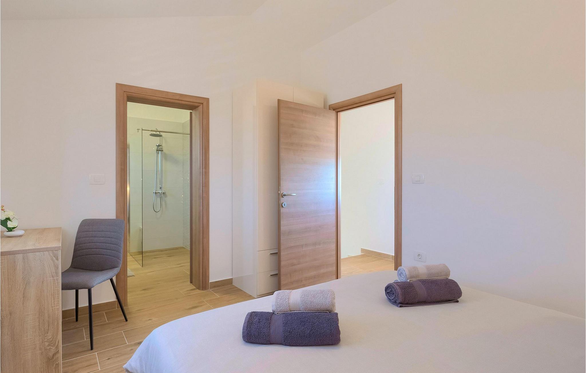 På første sal har huset to moderne og komfortable soveværelser med dobbeltsenge og eget badeværelse. Alle badeværelser har brusekabine.