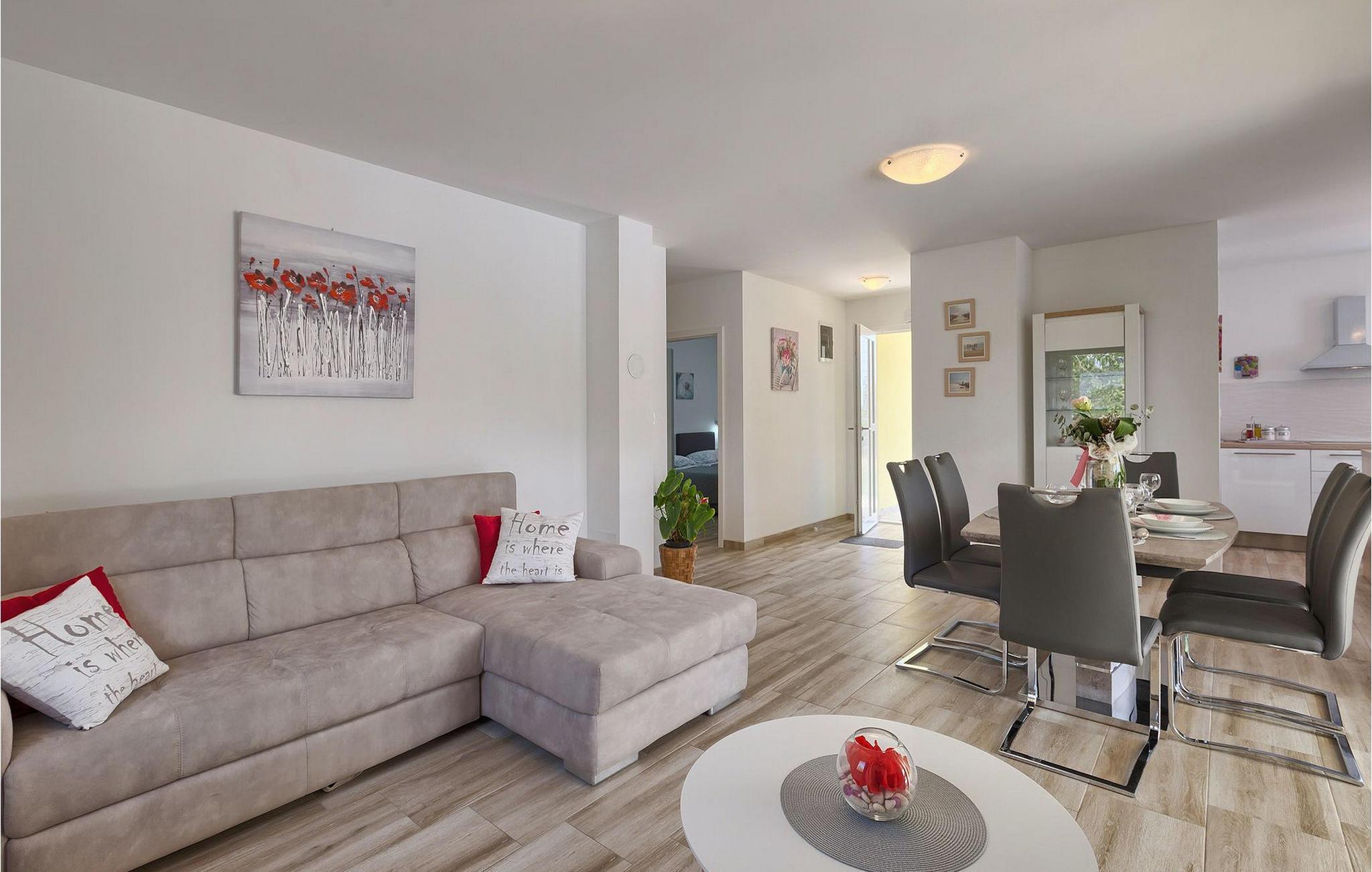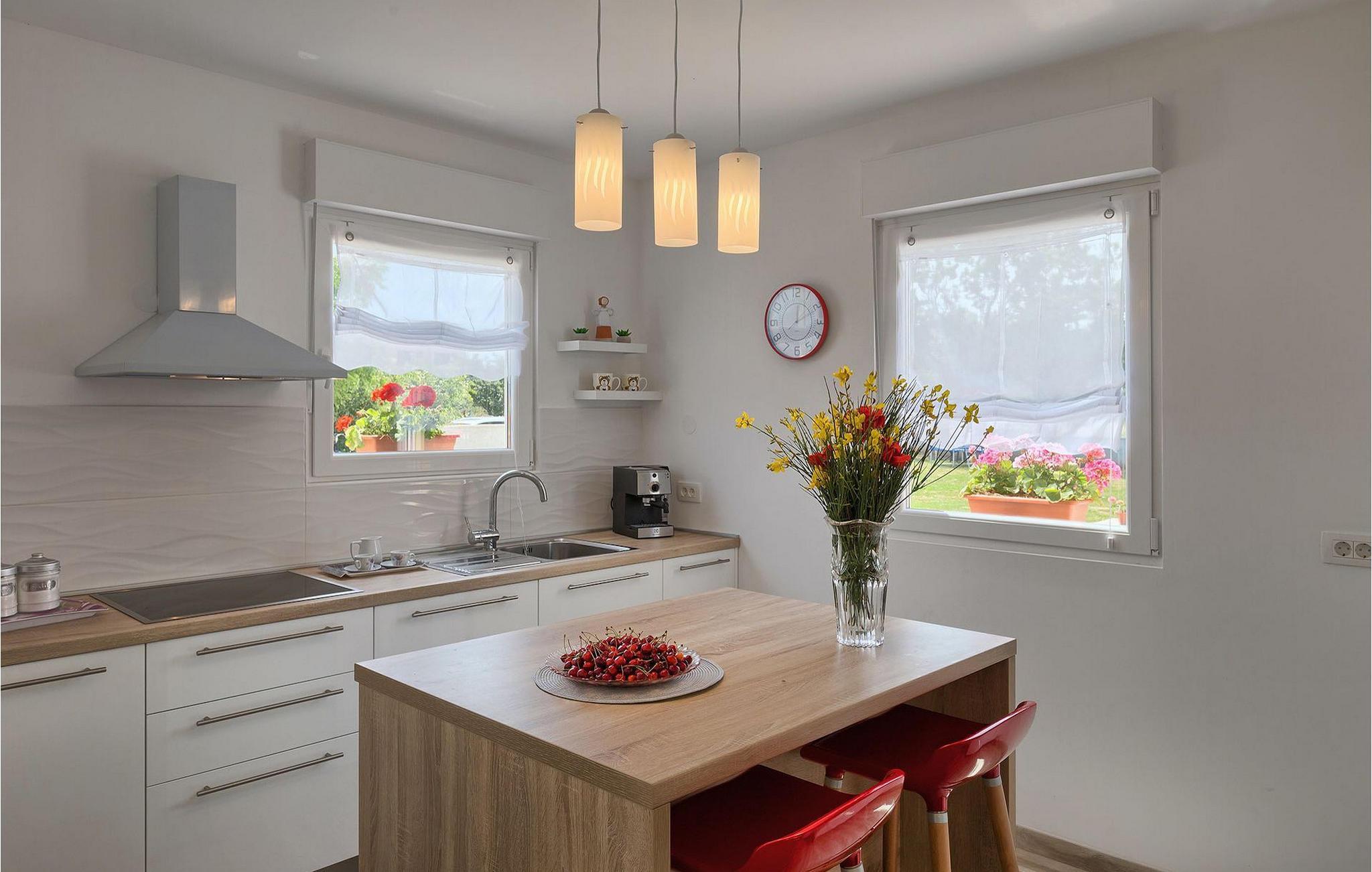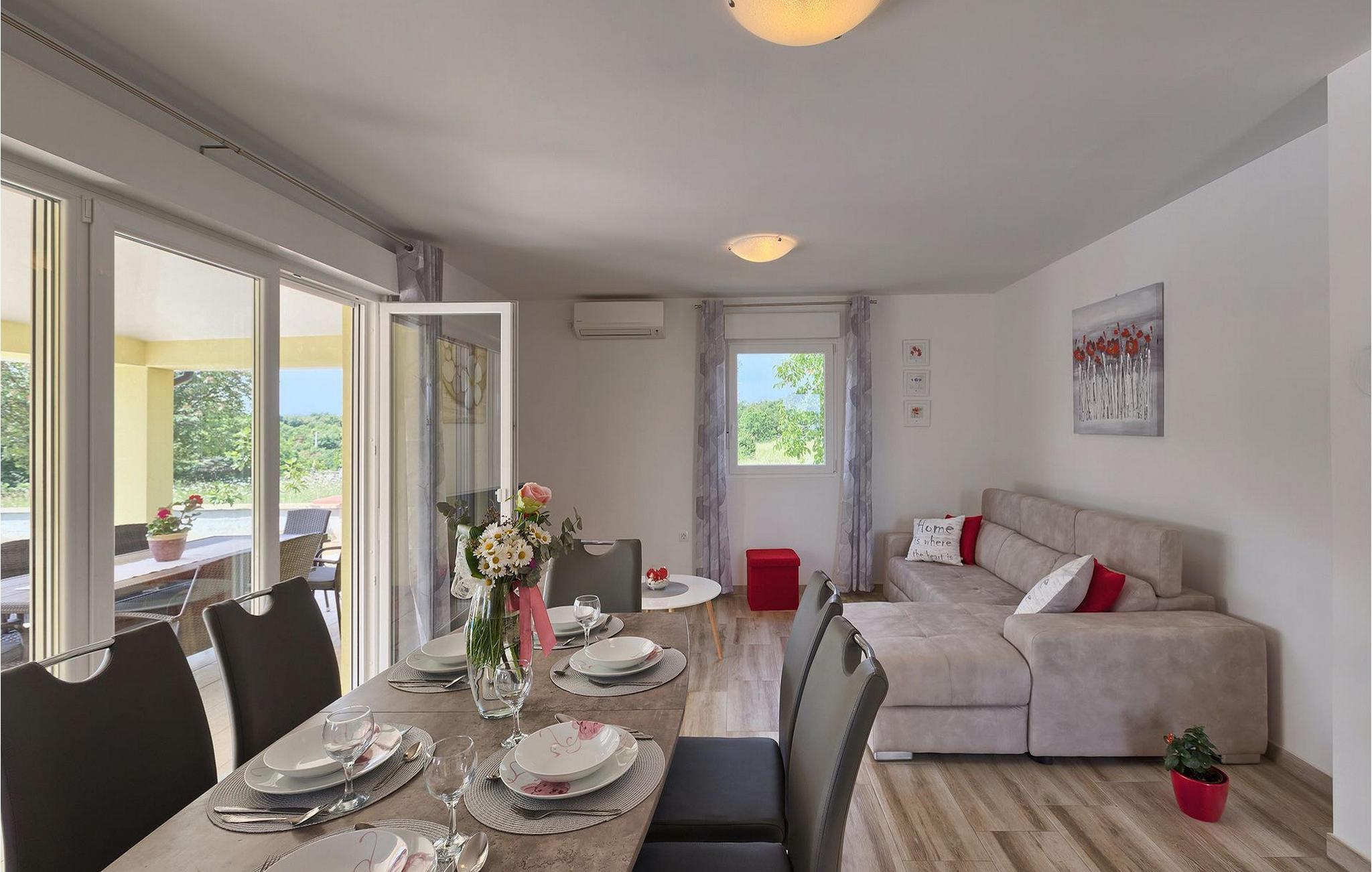 Villa Fiorina er en dejlig ferievilla, beliggende i en lille istrisk landsby Filipana og omgivet af grønne marker, som tilbyder en rigtig dejlig ferie for sine gæster. Et par kilometer adskiller denne villa fra den smukke istriske kyst, men hvis du foretrækker at bo i din villa, kan du finde en forfriskning i den private pool omgivet af liggestole. Villaen ligger på en ganske stor grund, hvor I kan spille volleyball eller lade børnene nyde trampolinen og gyngerne. Den overdækkede terrasse med spisebord er hvor du kan nyde frisklavede måltider fra grillen. Villaen er et hus i stueetagen; spise- og opholdsstuen er forbundet med det fuldt udstyrede køkken. Resten af huset er opdelt i 3 soveværelser, 2 badeværelser og et separat toilet. To soveværelser har en dobbeltseng, mens det resterende soveværelse består af to enkeltsenge. Denne dejlige, smagfuldt indrettede villa vil tilbyde dig en virkelig ubekymret ferie i Istrien. Dette smukke feriehus ligger i den lille landsby Filipana, på den sydlige side af halvøen Istrien. Placeringen af villaen tilbyder en perfekt balance mellem fred og privat nydelse væk fra en bysus og turistskarer matchet med kort afstand til alle større halvø-byer. Pula, den største by i Istrien, kun 18 kilometer væk fra Villaen er verdensberømt for sit fantastiske Colosseum, et gammelt amfiteater, der blev bygget i det 1. århundrede, mens den romerske kejser Vespansian regerede denne del af verden. Udover kulturelle og historiske skønheder byder Istrien på en unik gastrooplevelse, velkendt i denne del af Europa. Hjemmelavet istrisk prosciutto (pršut), vin, istrisk pasta (fuži) er blot nogle få af mange lækre gastro-fornøjelser, Istrien kan tilbyde for en ægte oplevelse af middelhavshjemmelavet køkken. Istrien-halvøen er også hjemsted for en af de smukkeste nationalparker i denne del af Europa - Brijuni. Det kan nås med båd med afgang fra Fažana, kun 16 kilometer væk fra villaen. En bil anbefales.