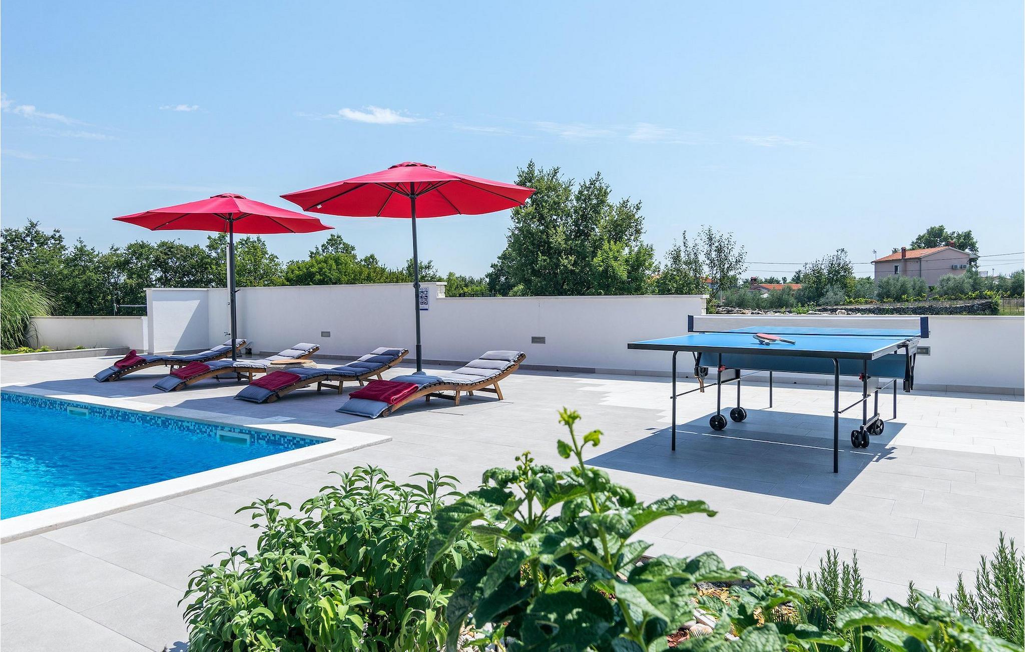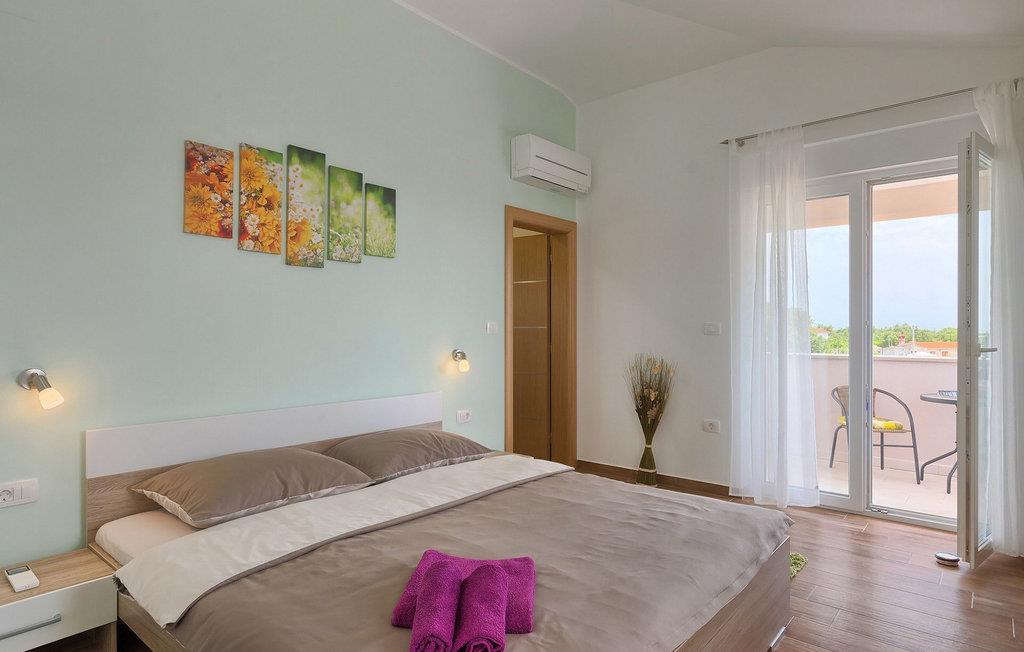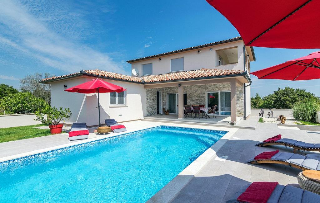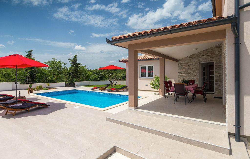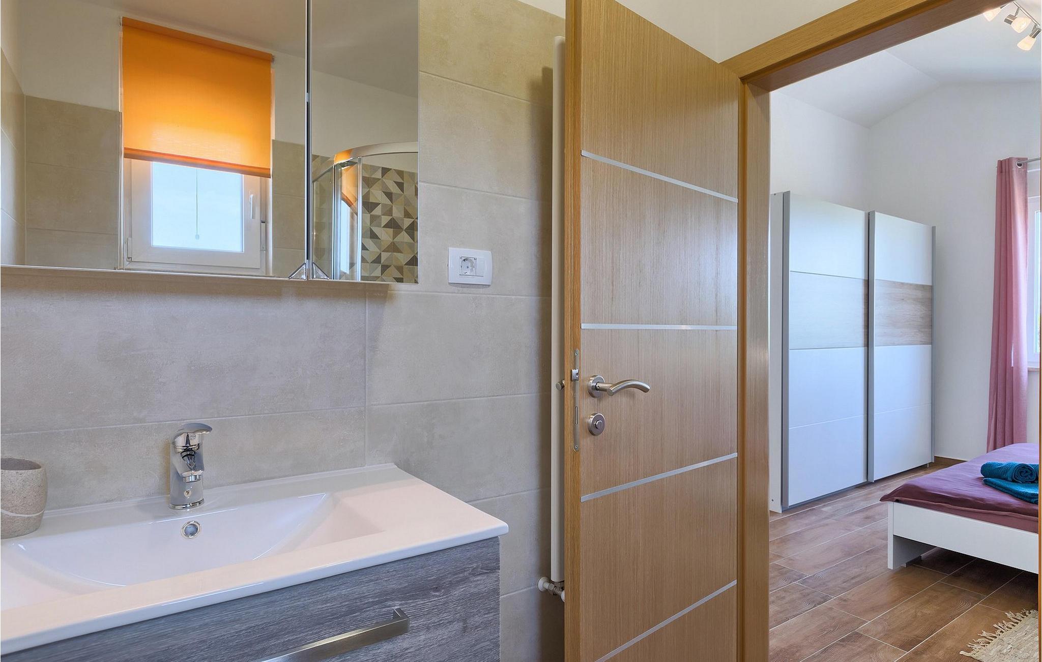 Villa Lena ist eine ideale Wahl für all diejenigen, die ihren Urlaub in einer natürlichen Umgebung ohne viele Nachbarn verbringen möchten, so dass sie sich richtig entspannen können. Die Villa bietet kann bis zu 6 + 2 Personen in 3 Schlafzimmern beherbergen. Das Interieur wurde mit sanften Naturfarben dekoriert, so dass Sie sich, sobald Sie die Villa betreten, wie zu Hause fühlen können. Das Erdgeschoss besteht aus einem offenen Wohnbereich mit komfortabler Eckgarnitur und TV, einem Essbereich und einer völlig ausgestatteten Küche mit Frühstücksbar. Ein Doppelzimmer und ein Badezimmer befinden sich ebenfalls auf dieser Etage. Die anderen beiden Schlafzimmer mit eigenem Bad sowie eine überdachte Terrasse befinden sich auf der ersten Etage. Die Terrasse bietet einen schönen Ort, von dem aus Sie die Aussicht auf die Umgebung genießen können.