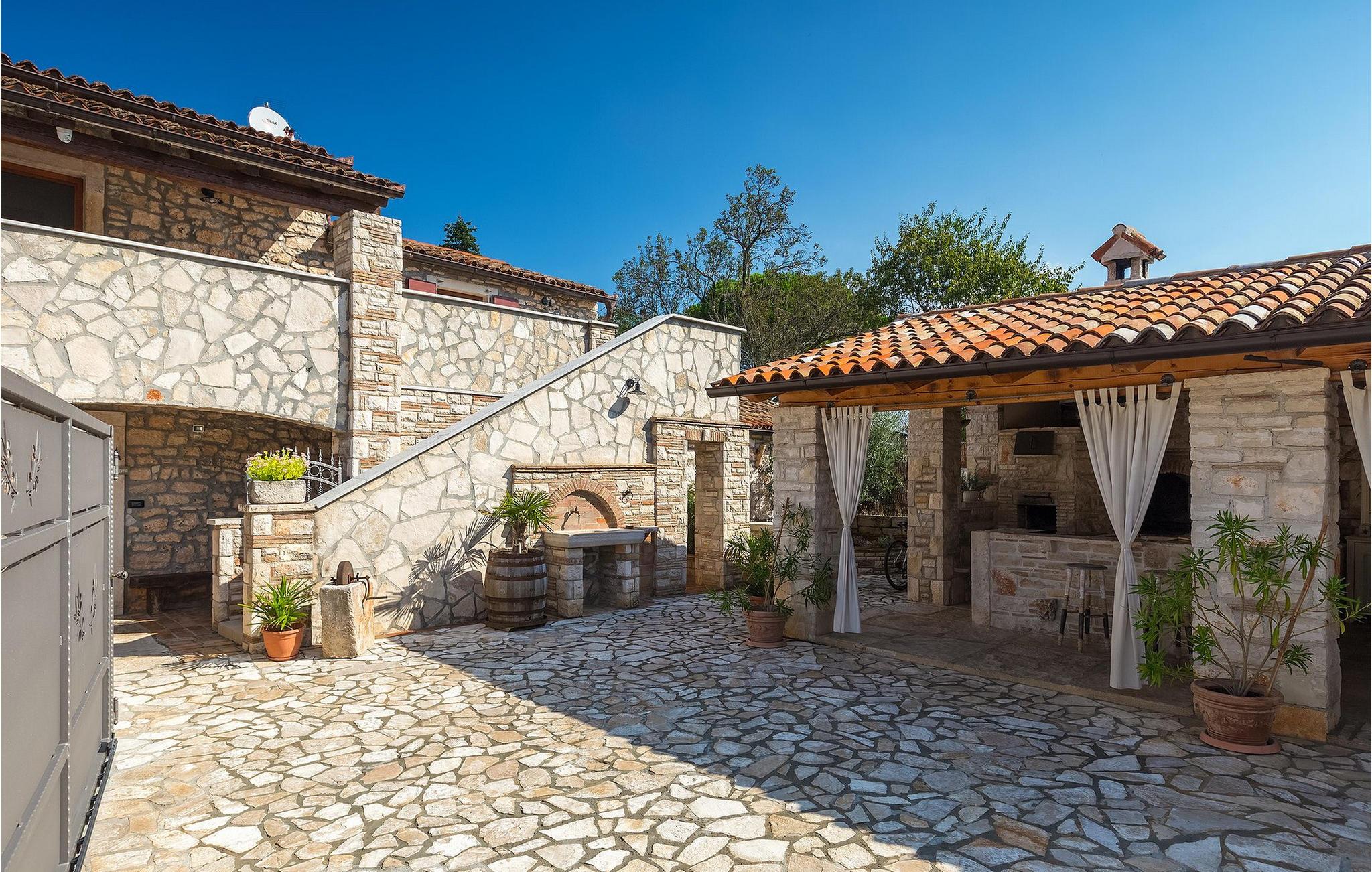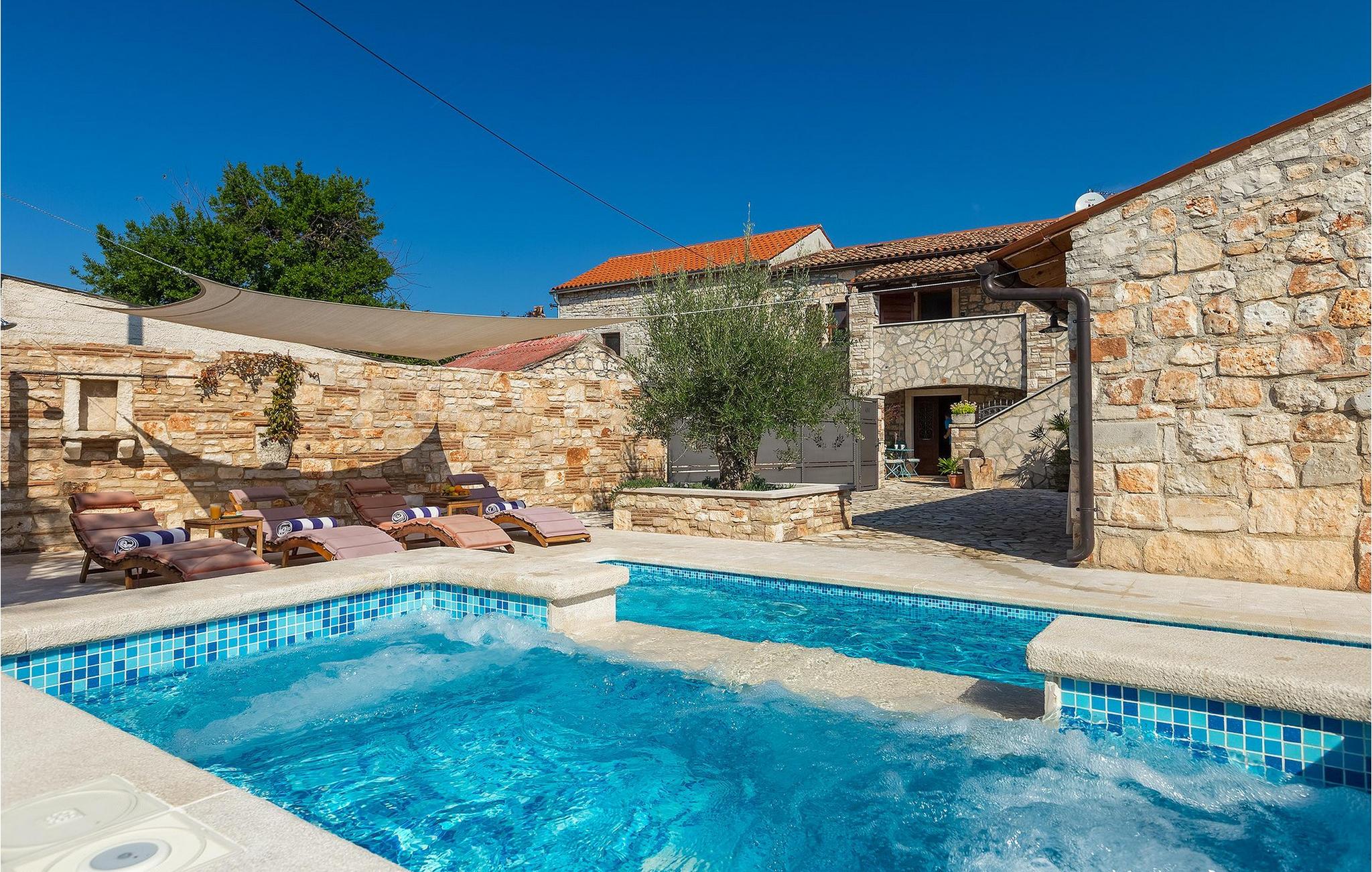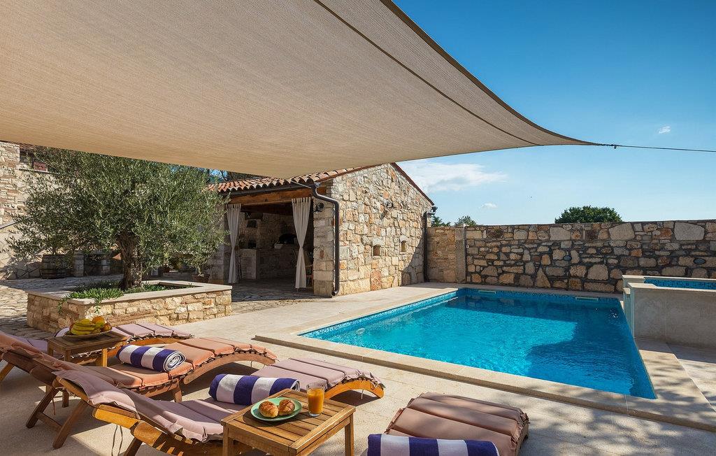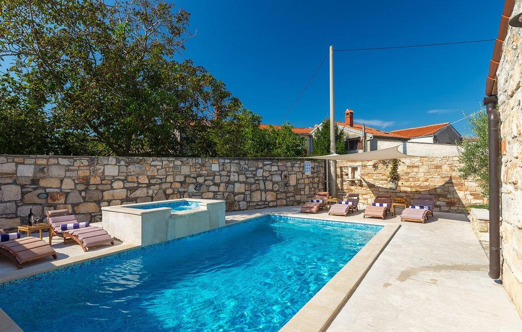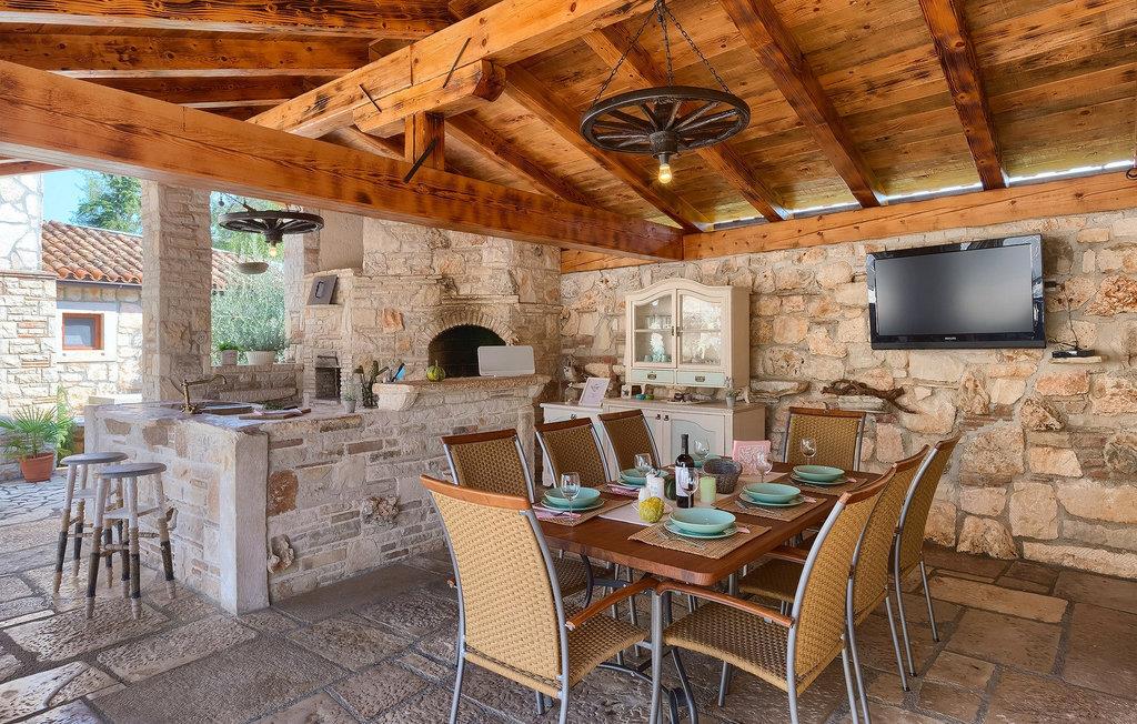 Villa har en dejlig have med pool og tilhørende hydromassagekar, hyggelige liggestole, udendørs køkken og udendørs spiseplads. Her er til rådighed en kulgrill og traditionel brændeovn. Dette er et perfekt sted at tilberede lækre måltider til din familie og at blive fortrolig med istrisk flair.