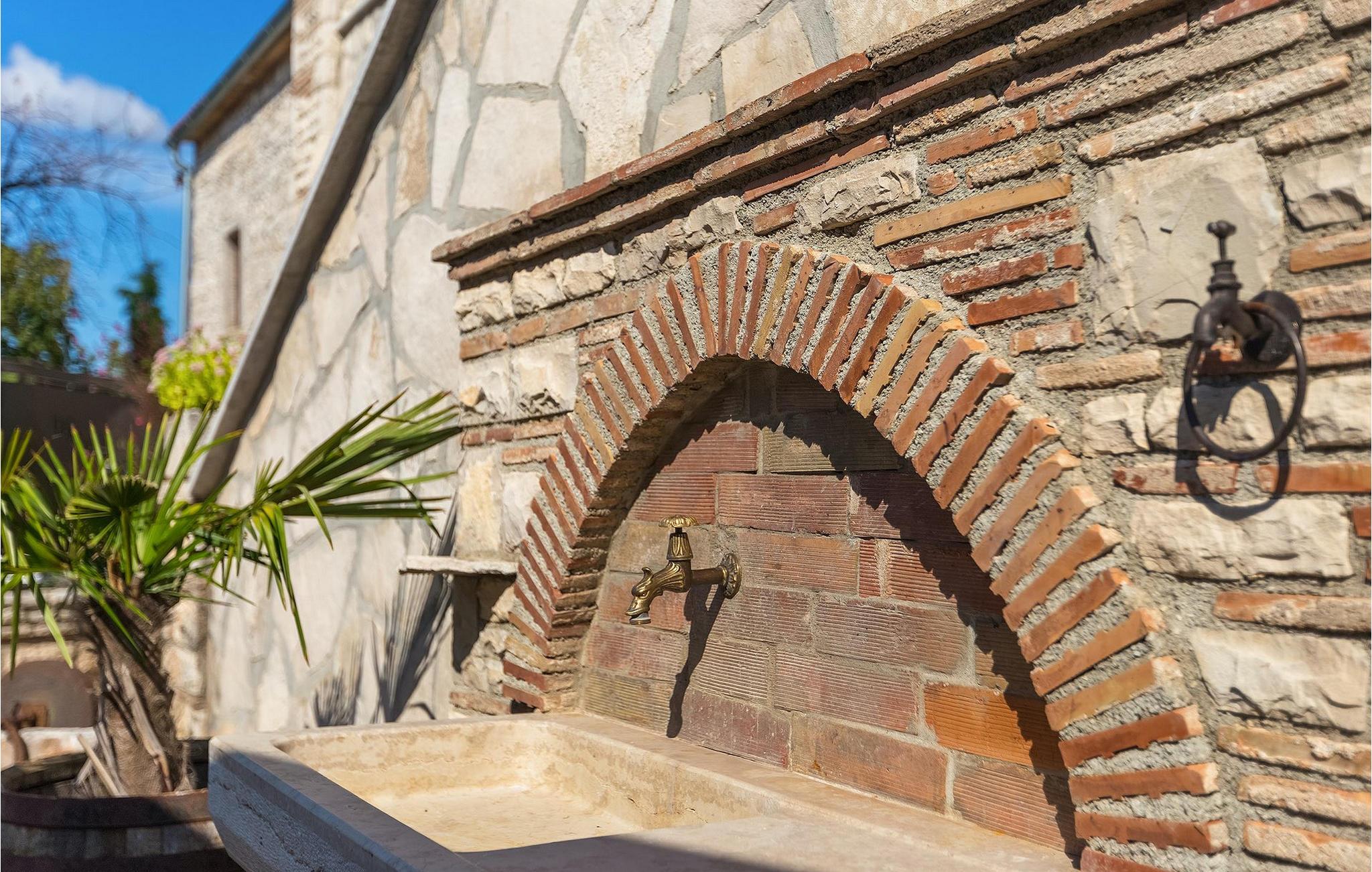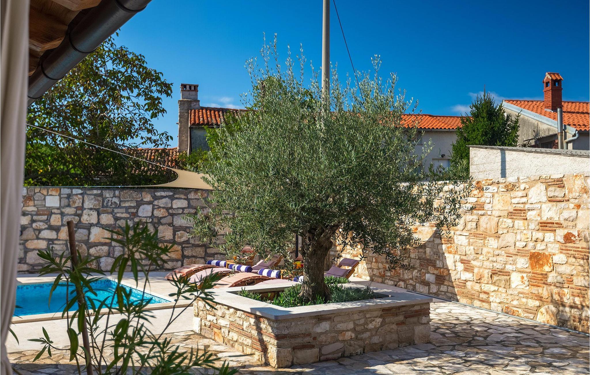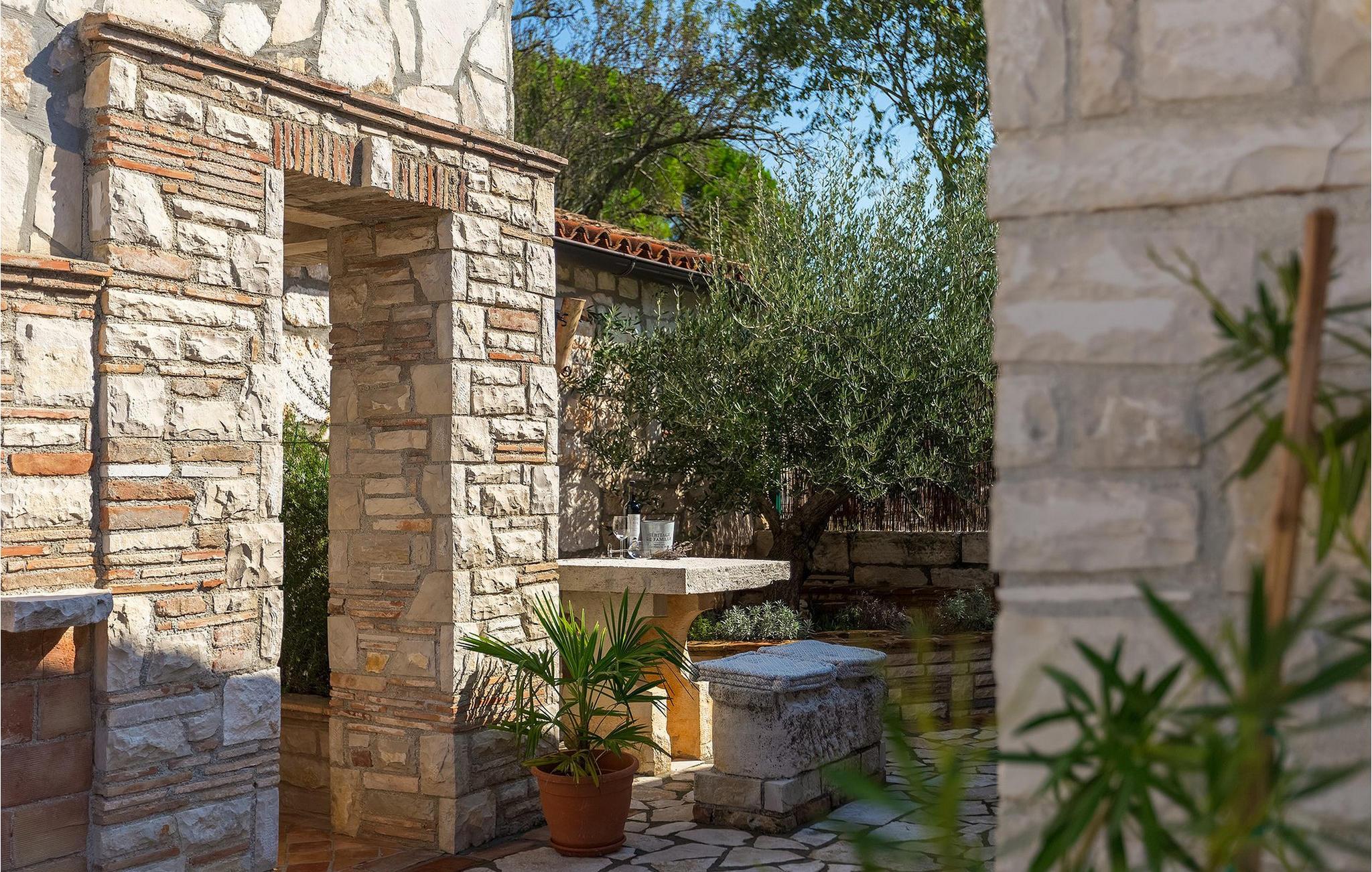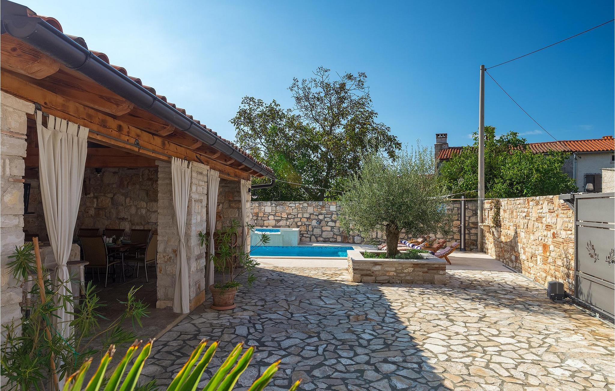 Villa har en dejlig have med pool og tilhørende hydromassagekar, hyggelige liggestole, udendørs køkken og udendørs spiseplads. Her er til rådighed en kulgrill og traditionel brændeovn. Dette er et perfekt sted at tilberede lækre måltider til din familie og at blive fortrolig med istrisk flair.