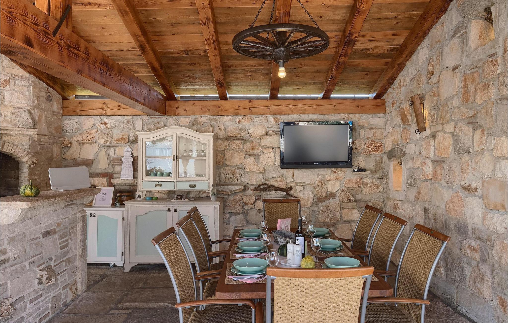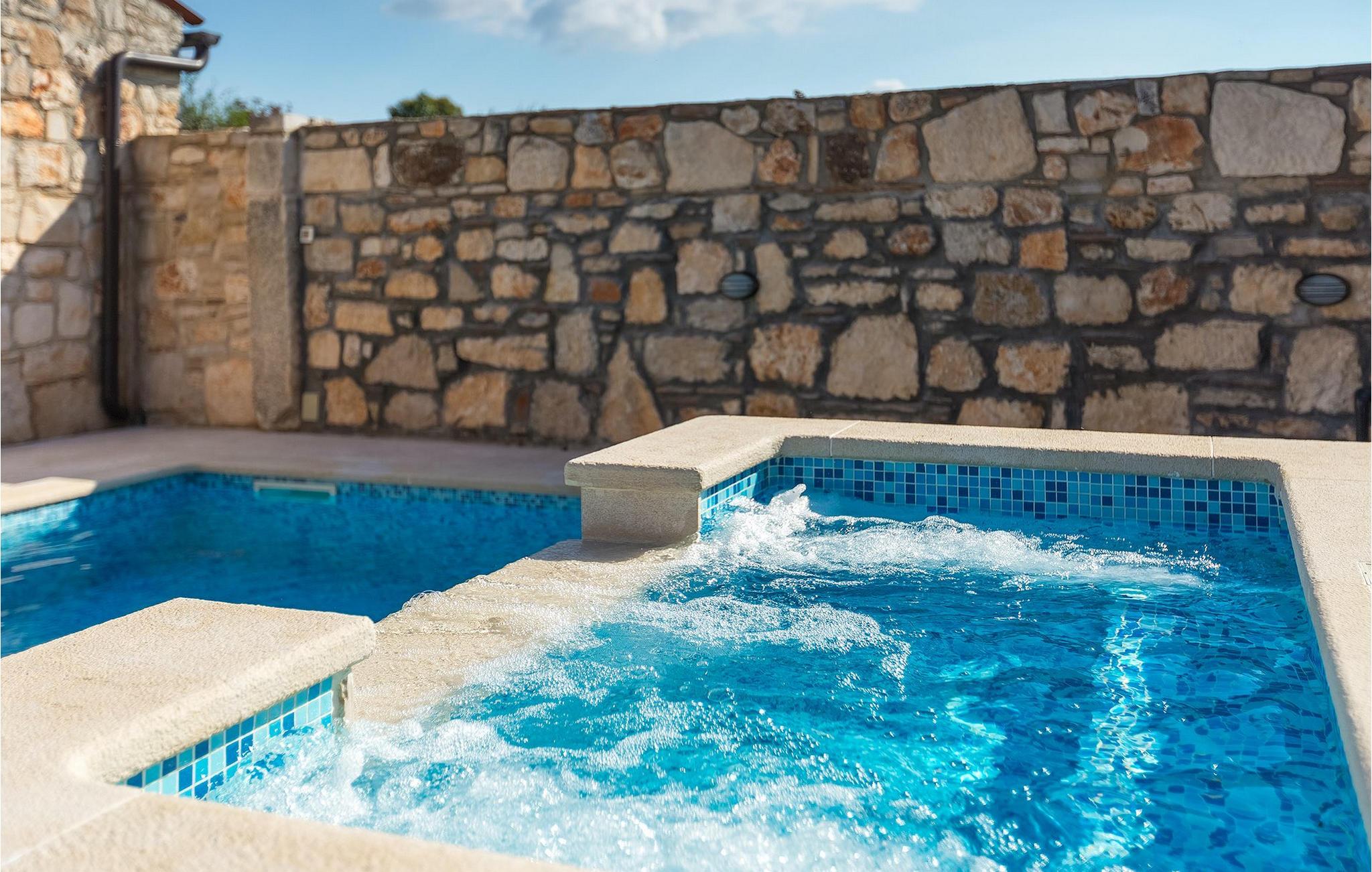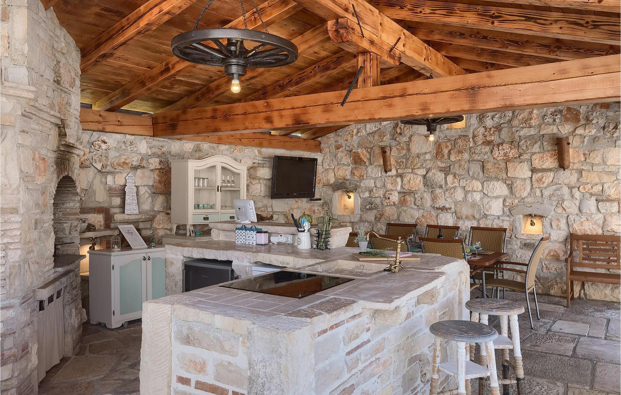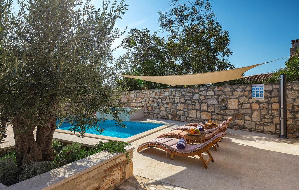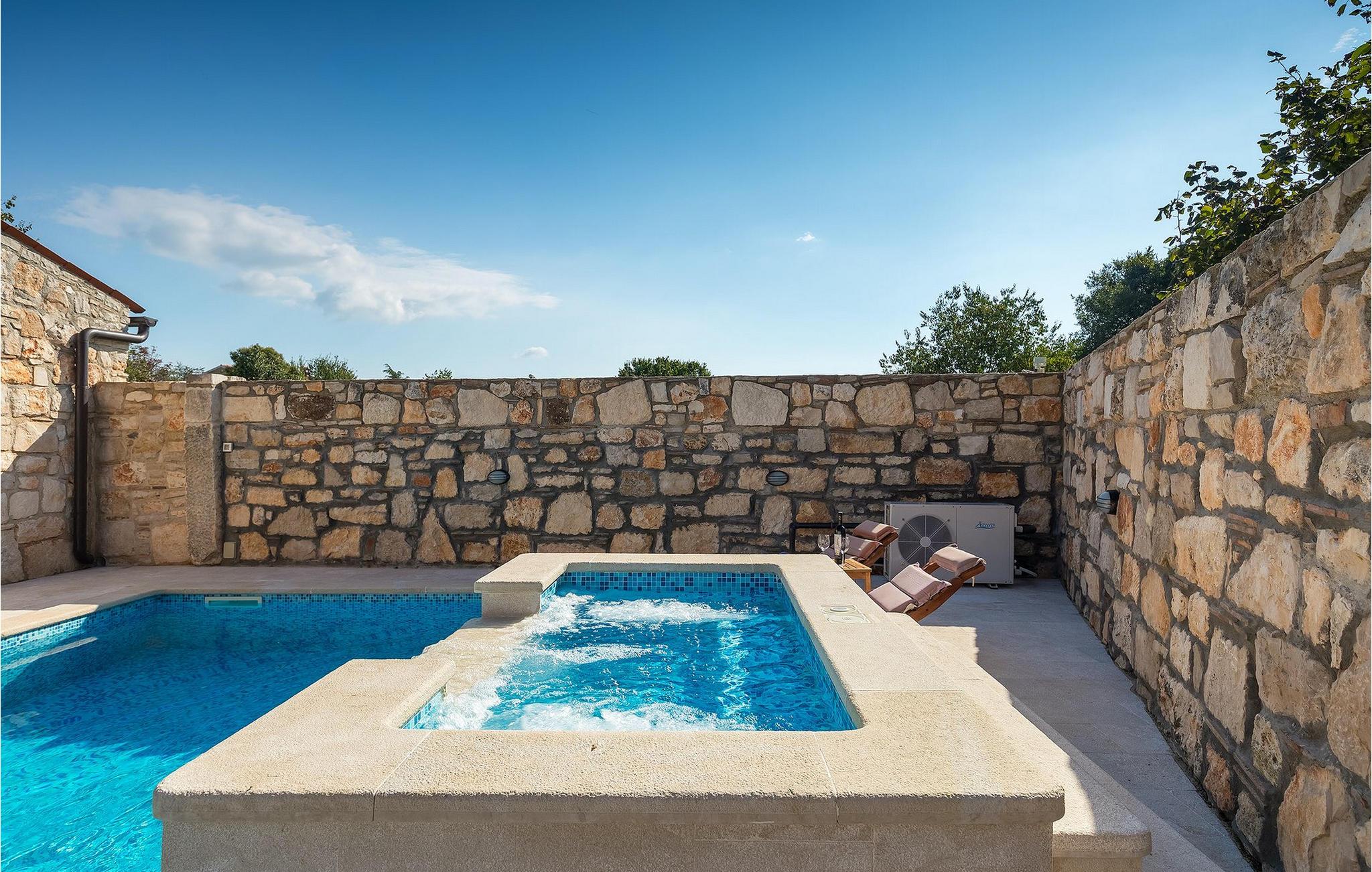 Villa har en dejlig have med pool og tilhørende hydromassagekar, hyggelige liggestole, udendørs køkken og udendørs spiseplads. Her er til rådighed en kulgrill og traditionel brændeovn. Dette er et perfekt sted at tilberede lækre måltider til din familie og at blive fortrolig med istrisk flair.