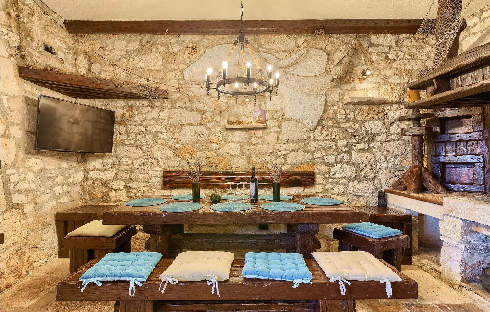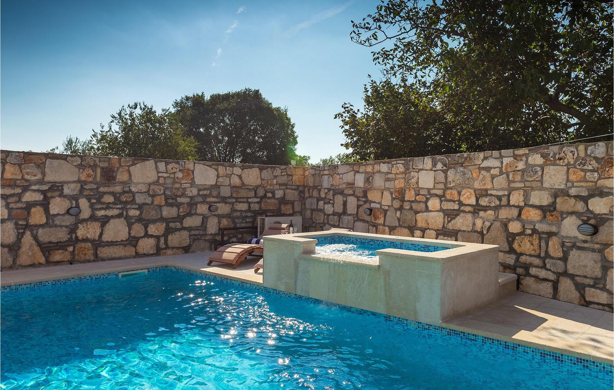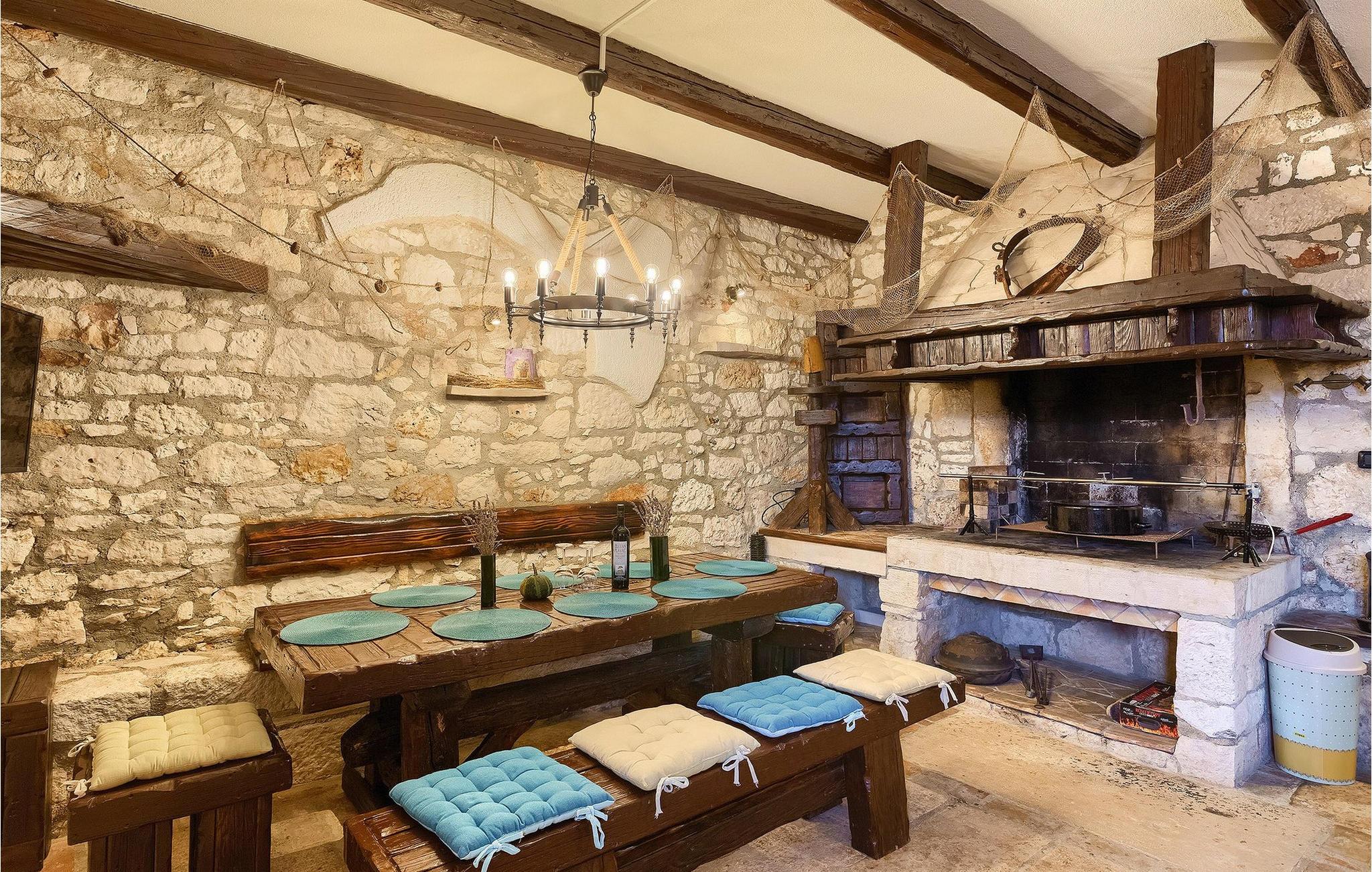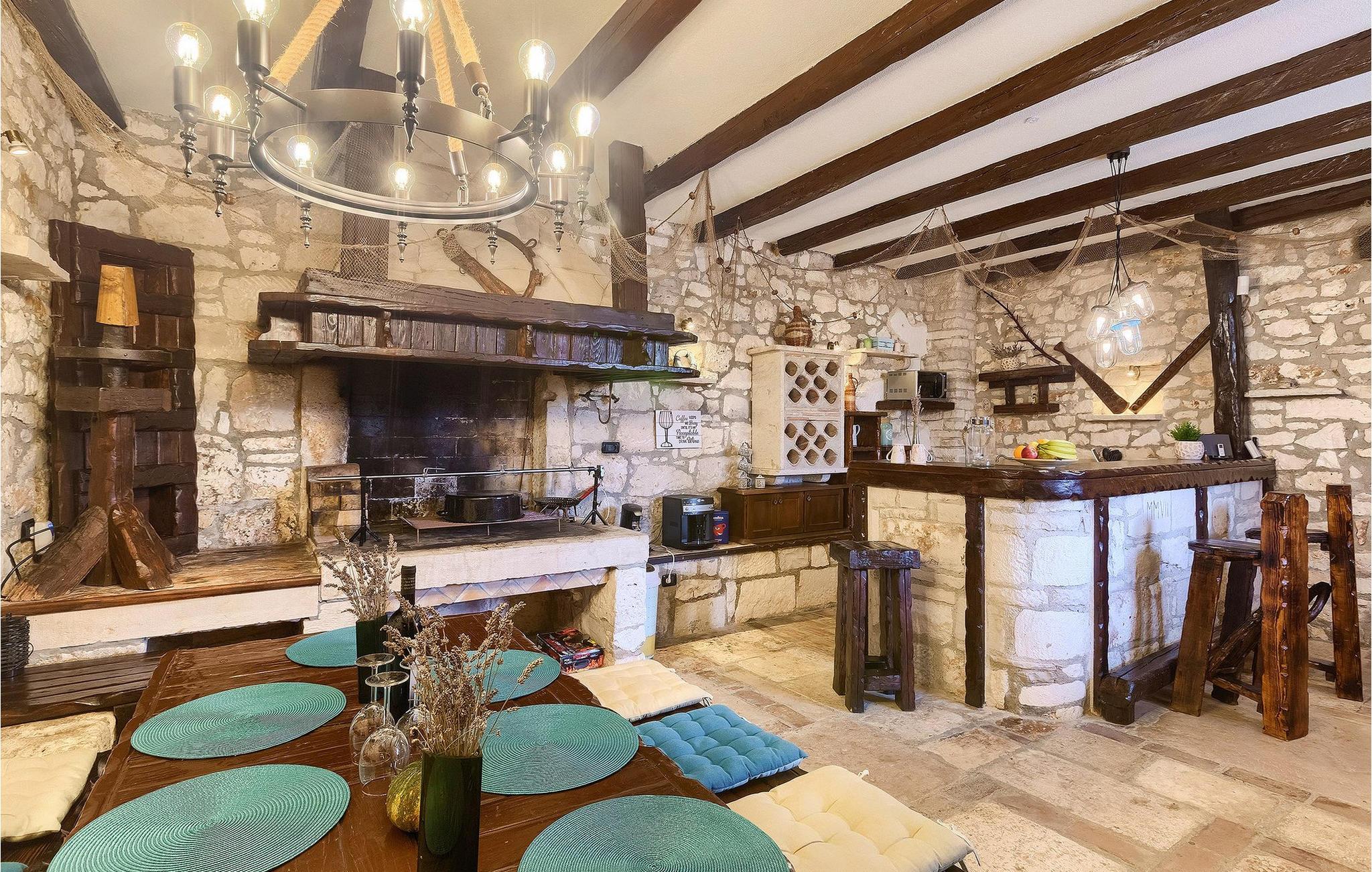 Villa har en dejlig have med pool og tilhørende hydromassagekar, hyggelige liggestole, udendørs køkken og udendørs spiseplads. Her er til rådighed en kulgrill og traditionel brændeovn. Dette er et perfekt sted at tilberede lækre måltider til din familie og at blive fortrolig med istrisk flair.
