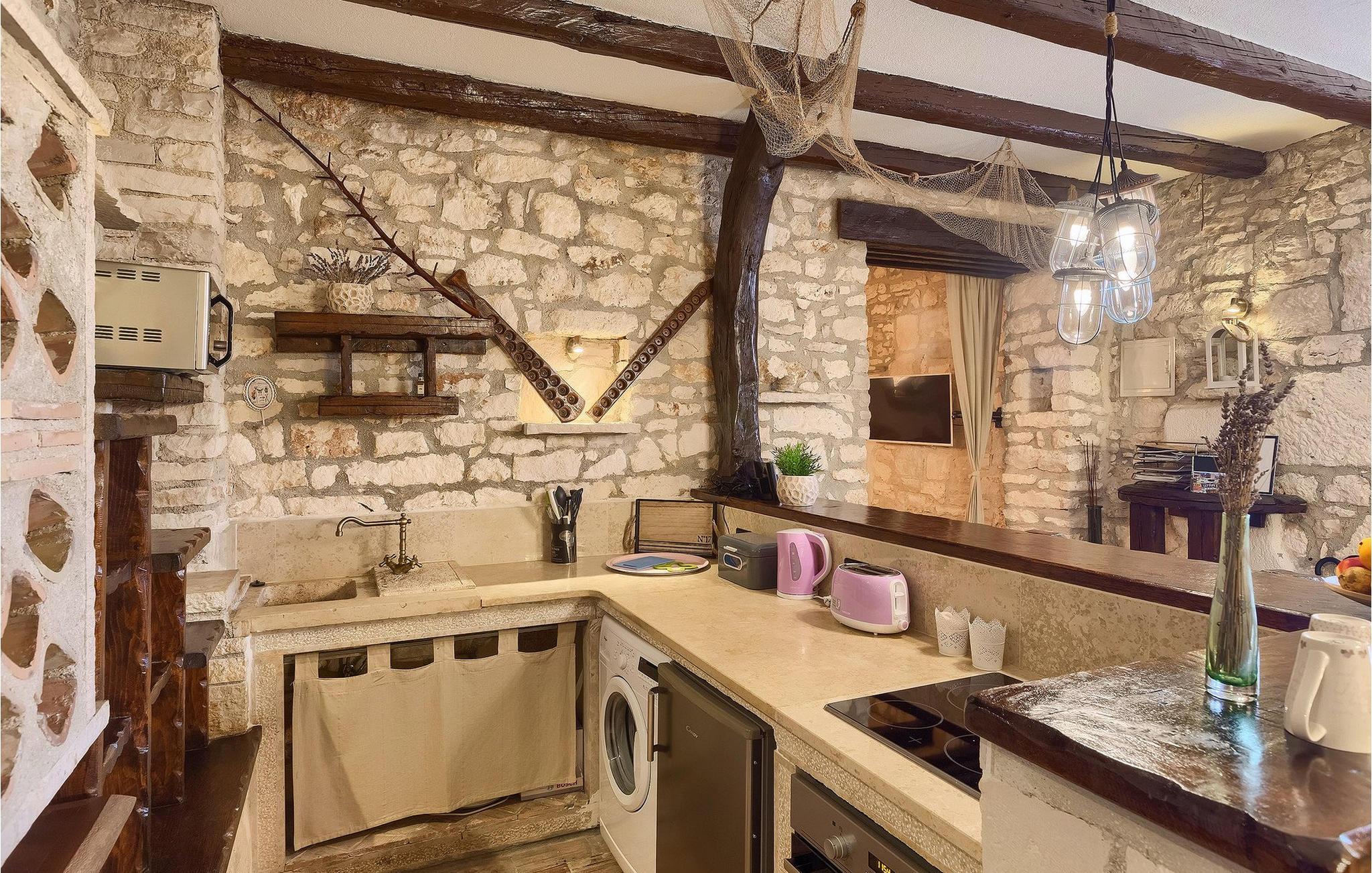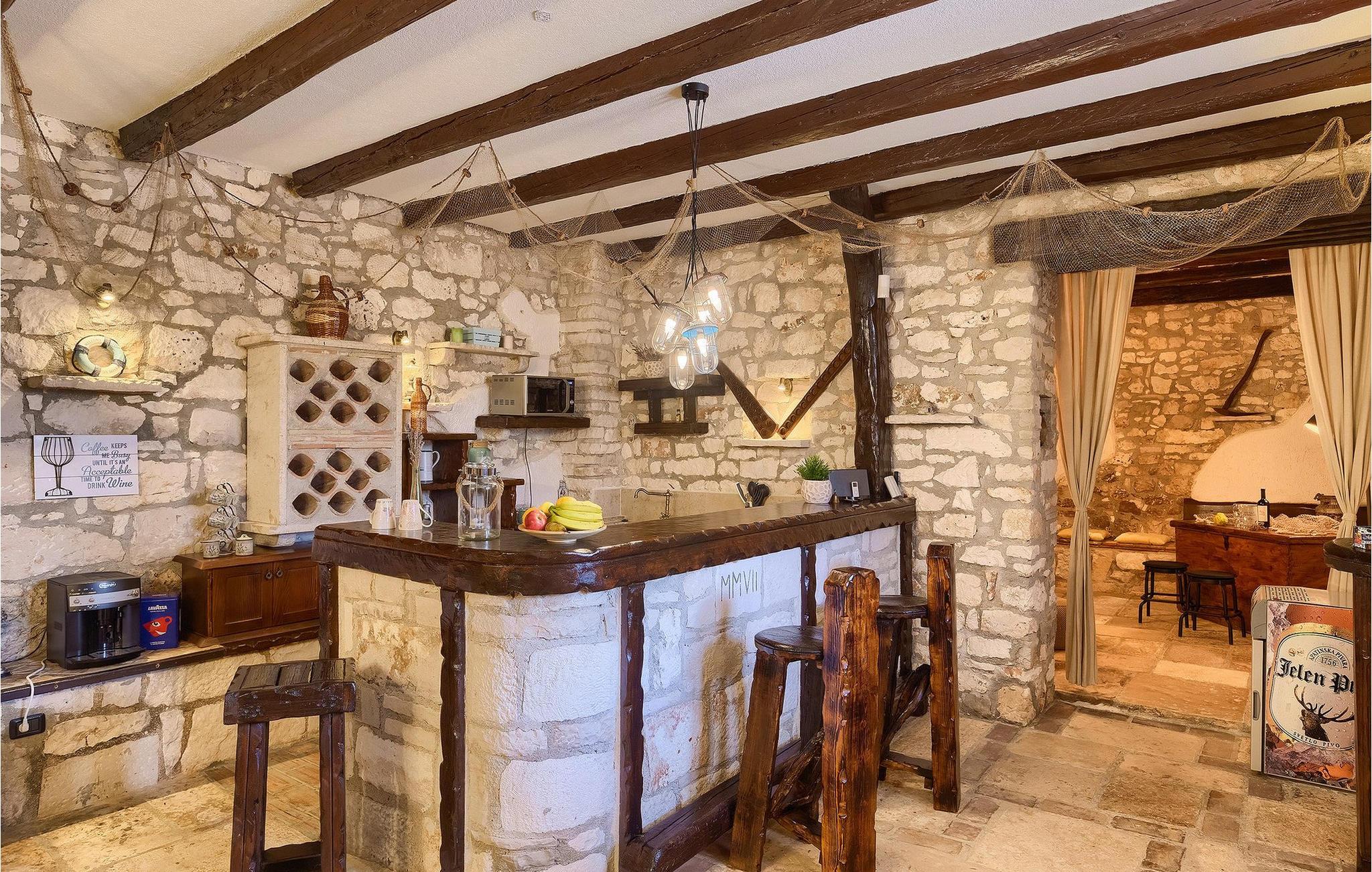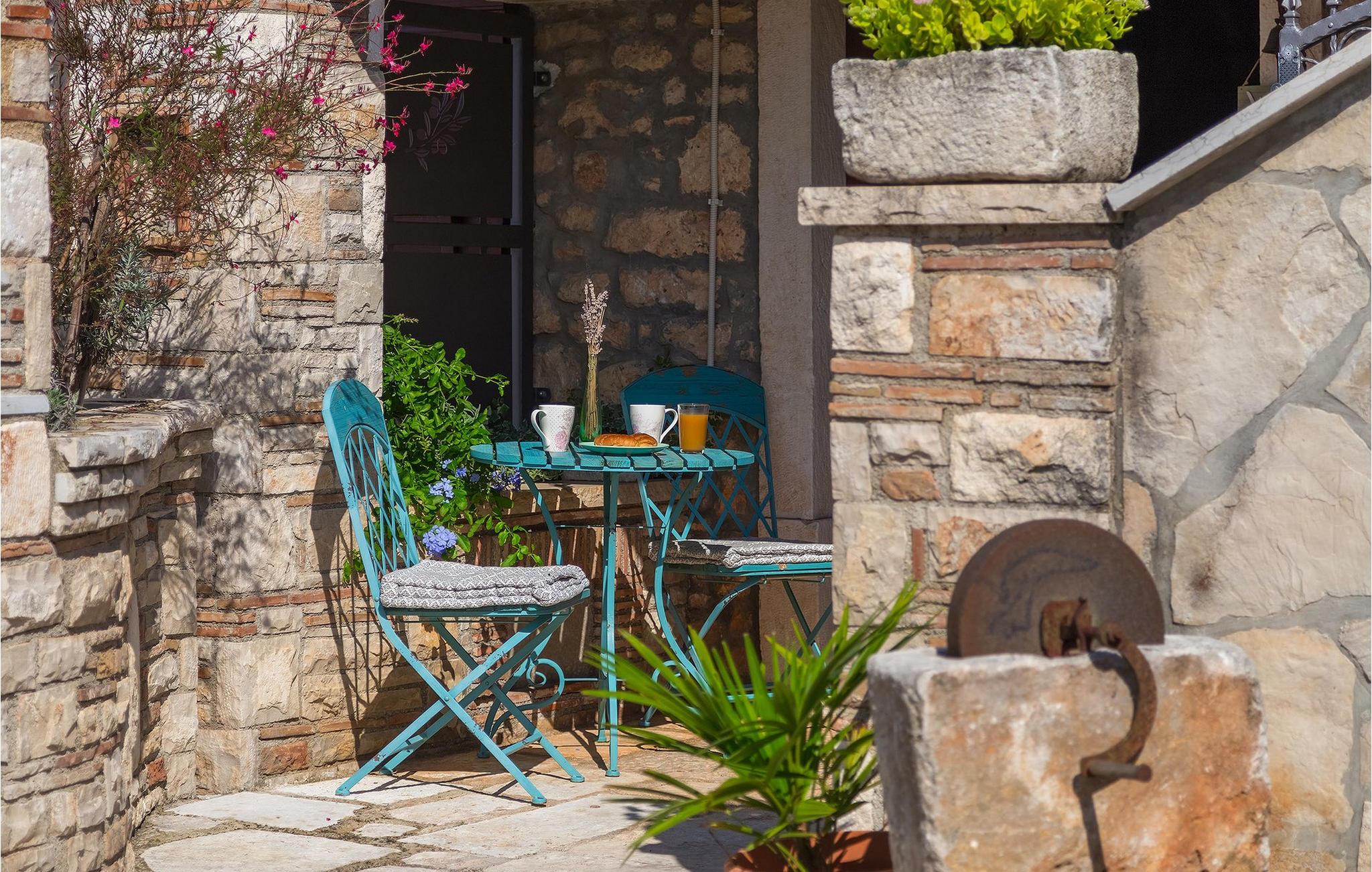 Stenvillaen Casa Di Roccia har originale traditionelle istriske detaljer og moderne bekvemmeligheder inden for samme ejendom.