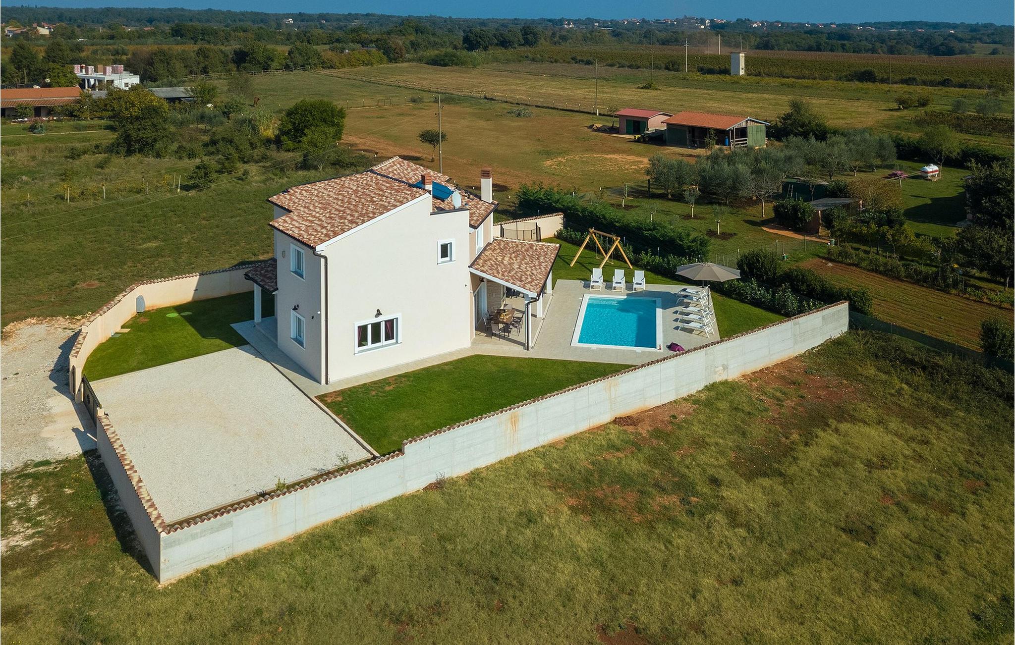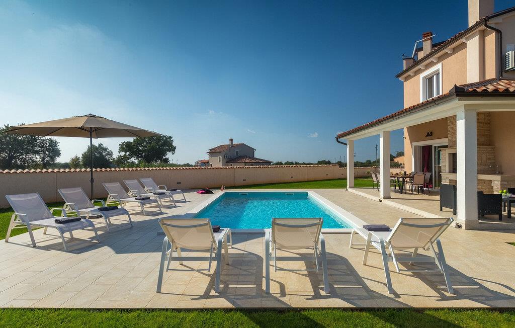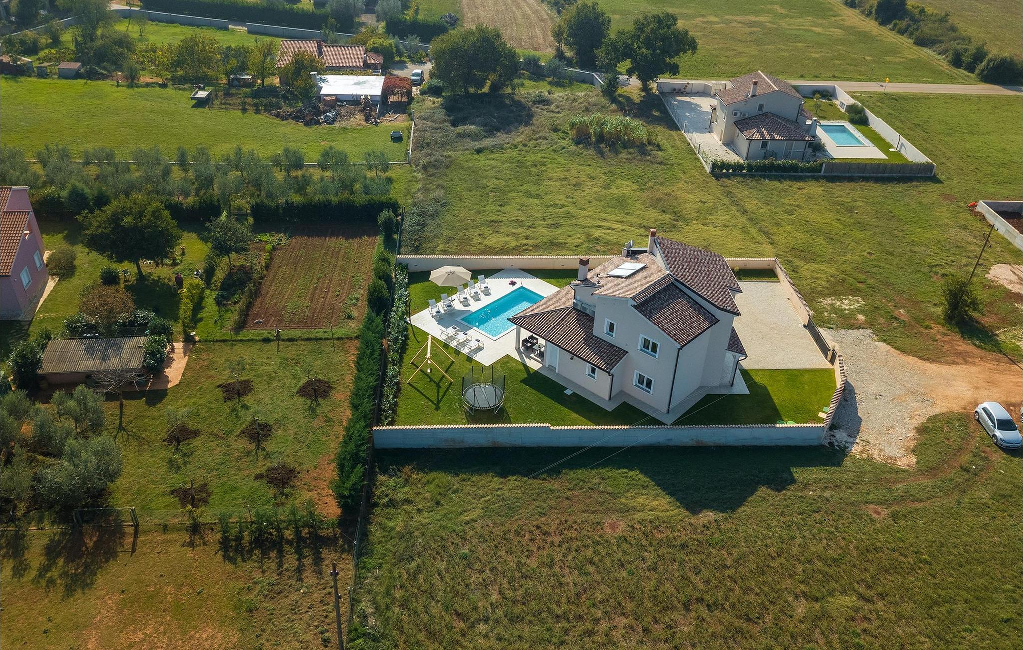Villa Magica er en moderne smuk familievilla, beliggende i en lille fredelig landsby i den sydøstlige del af Istrien. Villaen er fordelt på 2 etager og har plads til maksimalt 8 gæster i sine 4 komfortable moderne soveværelser. Stueetagen rummer et lyst og rummeligt opholds- og spiseområde i åbent plan med direkte adgang til poolen, et fuldt udstyret køkken, et ensuite soveværelse med dobbeltseng og et separat toilet. Den øverste etage, der er forbundet med en intern trappe, har 2 soveværelser med dobbeltsenge, hvoraf det ene er ensuite, et andet soveværelse med 2 enkeltsenge og et ekstra badeværelse.
