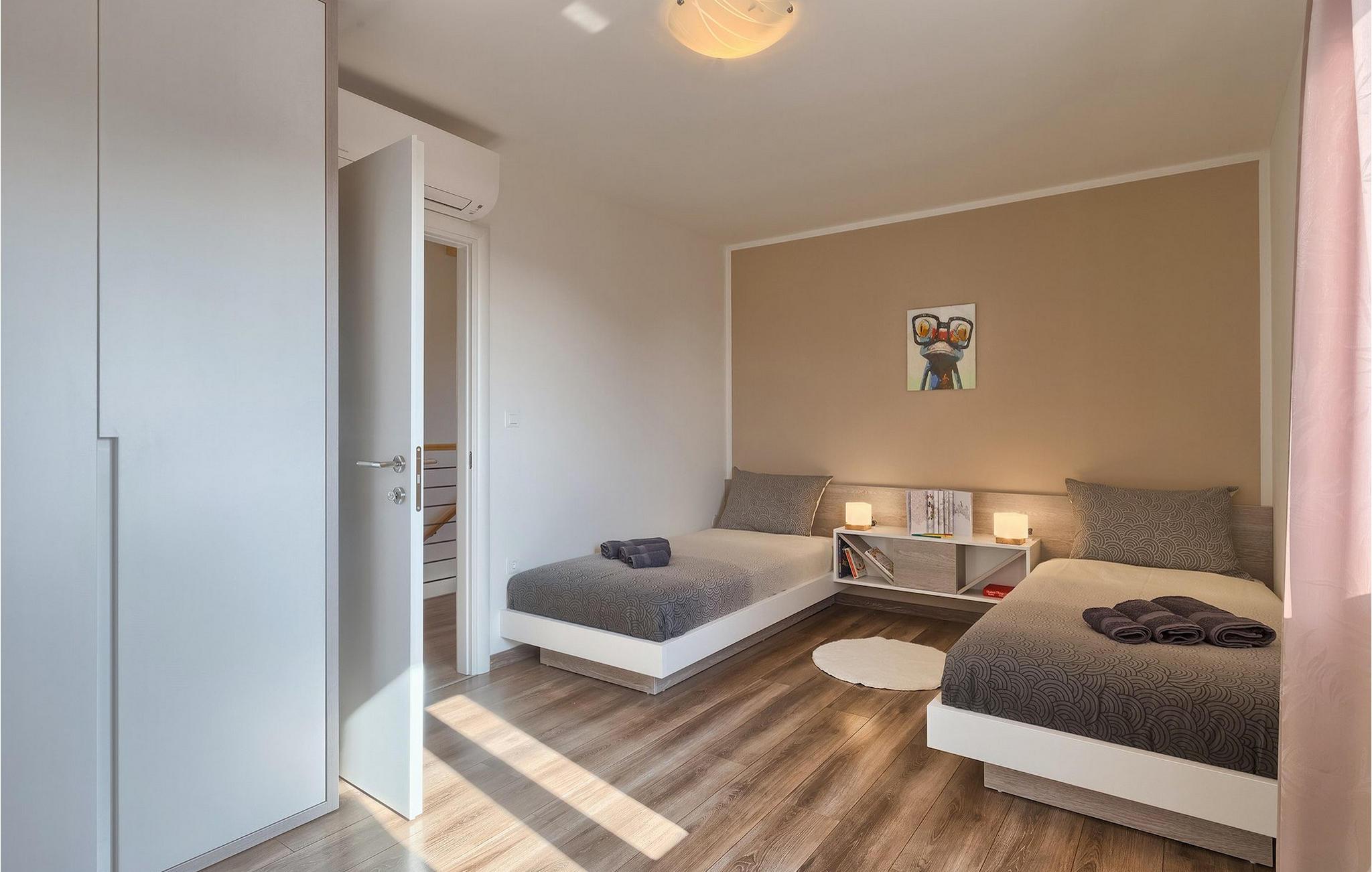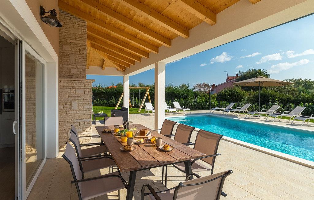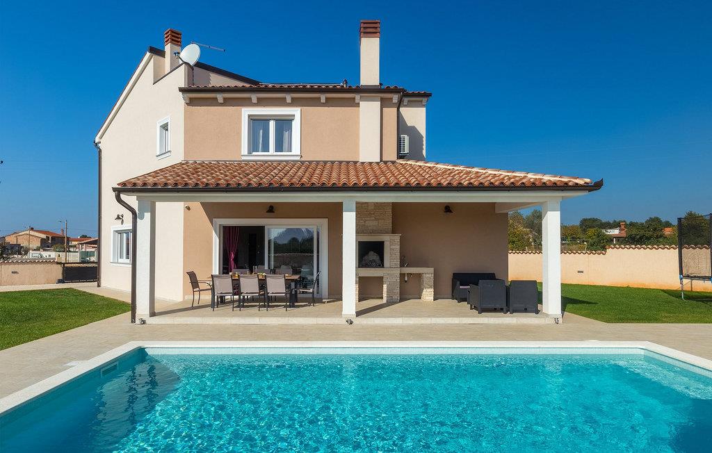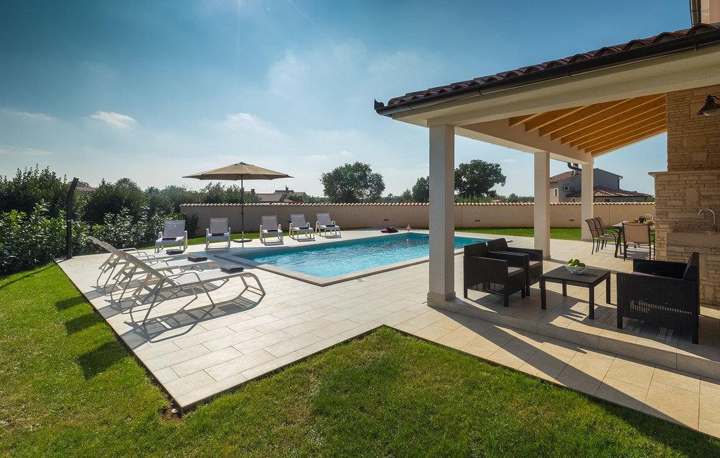 Villa Magica er en moderne smuk familievilla, beliggende i en lille fredelig landsby i den sydøstlige del af Istrien. Villaen er fordelt på 2 etager og har plads til maksimalt 8 gæster i sine 4 komfortable moderne soveværelser. Stueetagen rummer et lyst og rummeligt opholds- og spiseområde i åbent plan med direkte adgang til poolen, et fuldt udstyret køkken, et ensuite soveværelse med dobbeltseng og et separat toilet. Den øverste etage, der er forbundet med en intern trappe, har 2 soveværelser med dobbeltsenge, hvoraf det ene er ensuite, et andet soveværelse med 2 enkeltsenge og et ekstra badeværelse.