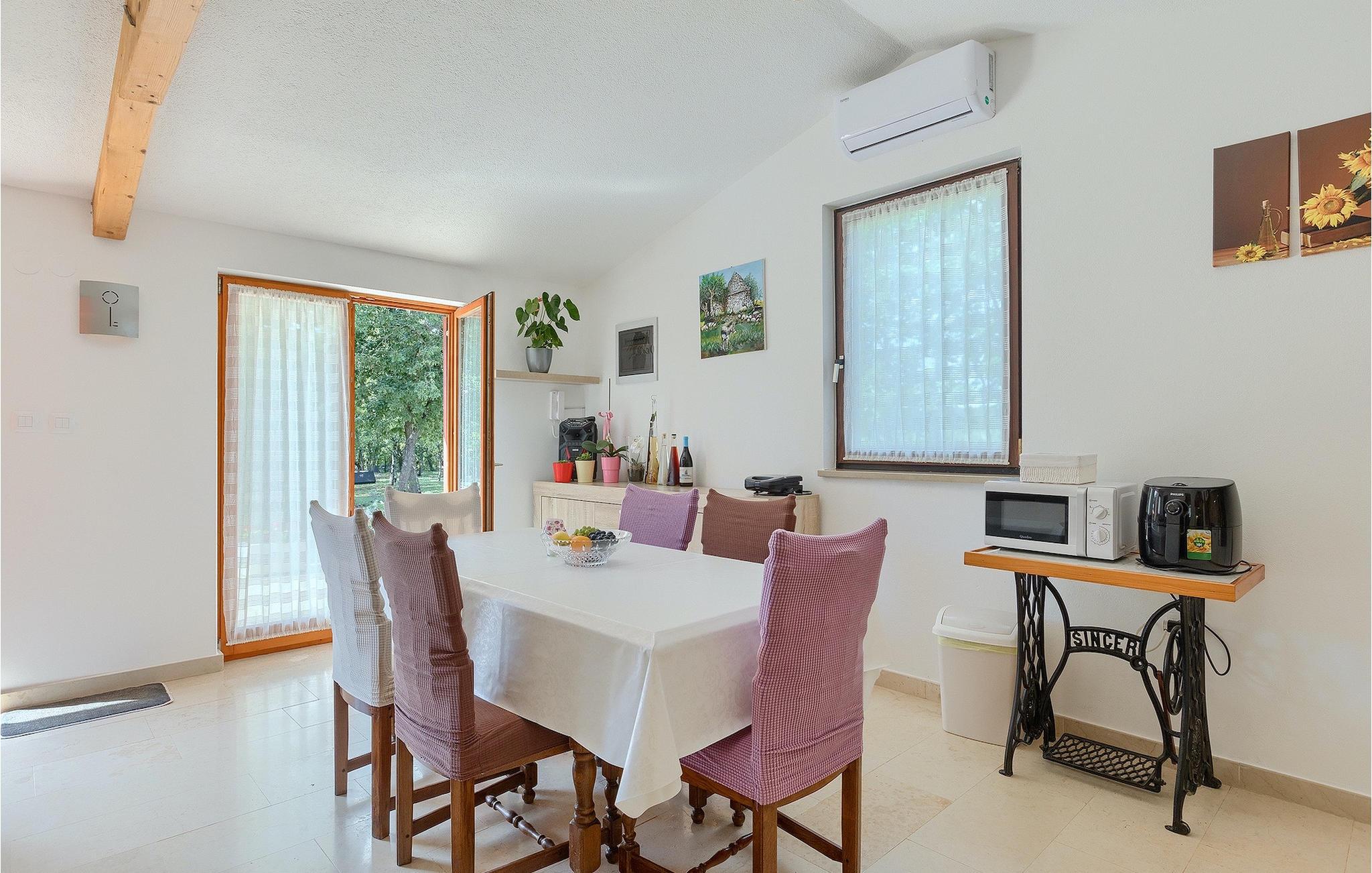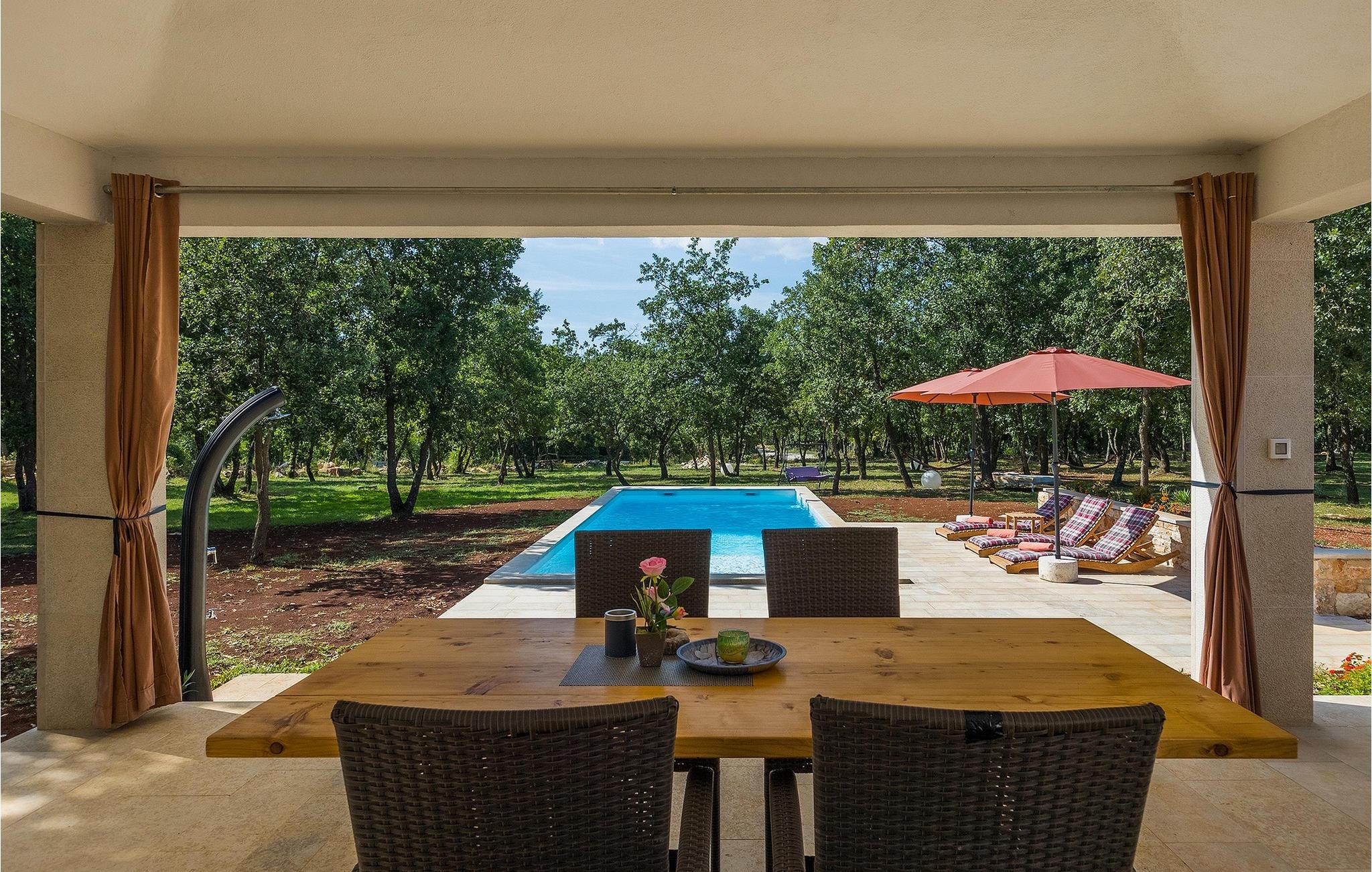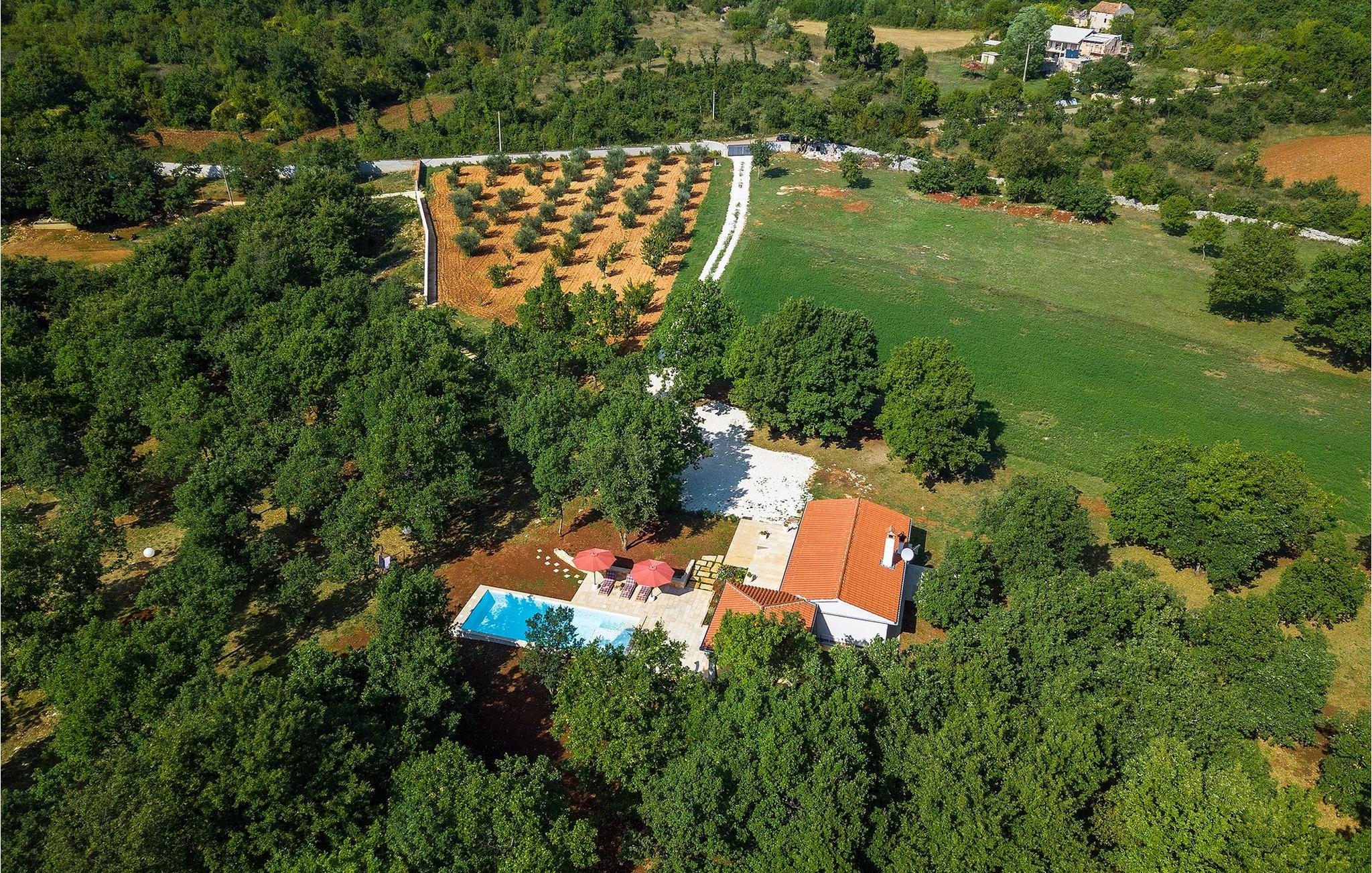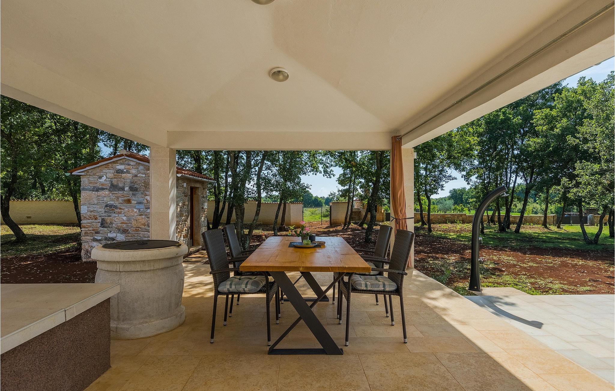 Den smukke store gårdhave er omgivet af træer og masser af grønt og tilbyder fuldstændig privatliv. I haven kan du finde mange aktiviteter såsom basketball, fodbold eller en legeplads, hvor du kan tilbringe tid med de mindste. For dem, der ønsker at udforske det omkringliggende område på cykel, er der 2 cykler til rådighed. Foran villaen er en privat pool, det perfekte sted for en forfriskende svømmetur på varme sommerdage. Kun få skridt fra den store og indbydende pool er en overdækket terrasse med en kulgrill, som er den ideelle udendørs spiseplads til at tilberede måltider og nyde tiden med din familie. Fra terrassen har du direkte adgang til den åbne plane stueetage bestående af et fuldt udstyret køkken, en spiseplads og en komfortabel stue med pejs. Villaen har et charmerende dekoreret soveværelse med dobbeltseng og eget badeværelse. Book Villa Marinetinka og tilbring en afslappende ferie med dine kære!Den smukke Villa Martinetinka ligger ikke langt fra den største istriske by Pula, i den lille landsby Marcana. Villaen tilbyder dig fuldstændig privatliv, omgivet af træer og grønne områder. Dagligvarebutikker, restauranter og caféer ligger tæt på villaen, kun en kort køretur væk. Hvis du ønsker at udforske omgivelserne, er der 2 cykler til rådighed på villaen. Istrien er særligt populær blandt cyklister, da det byder på adskillige cykelstier, som ligger lige foran villaen. De fører gennem adskillige vinmarker og olivenlunde, langs det blå Adriaterhav eller gennem mange historiske byer. Vi anbefaler at besøge byen Pula, som er berømt for sine rester fra den romerske periode, såsom amfiteatret. Ikke langt fra Pula ligger en anden perle ved Adriaterhavet, byen Rovinj. Rovinj var en lille fiskerby, som med tiden er blevet et populært rejsemål for mange turister. Byen er præget af sine farverige huse og smalle brostensbelagte gader, der skaber en uimodståelig charme. Udover de kulturelle seværdigheder, bør du bestemt prøve de traditionelle istriske retter, olivenolie og istrisk malvasia.
